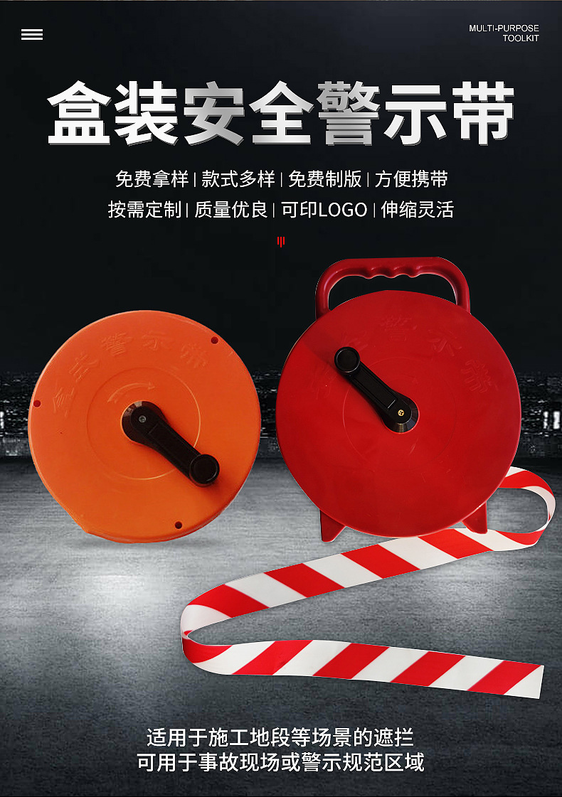 • 빨간색과 흰색 안전 경고 테이프 50m 휴대용 상자