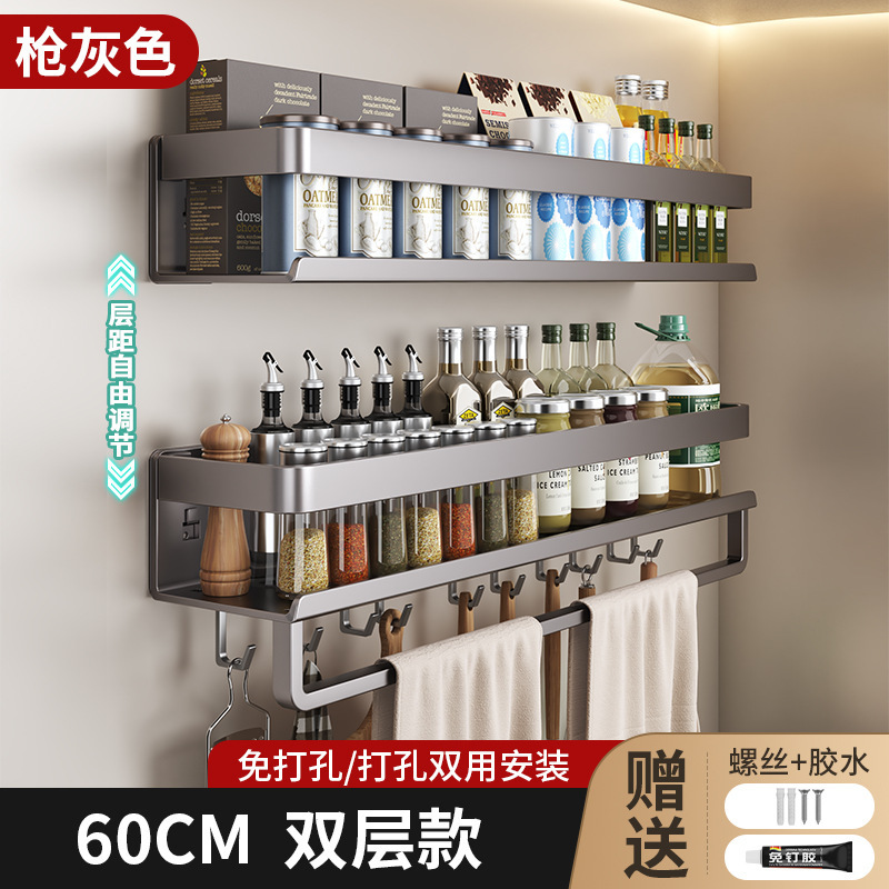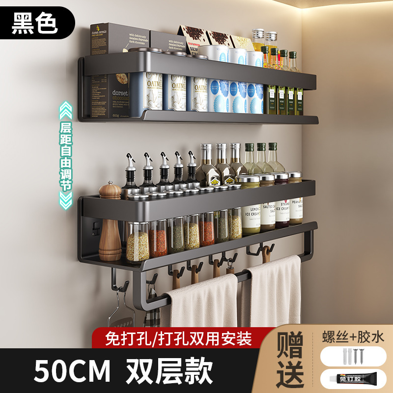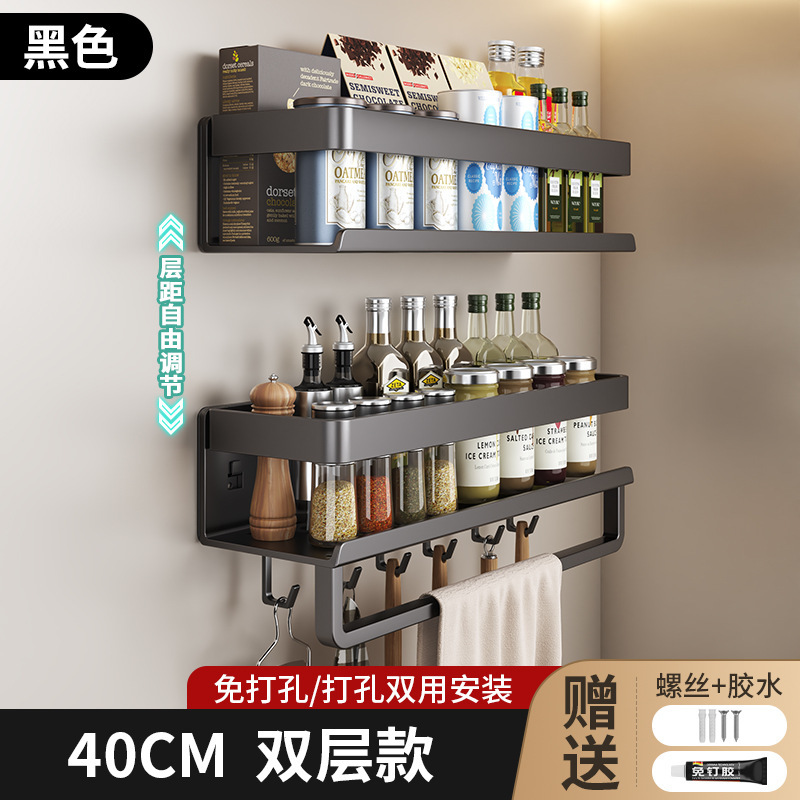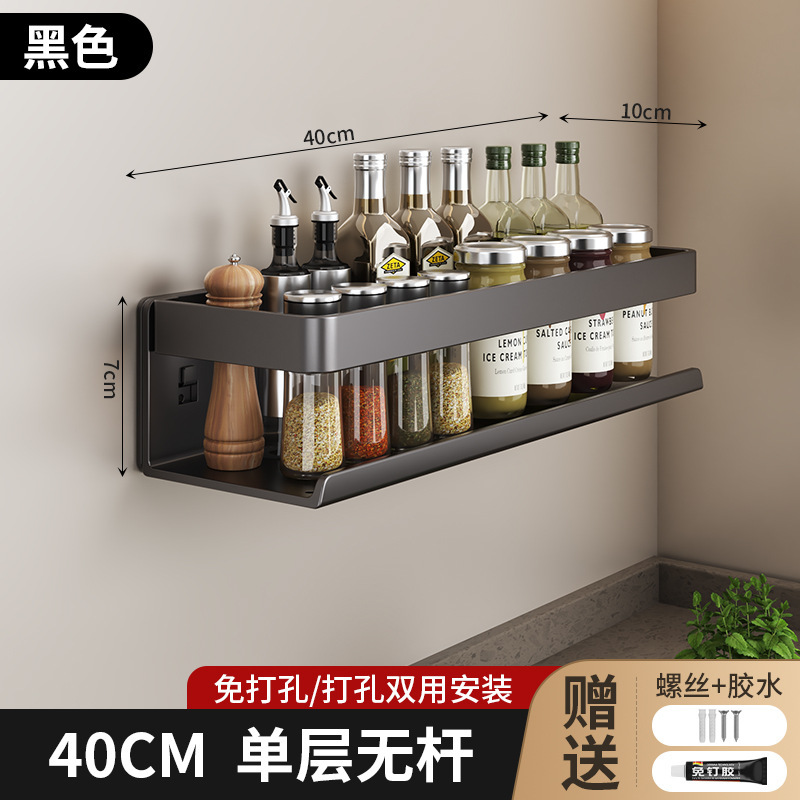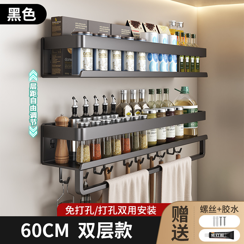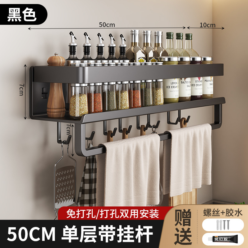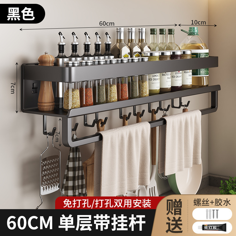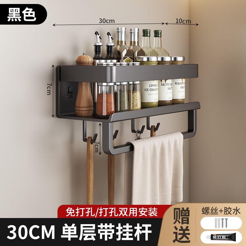 주방 보관 랙 펀치가없는 벽걸이 형 가정용 벽 조미료 공급 다기능 교수형 막대 후크 저장 랙