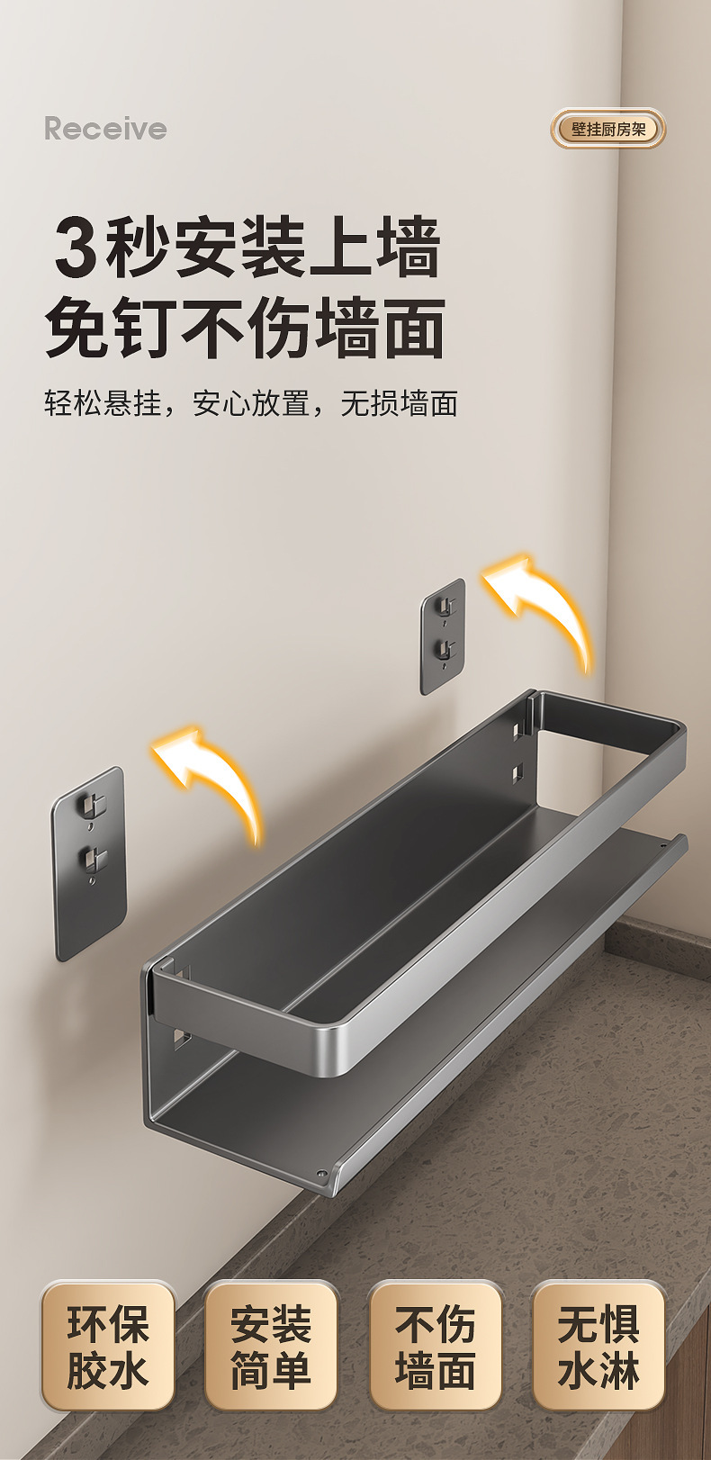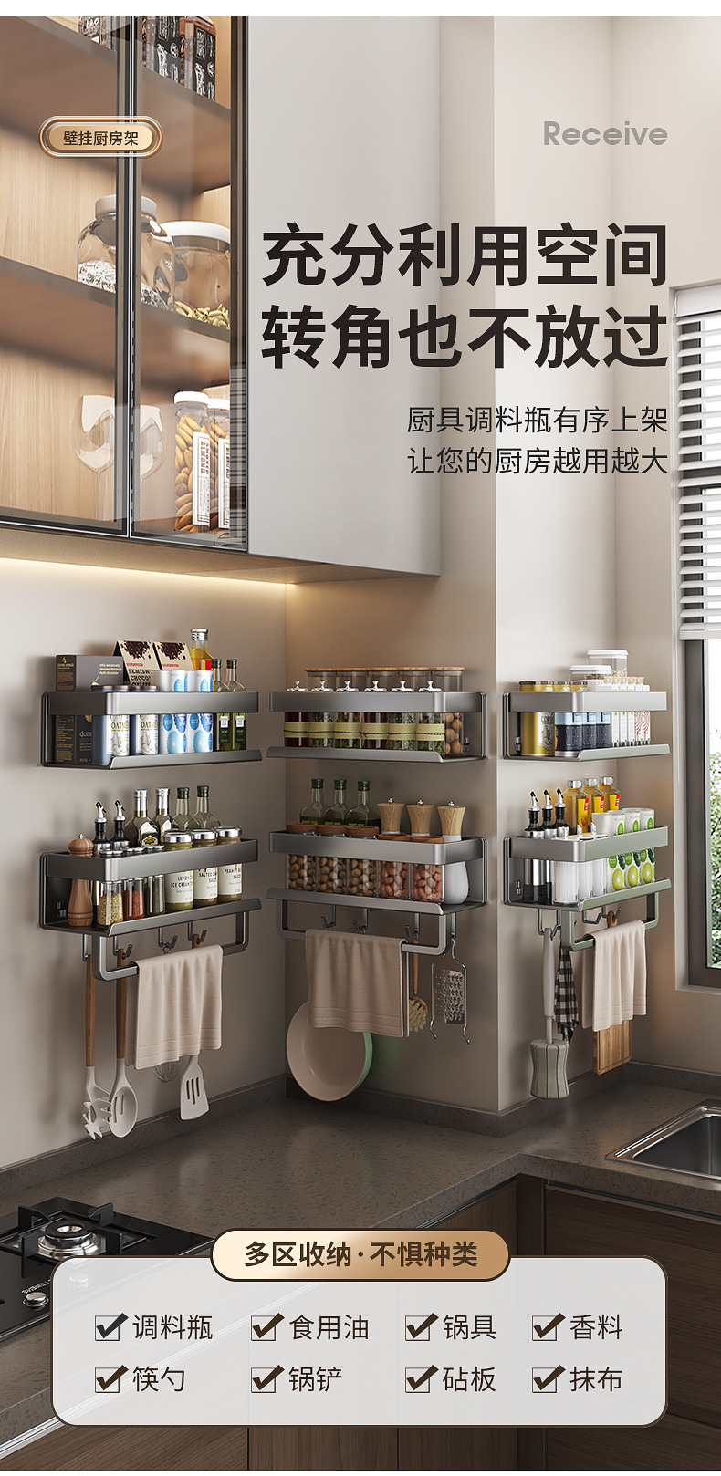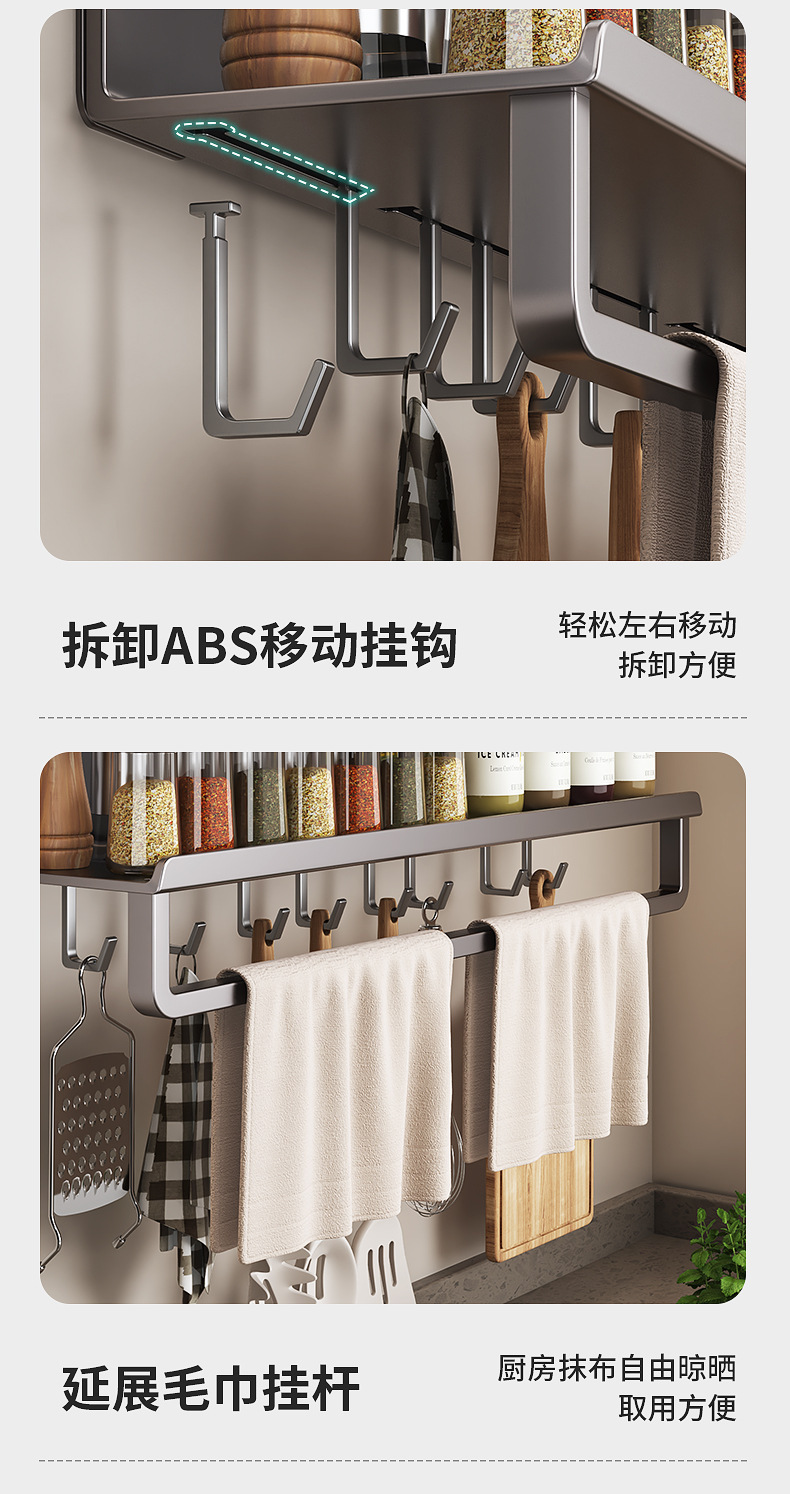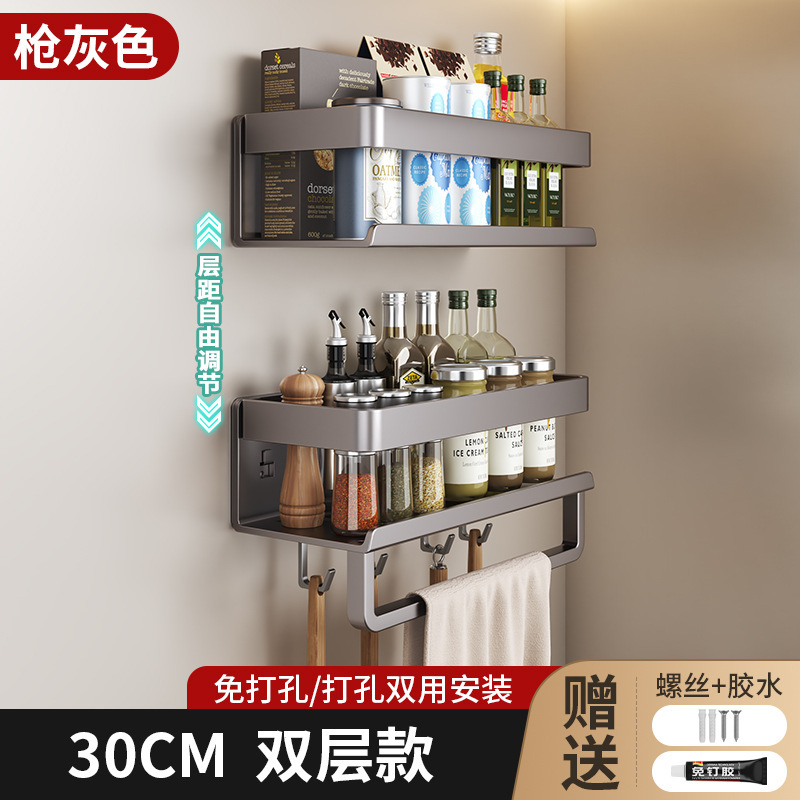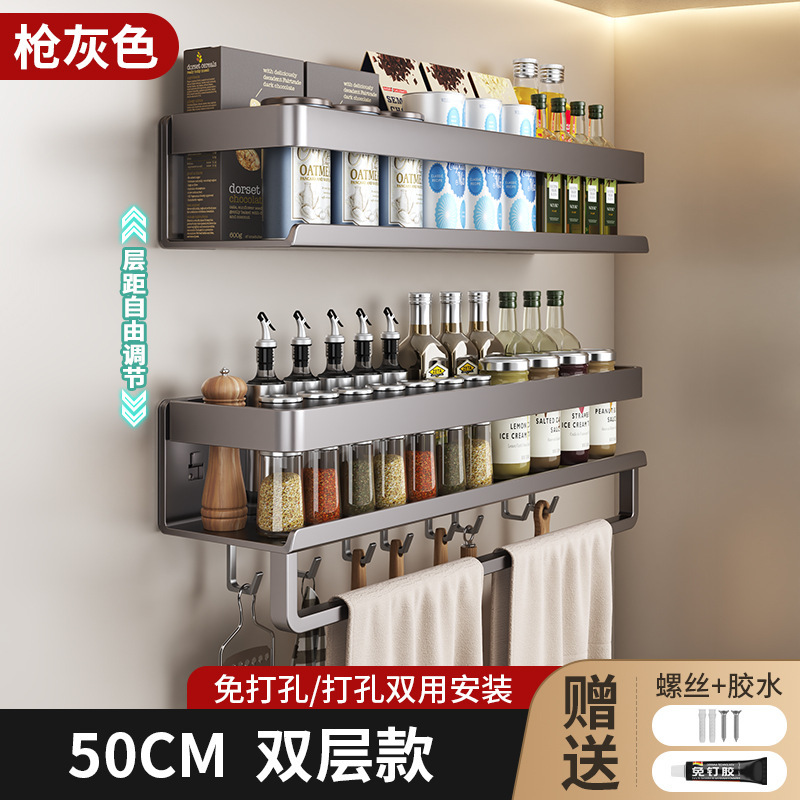 주방 보관 랙 펀치가없는 벽걸이 형 가정용 벽 조미료 공급 다기능 교수형 막대 후크 저장 랙