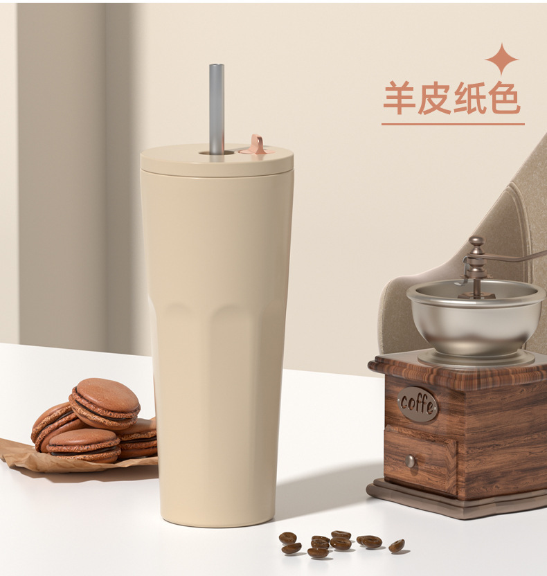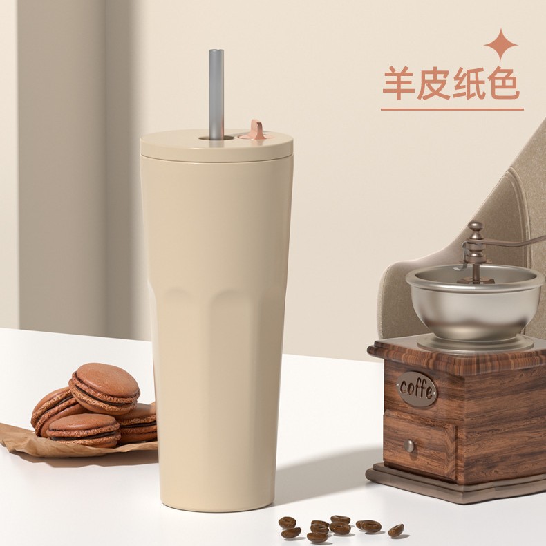 스팟 304 스테인레스 스틸 커피 컵 더블 레이어 진공 밀짚 컵 로고가있는 대용량 스테인레스 스틸 보온병 컵