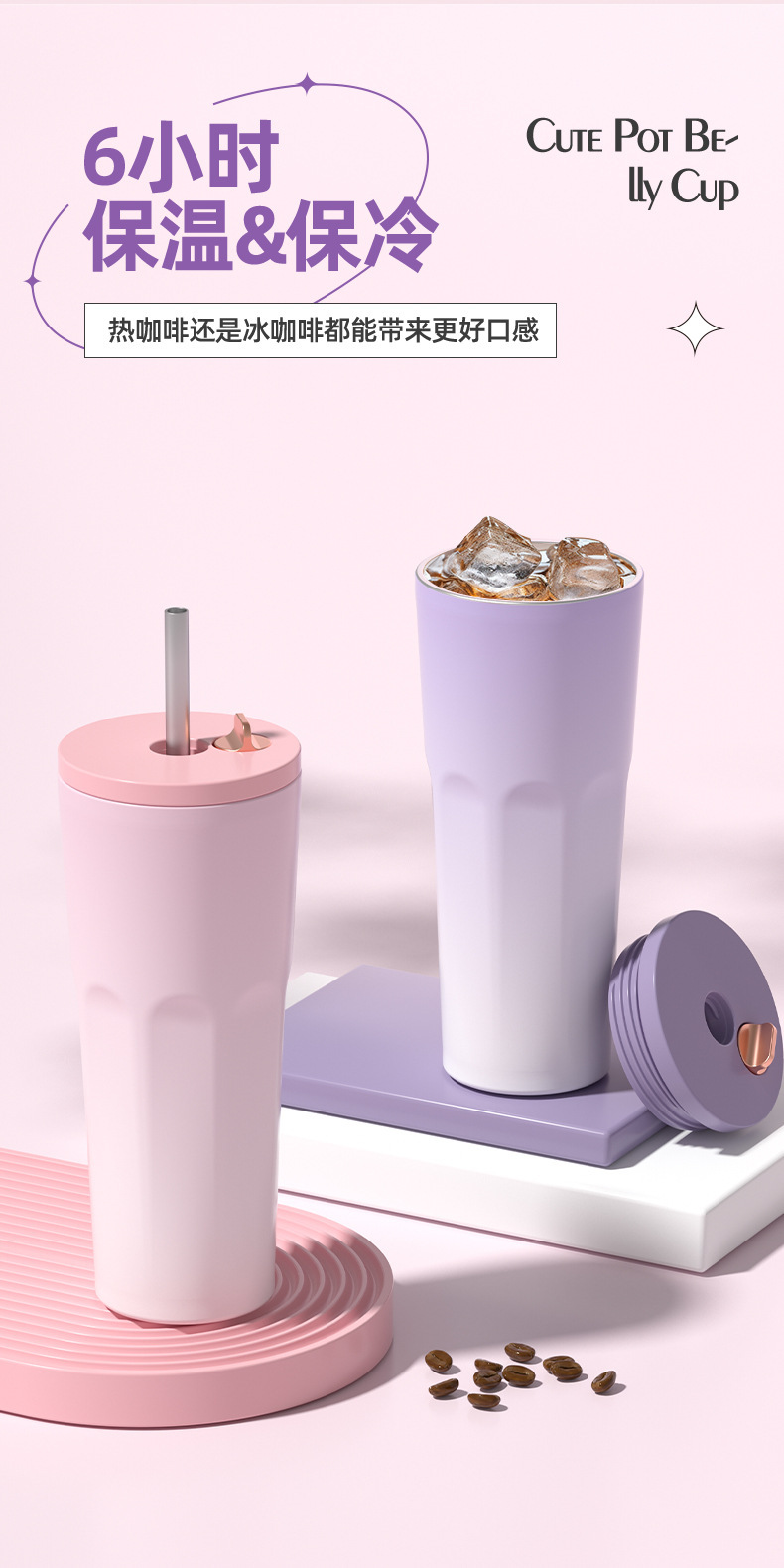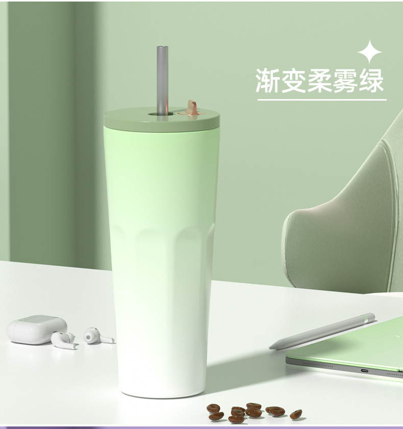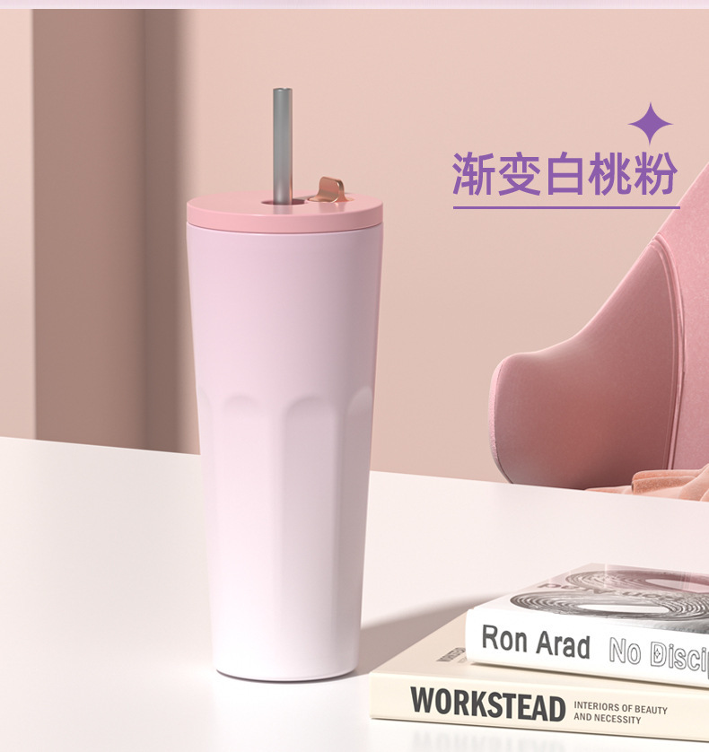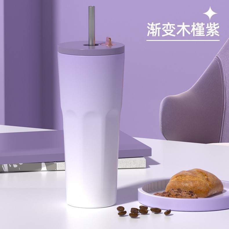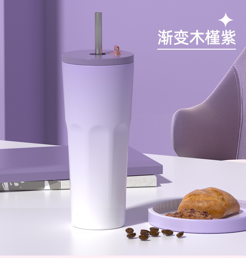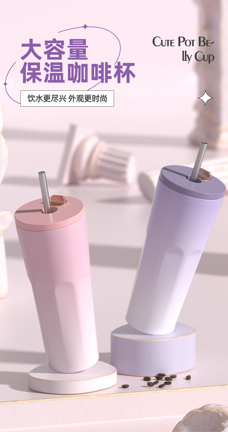 스팟 304 스테인레스 스틸 커피 컵 더블 레이어 진공 밀짚 컵 로고가있는 대용량 스테인레스 스틸 보온병 컵스토어 가기