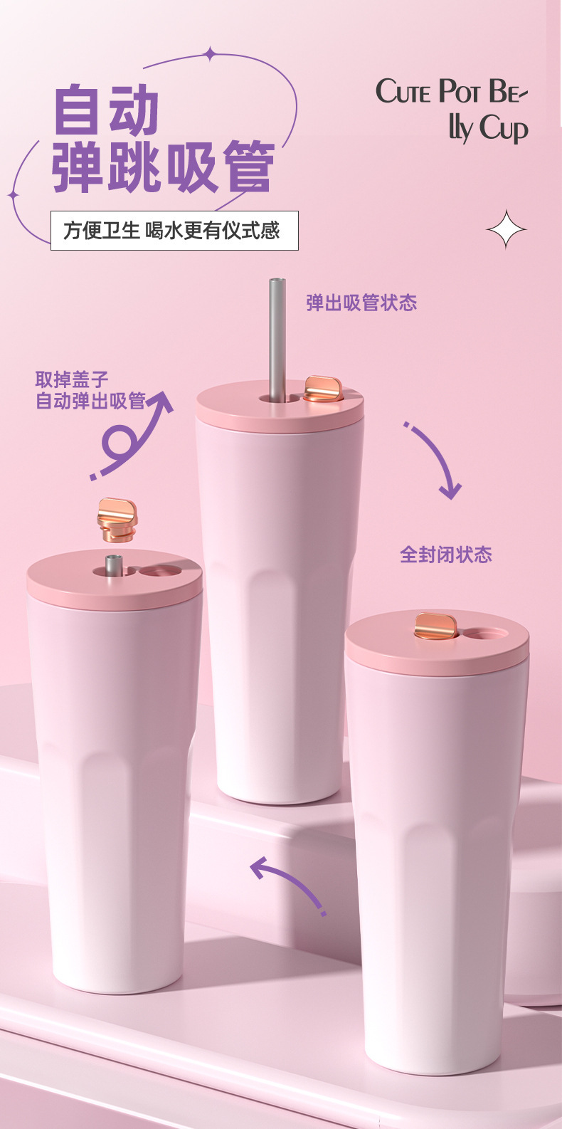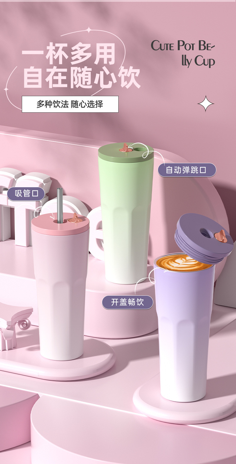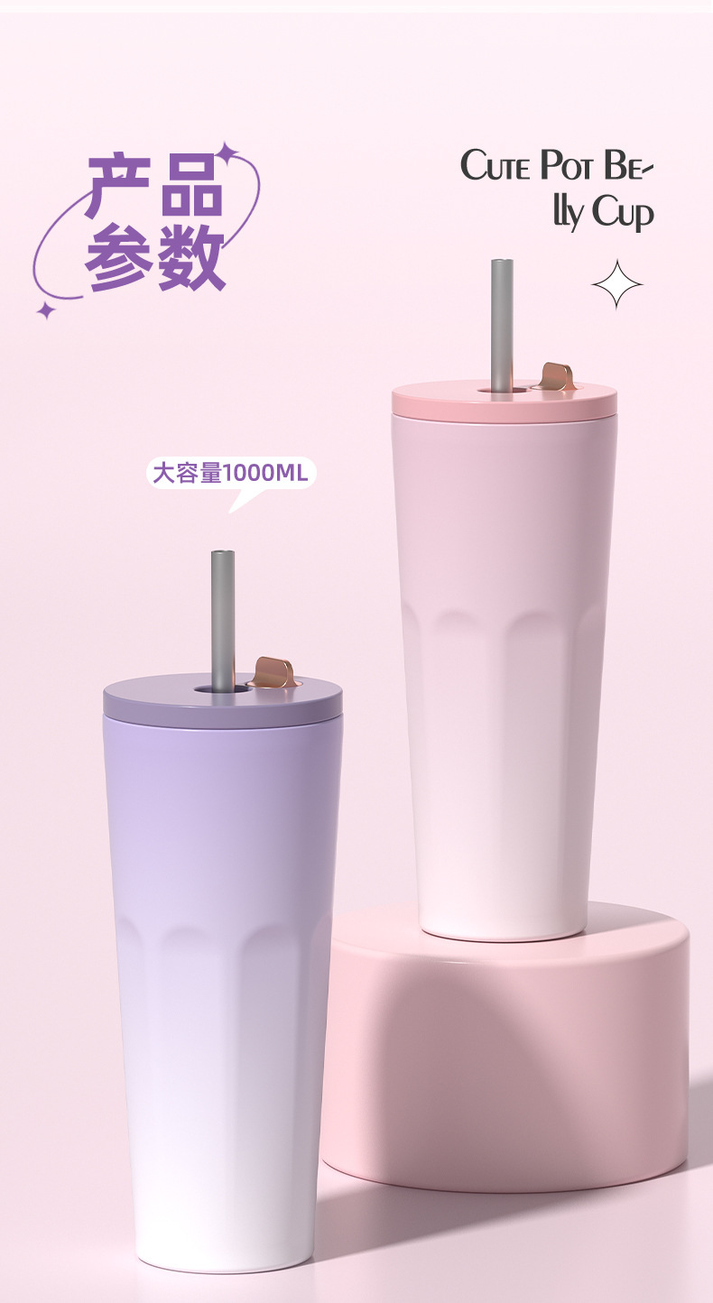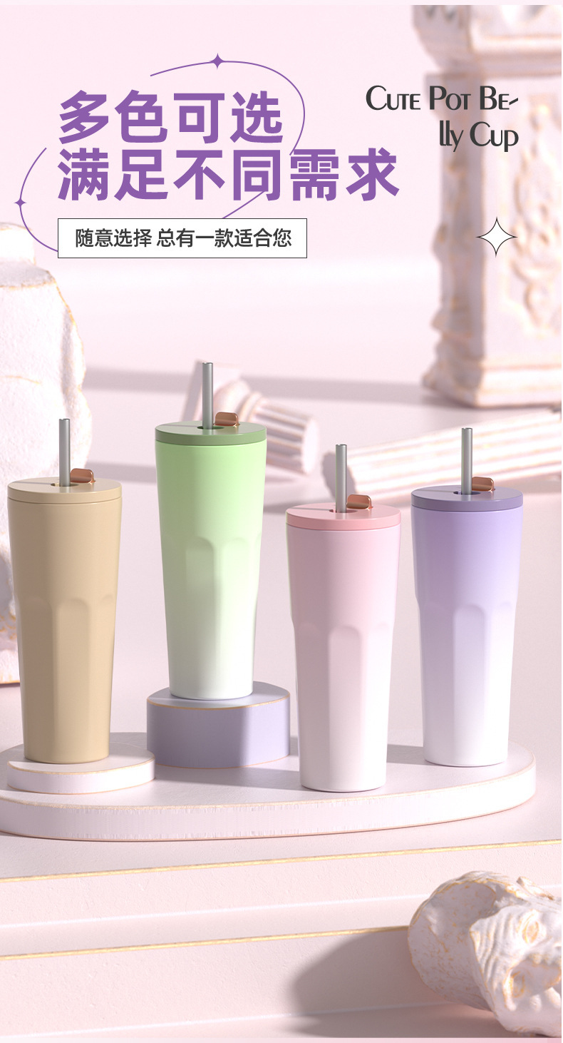 스팟 304 스테인레스 스틸 커피 컵 더블 레이어 진공 밀짚 컵 로고가있는 대용량 스테인레스 스틸 보온병 컵스토어 가기