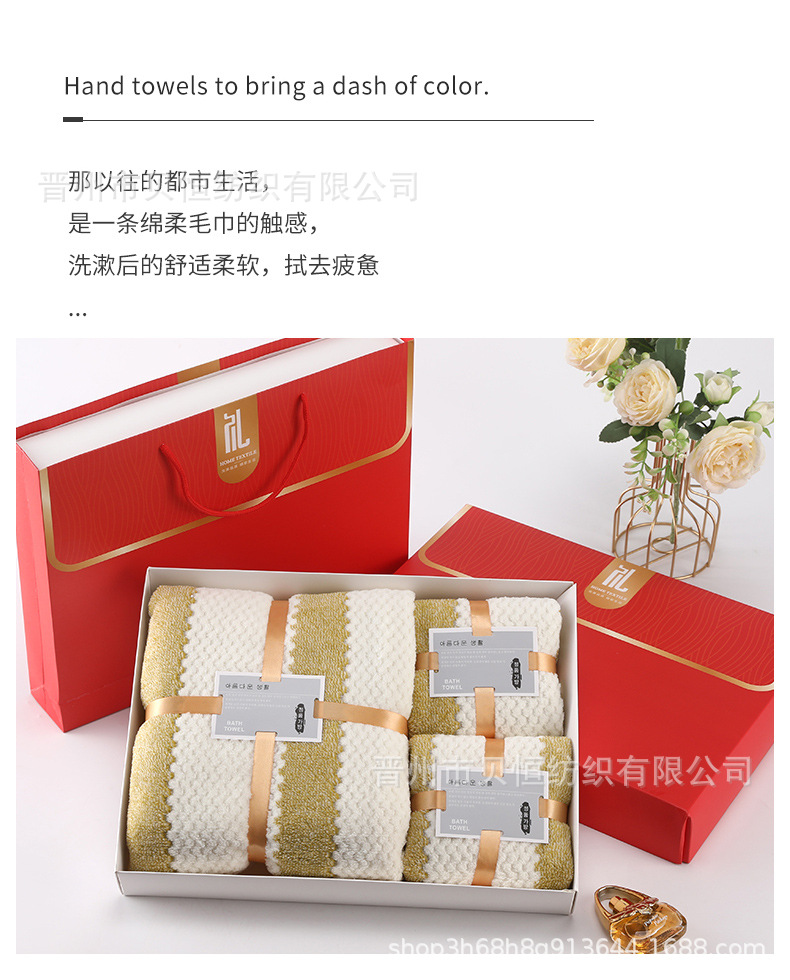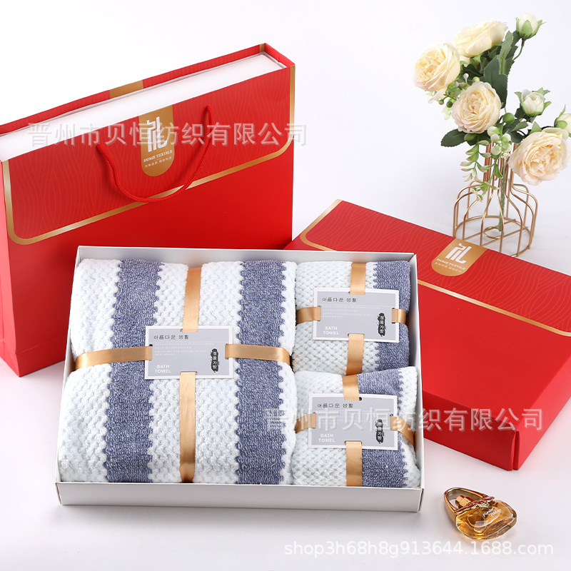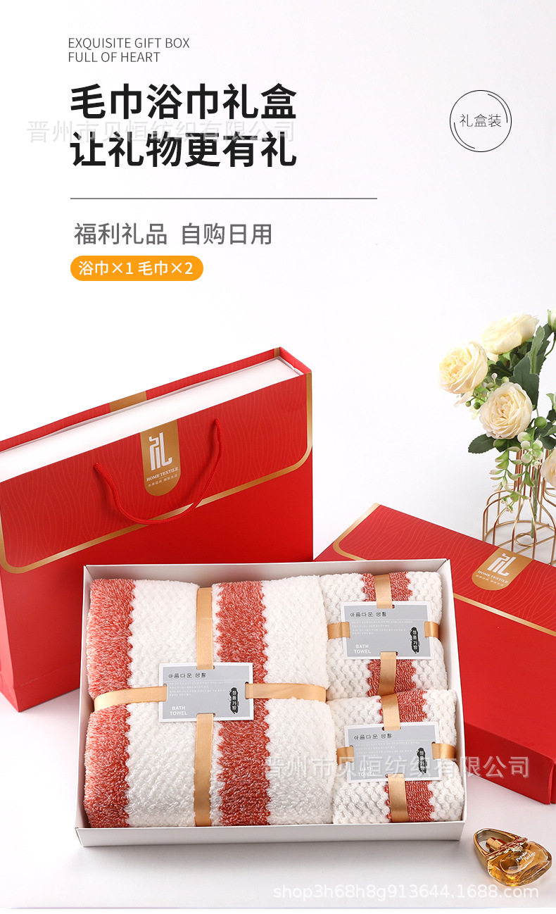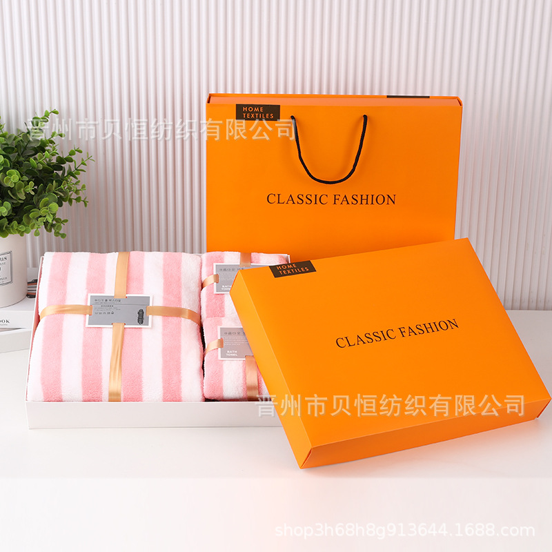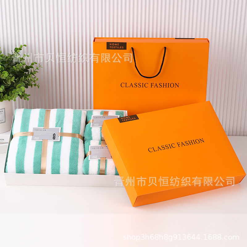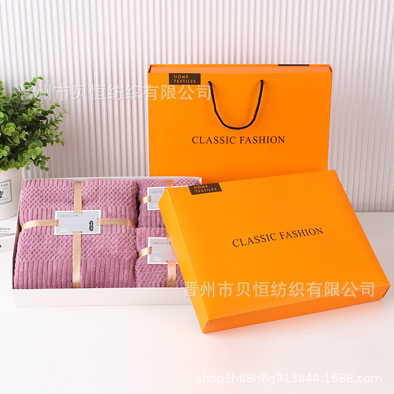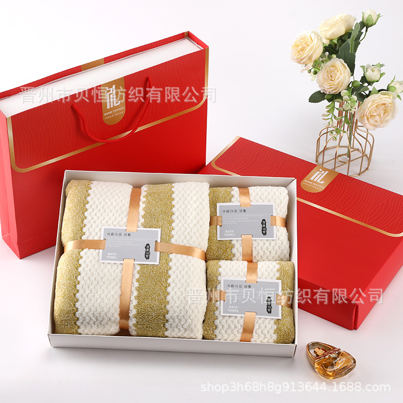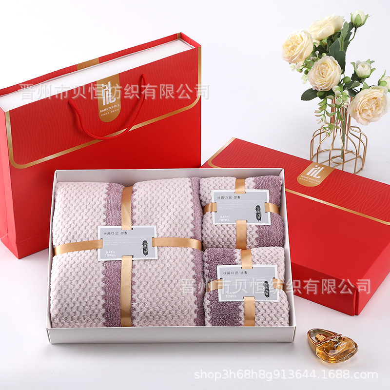 산호 양털 수건 목욕 수건 세 조각 선물 상자 결혼식 동반자 선물 반환 회사 활동 선물 수건 도매스토어 가기