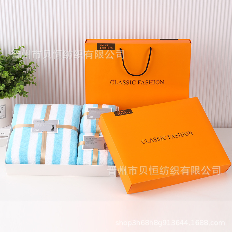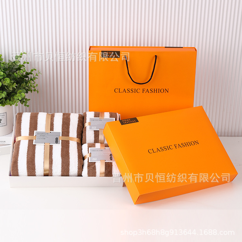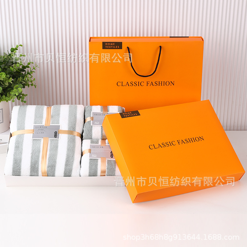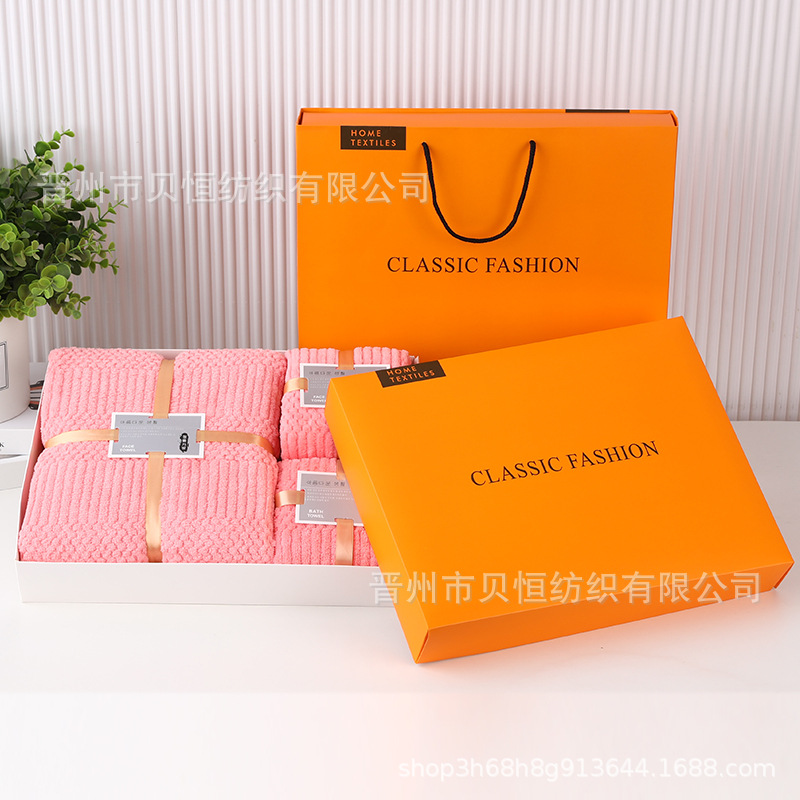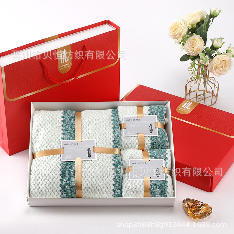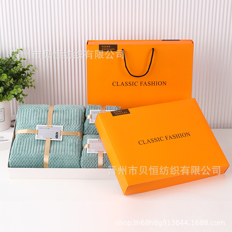 산호 양털 수건 목욕 수건 세 조각 선물 상자 결혼식 동반자 선물 반환 회사 활동 선물 수건 도매