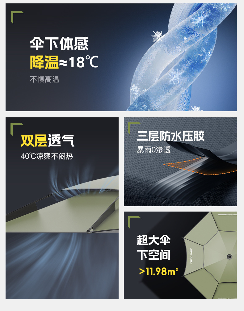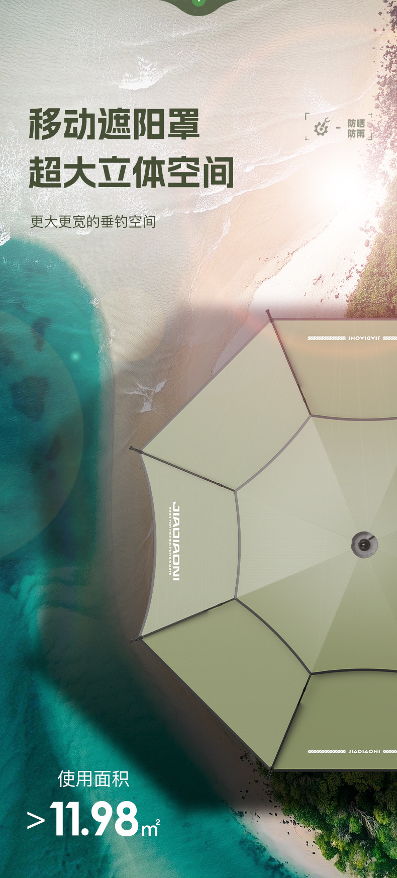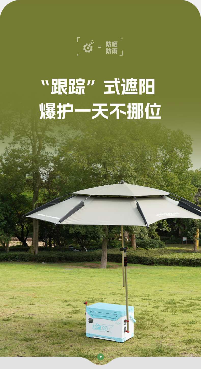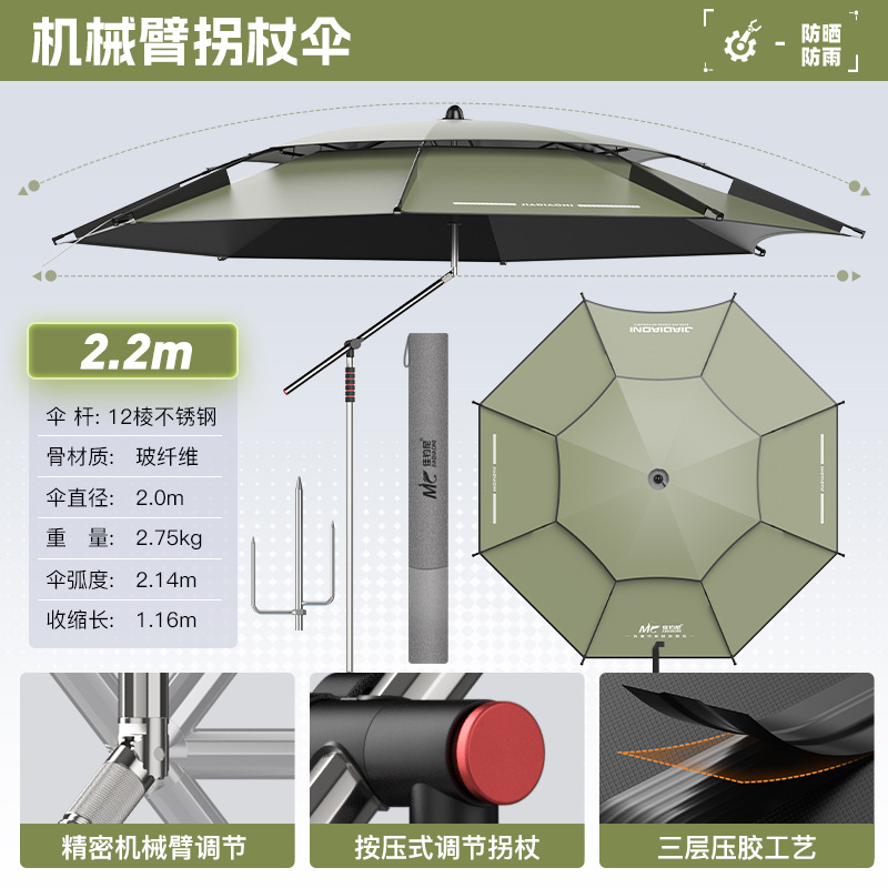 Jiadaoni 기계식 팔 낚시 우산 2024 새로운 목발 낚시 우산 차양 우산 새로운 캠핑 태양 우산