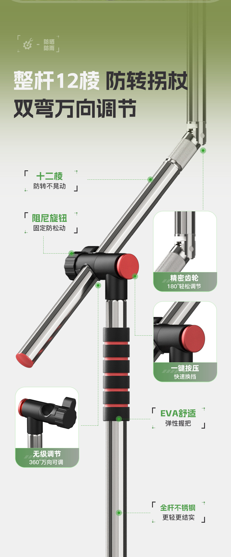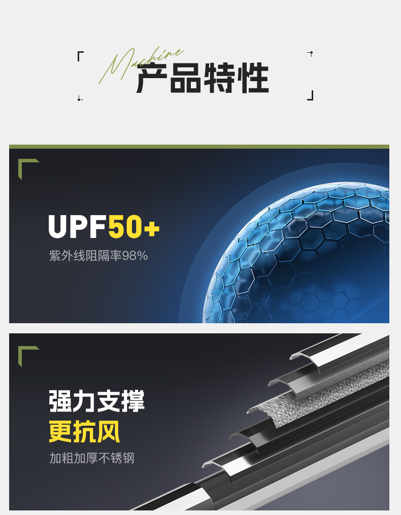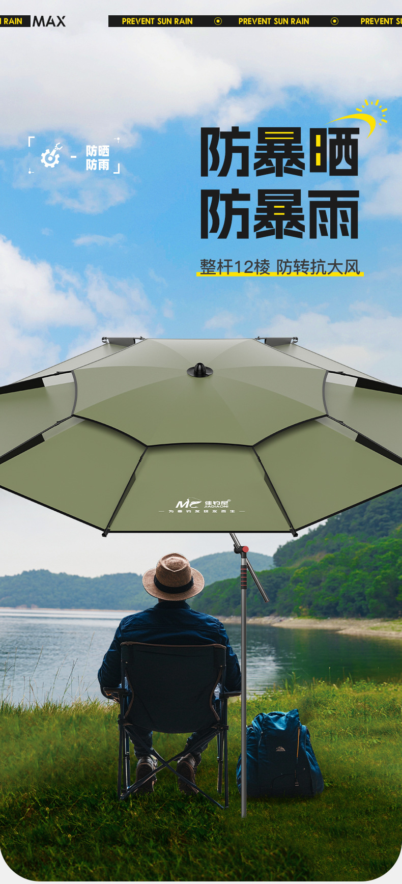 Jiadaoni 기계식 팔 낚시 우산 2024 새로운 목발 낚시 우산 차양 우산 새로운 캠핑 태양 우산