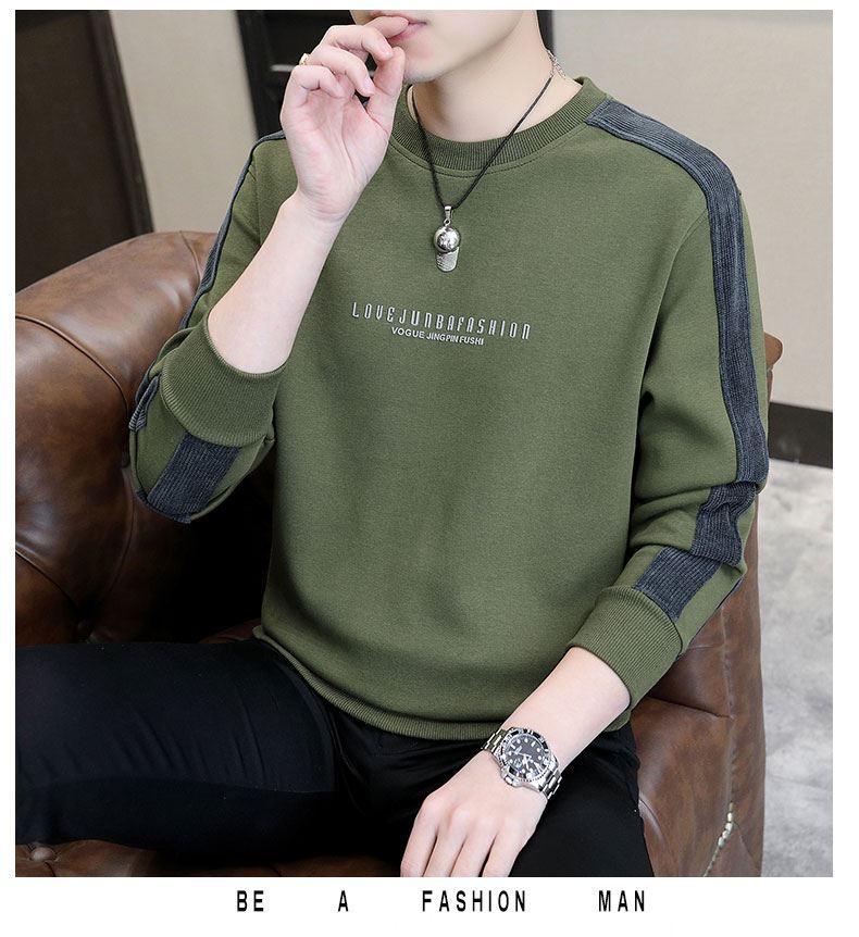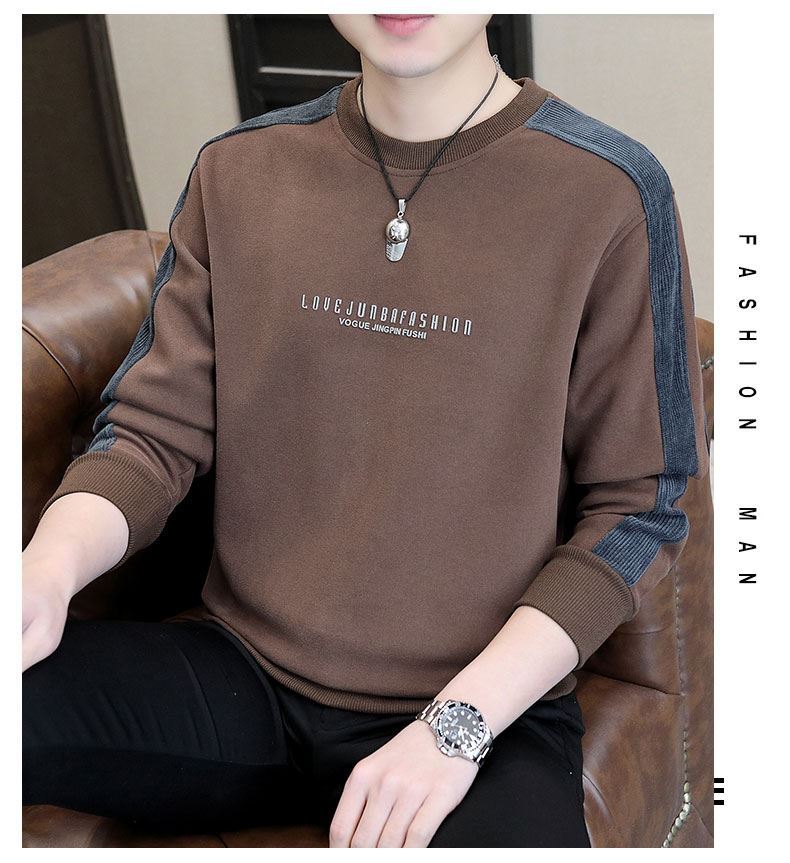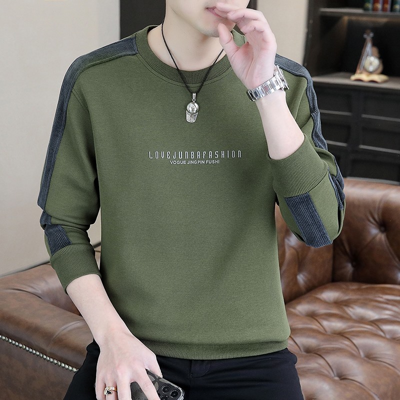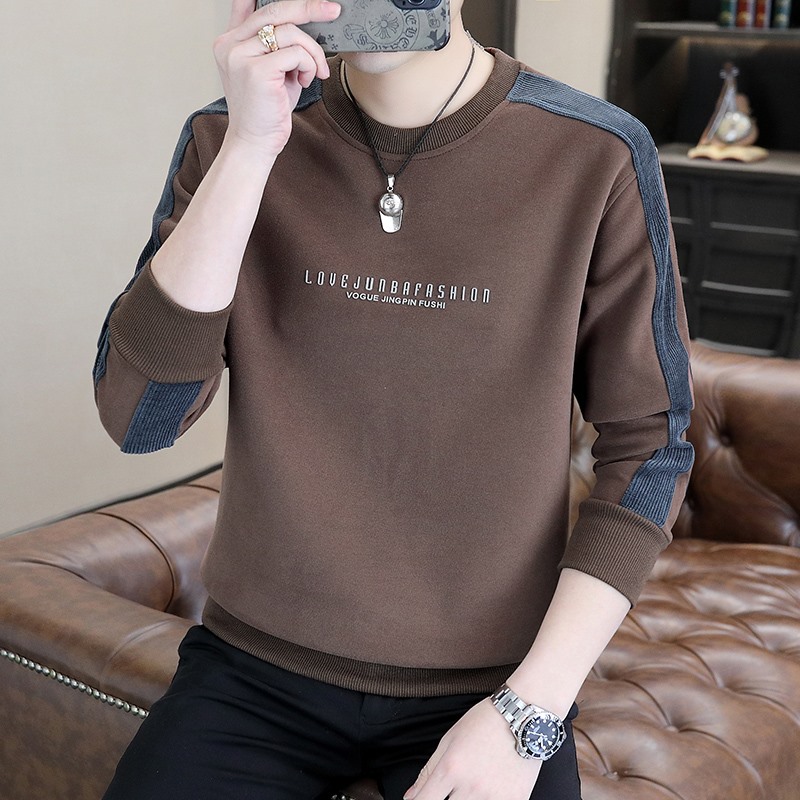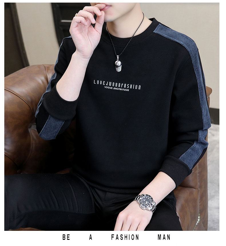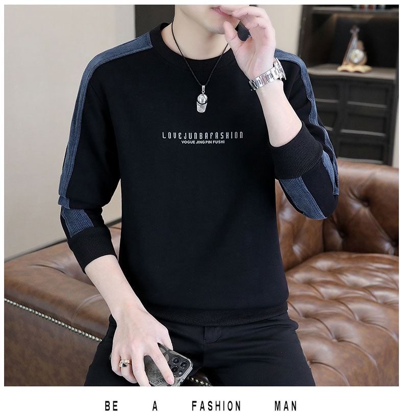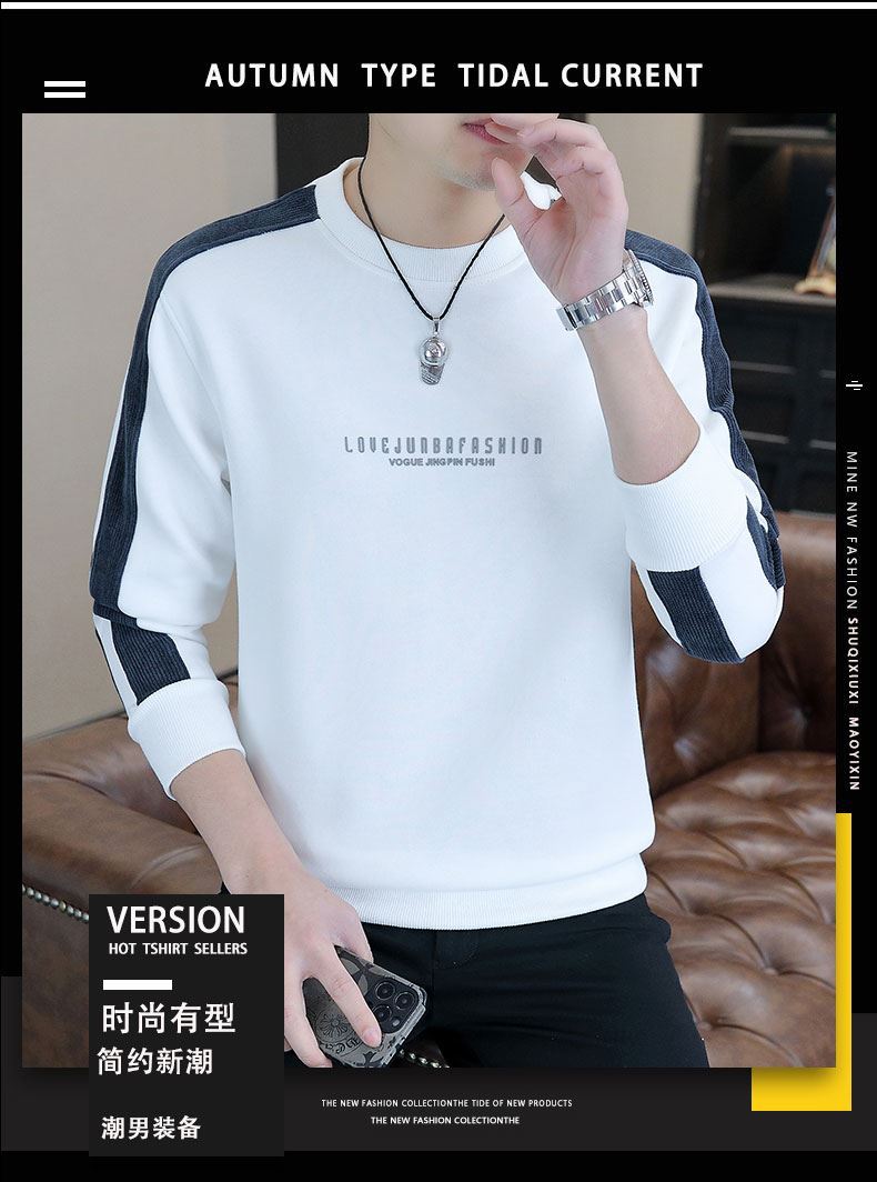 남자 스웨터 하이 퀄리티 긴 소매 봄과 가을 새로운 둥근 목 바느질 스웨터 남자 기모 두꺼운 티셔츠 베이스 셔츠스토어 가기