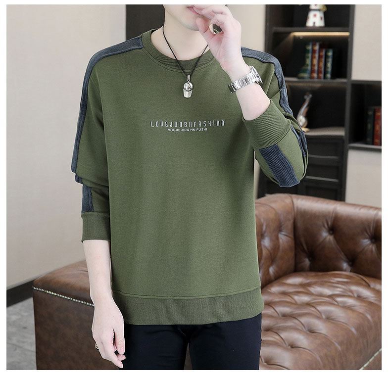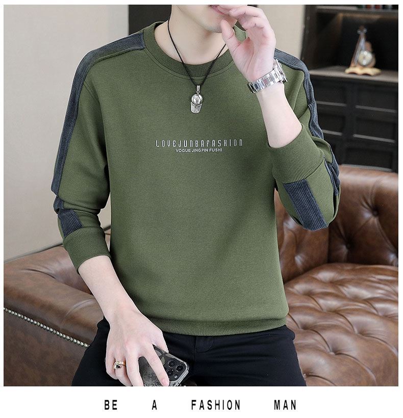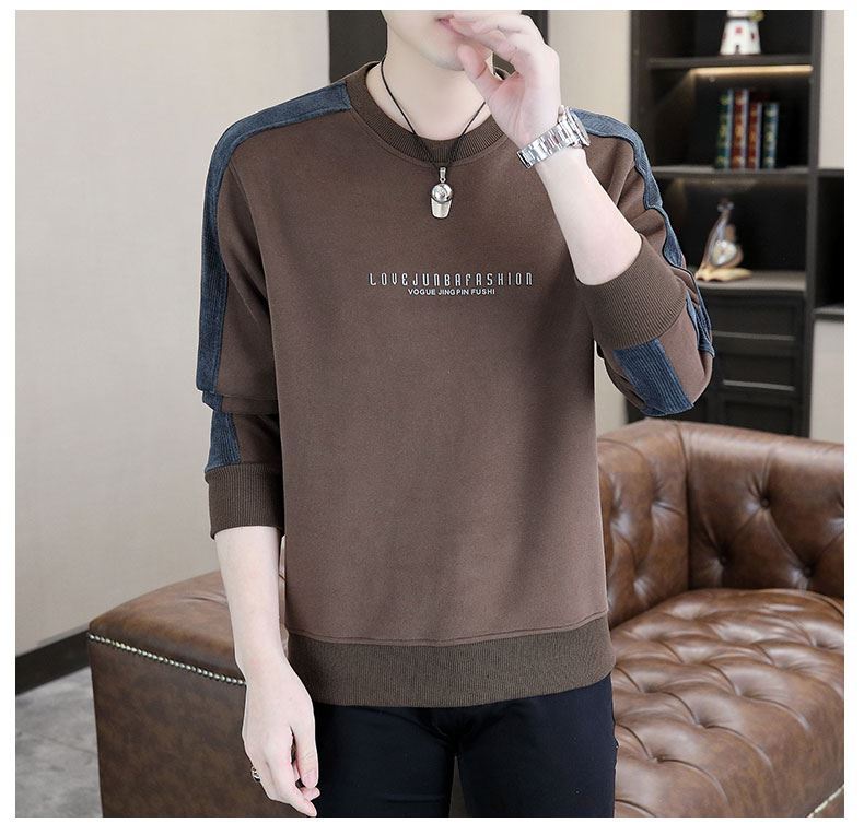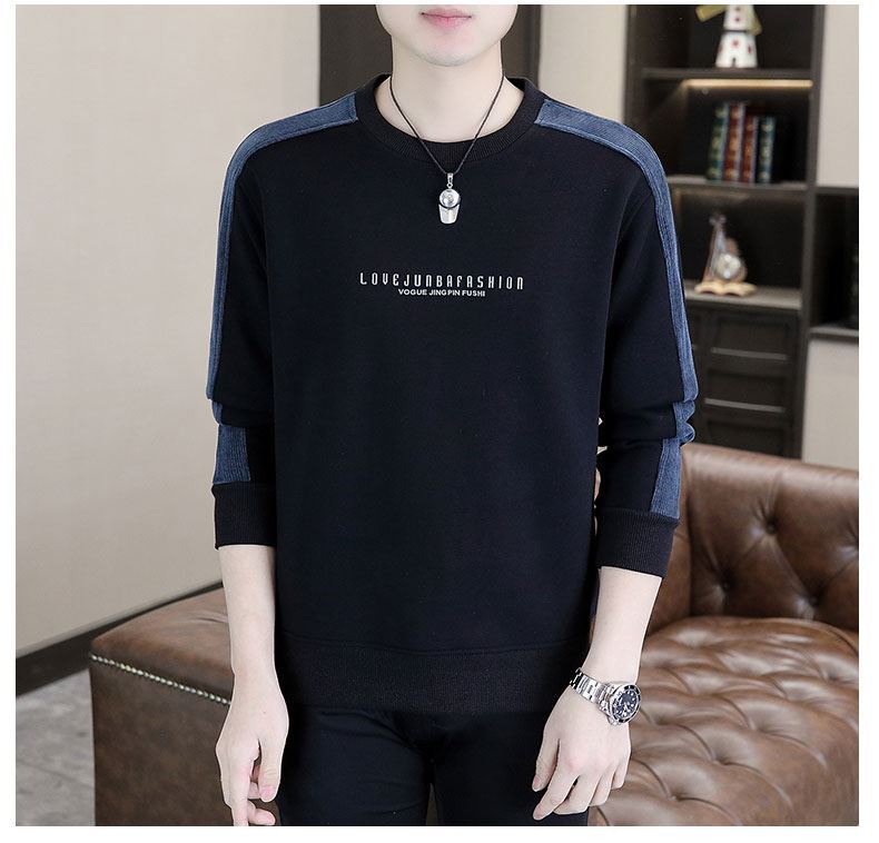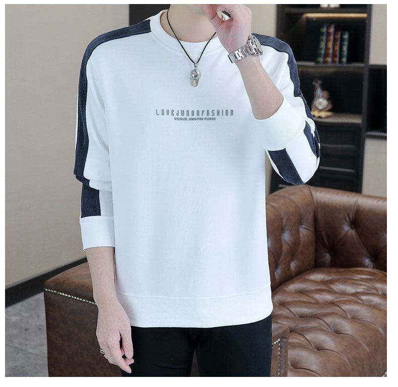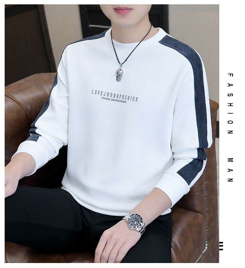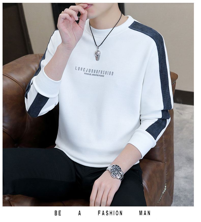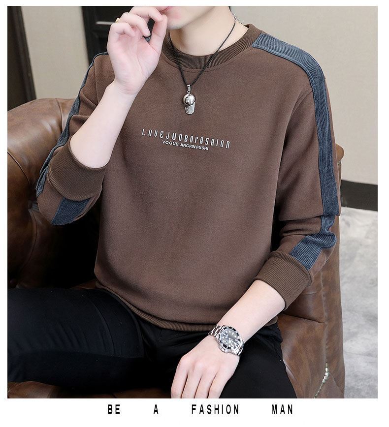 남자 스웨터 하이 퀄리티 긴 소매 봄과 가을 새로운 둥근 목 바느질 스웨터 남자 기모 두꺼운 티셔츠 베이스 셔츠스토어 가기