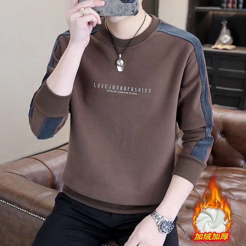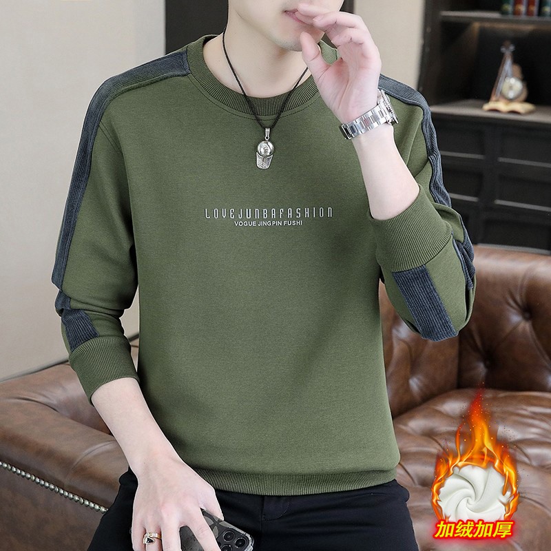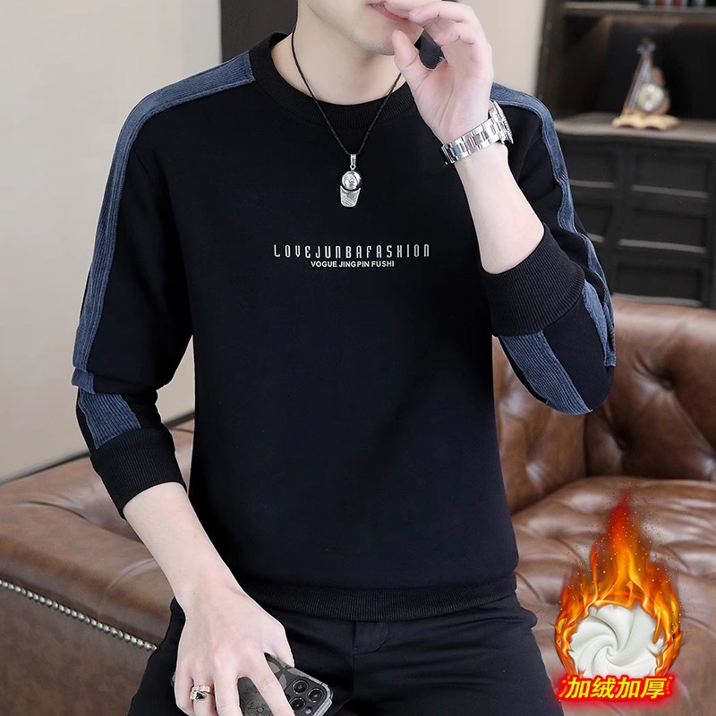 남자 스웨터 하이 퀄리티 긴 소매 봄과 가을 새로운 둥근 목 바느질 스웨터 남자 기모 두꺼운 티셔츠 베이스 셔츠