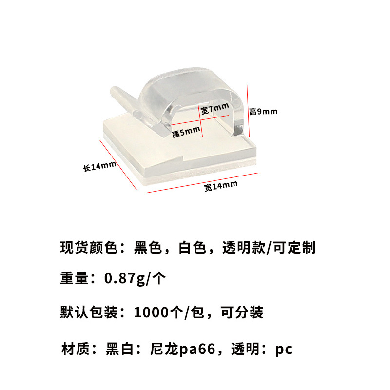 • 고투명 R형 케이블 클립 14*14* 흰색 가죽 투명 접착제