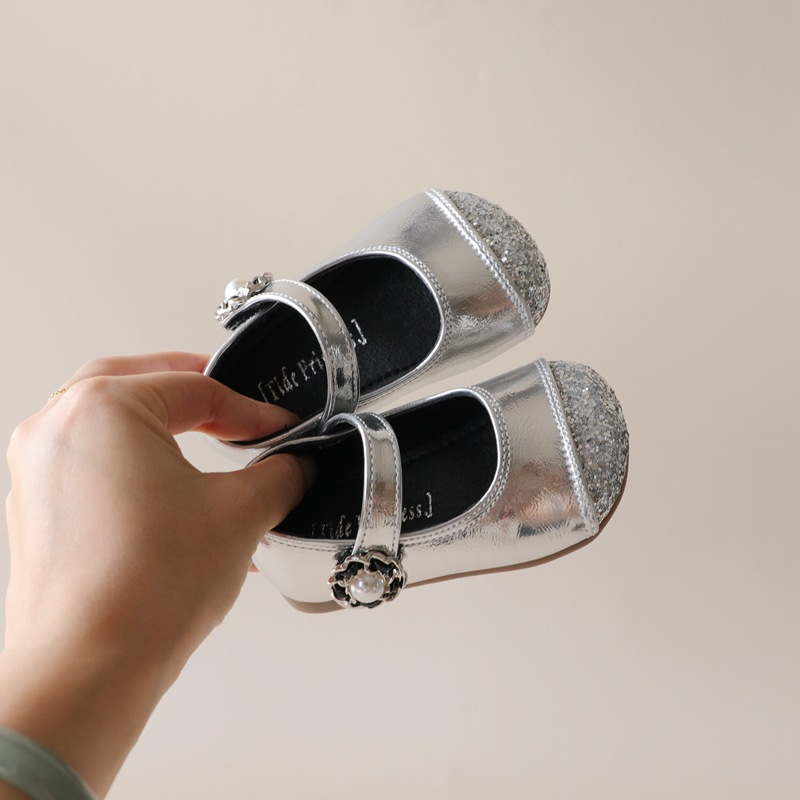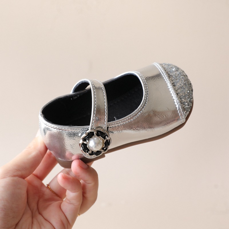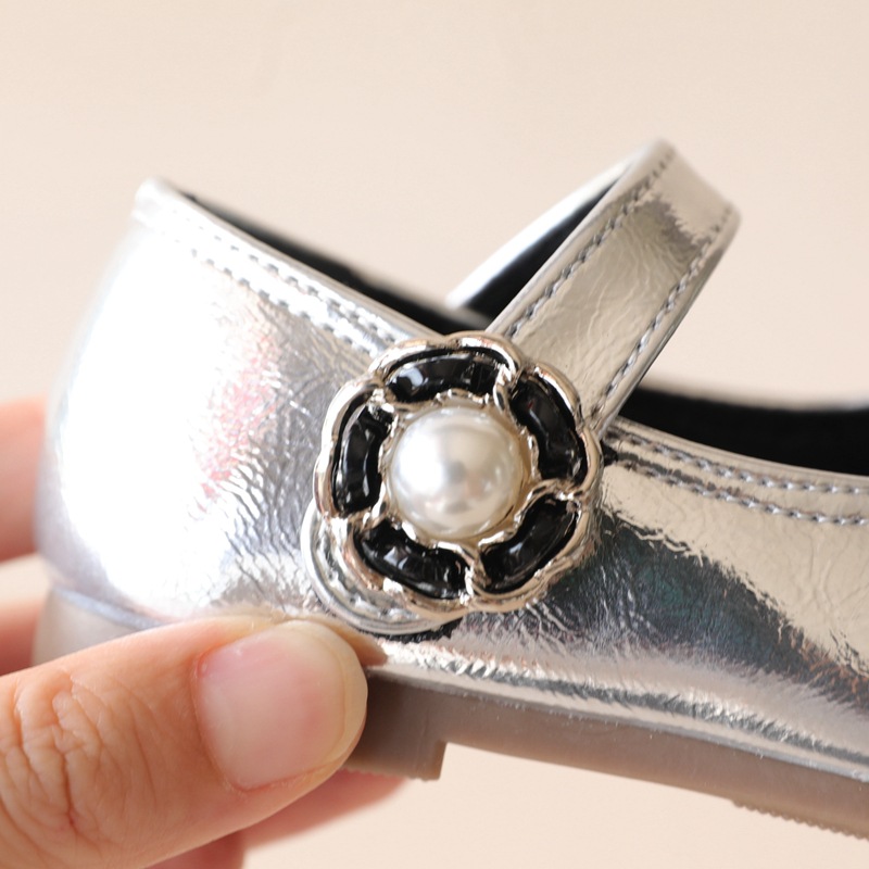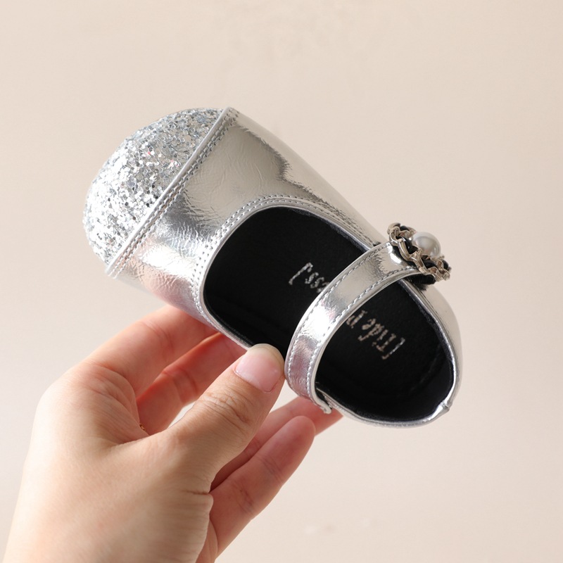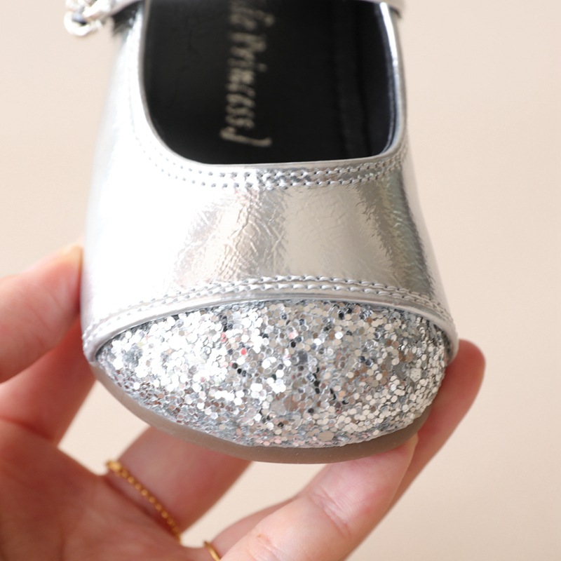 很漂亮的小香风公主鞋,侧面是一朵精致的玫瑰花装饰,装饰是扣上去的不会掉落,鞋头亮片拼接,鞋子微微闪,很美丽,搭配公主裙超级好看。