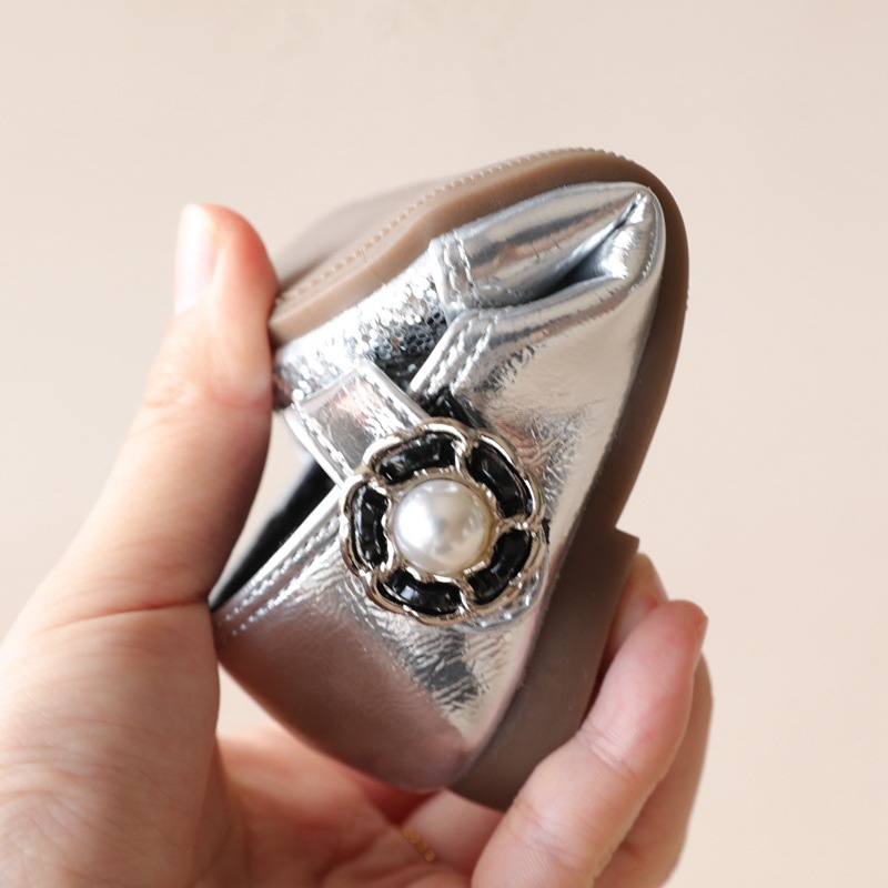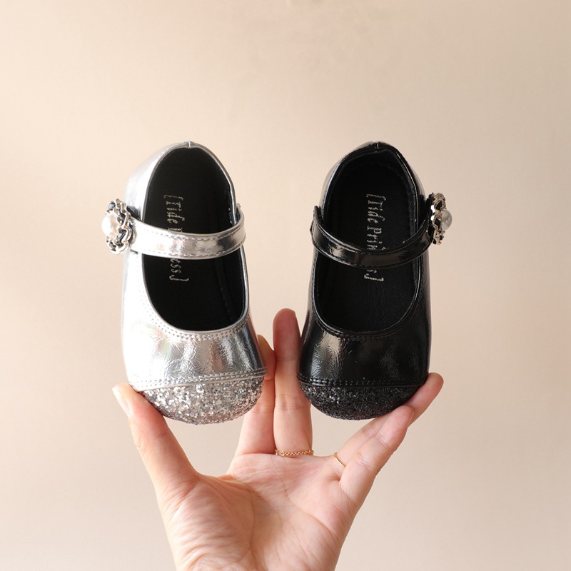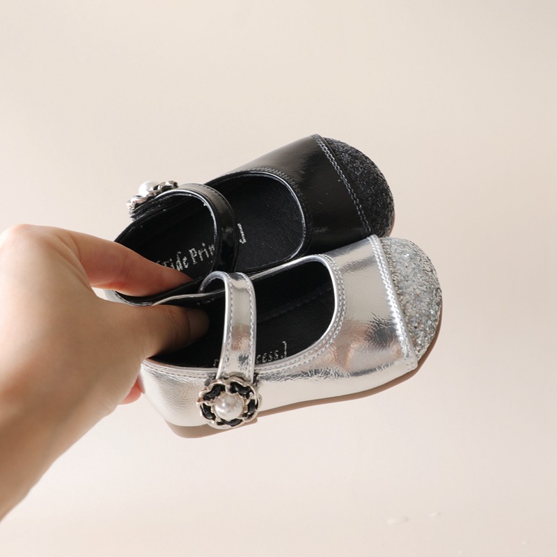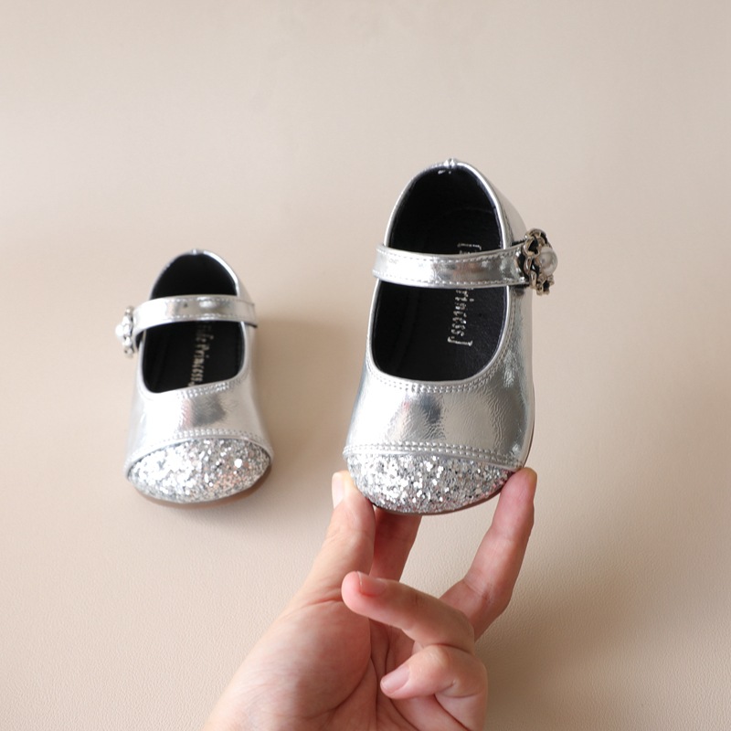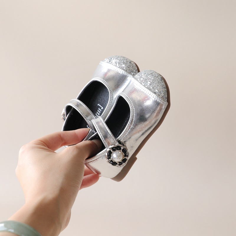 很漂亮的小香风公主鞋,侧面是一朵精致的玫瑰花装饰,装饰是扣上去的不会掉落,鞋头亮片拼接,鞋子微微闪,很美丽,搭配公主裙超级好看。