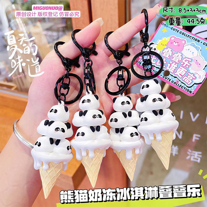 중국 팬더 시리즈 키 체인 만화 대나무 큰 아이 팬더 아이스크림 가방 펜던트 자동차 키 체인스토어 가기