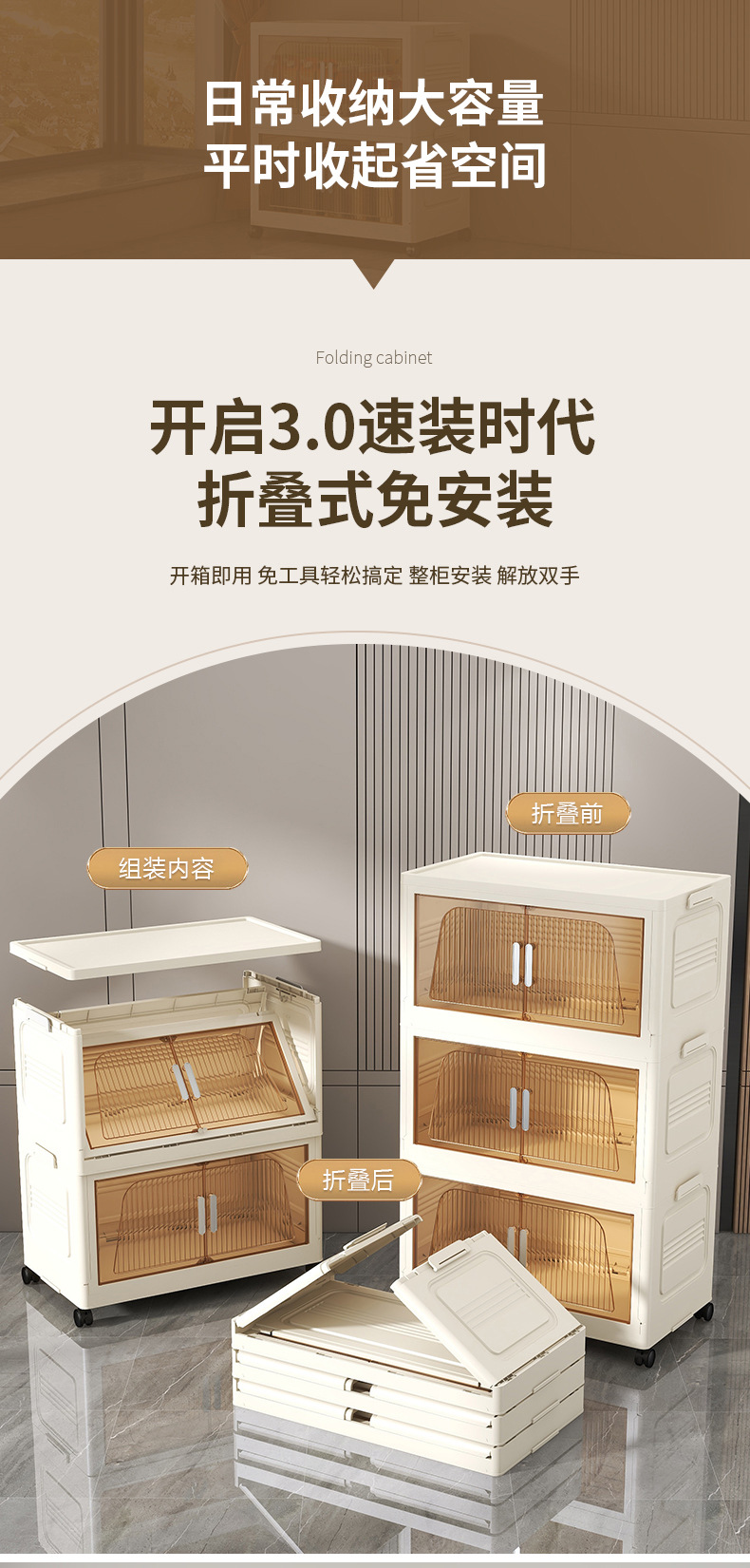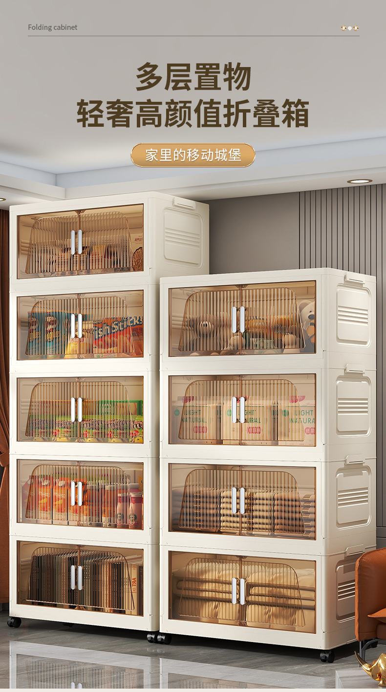 저장 및 깔끔한 상자 바닥 가정용 장난감 잡화 보관 캐비닛 투명 접는 플라스틱 저장 상자 빛 고급 옷장