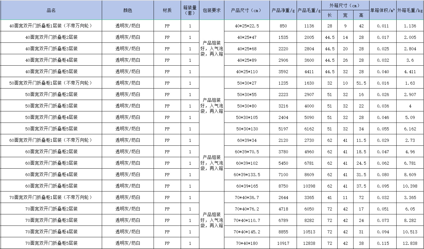 • 50면 와이드 양문형 접이식 캐비닛 투명 그레이