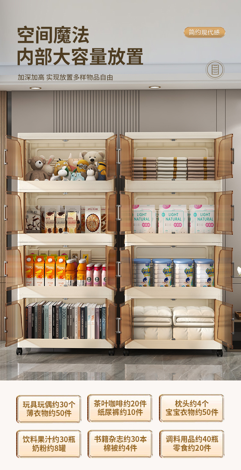 저장 및 깔끔한 상자 바닥 가정용 장난감 잡화 보관 캐비닛 투명 접는 플라스틱 저장 상자 빛 고급 옷장스토어 가기