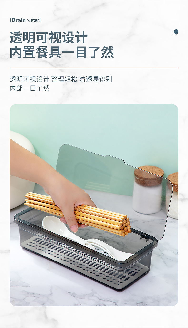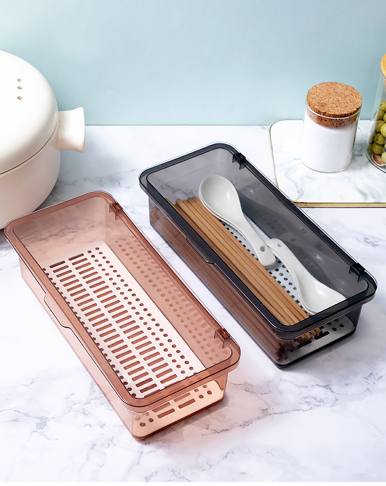가정용 주방 젓가락 저장 상자 배출 투명 보이는 젓가락 케이지 폐색 방진 식기 나이프와 포크 저장 젓가락 튜브스토어 가기