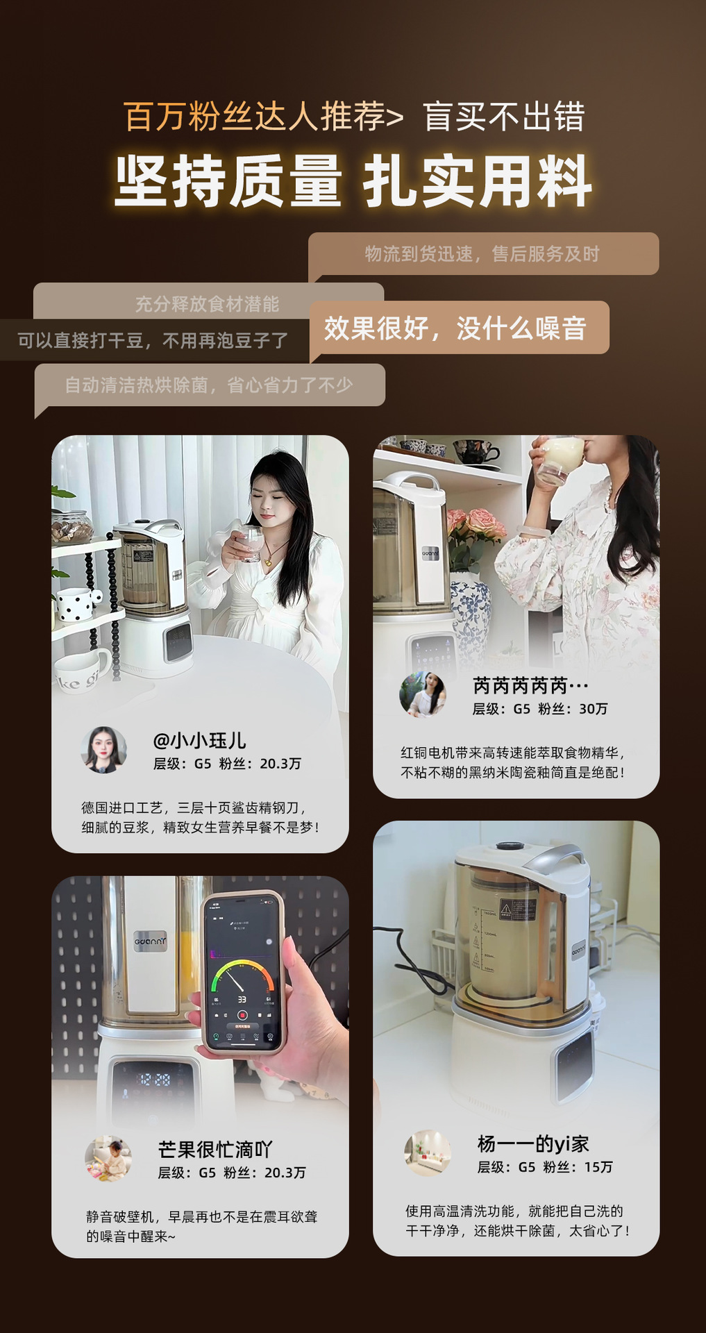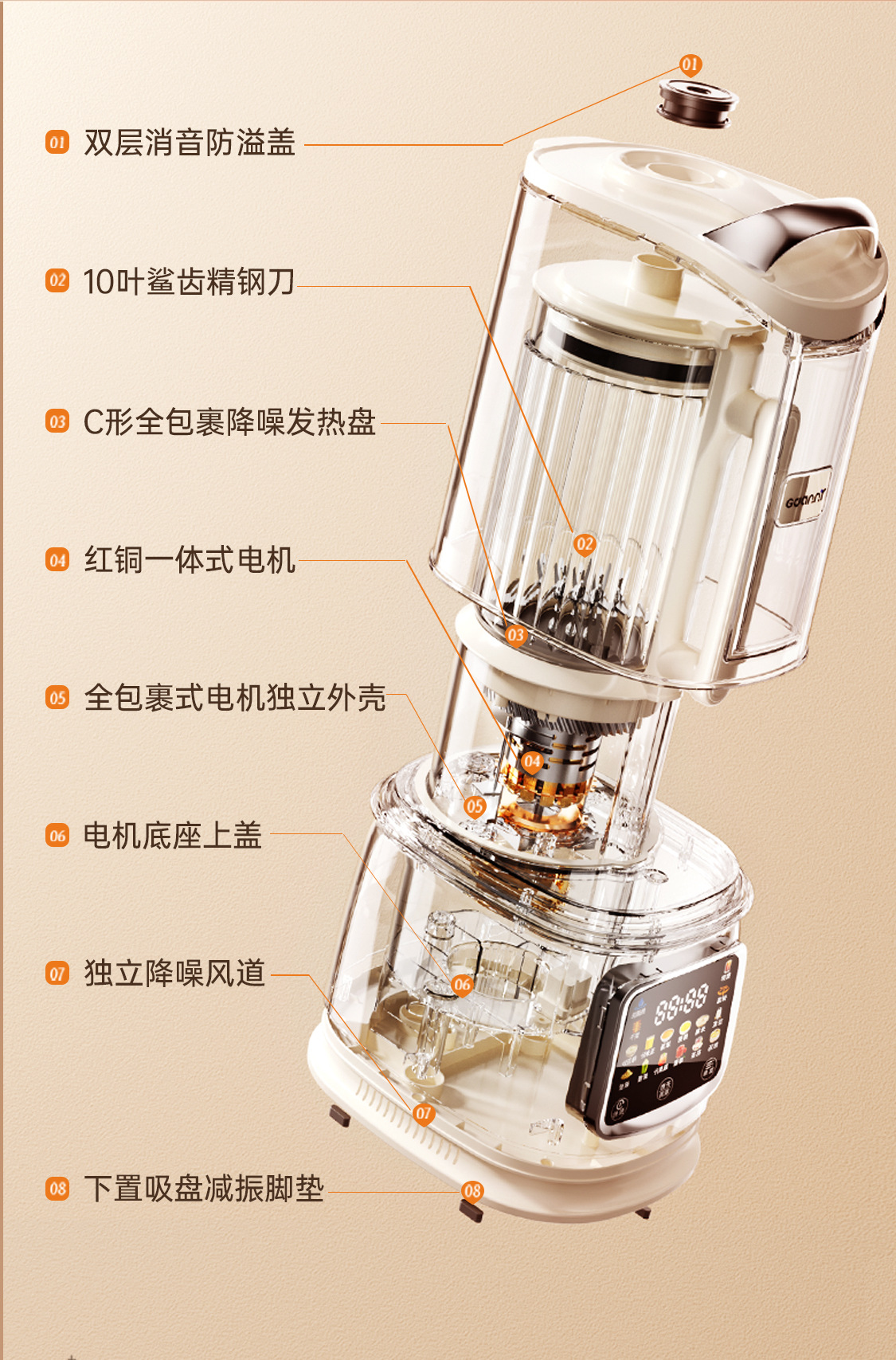 독일 수입 가정용 자동 무소음 브로크 월 머신 2026년형 두유 제조기, 잔여물 없는 다기능 주스기