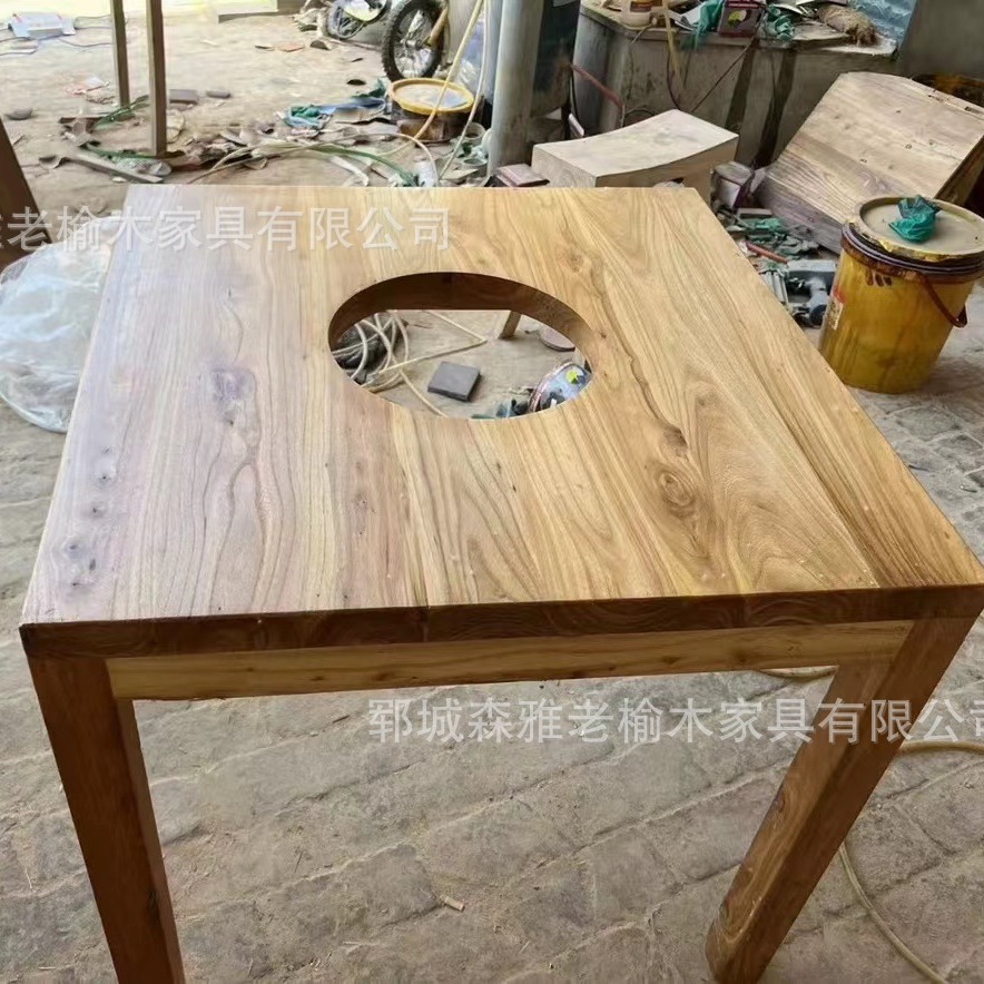 올드 느릅 나무 요리 차 테이블 핫 팟 테이블 오픈 홀 엔서클 스토브 요리 티 테이블 솔리드 우드 가구 라운드 다이닝 테이블 야외 캠핑 테이블