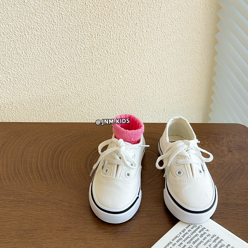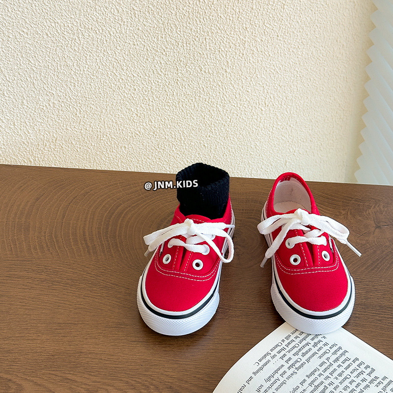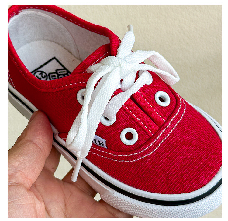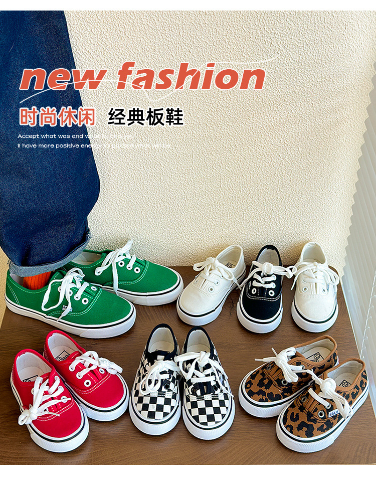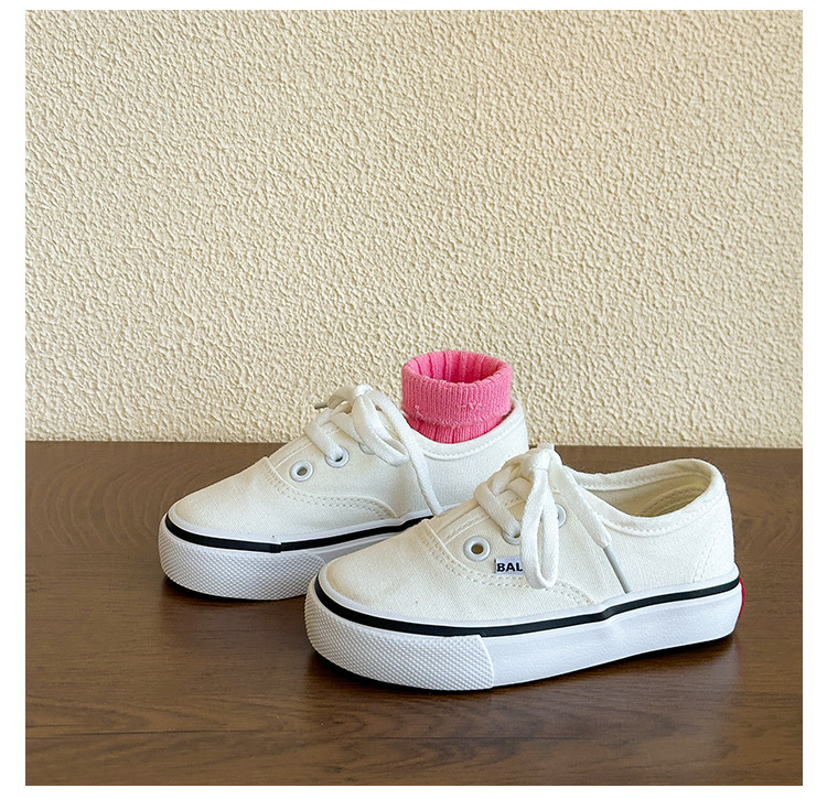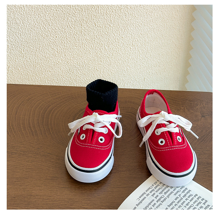 한국 스타일 어린이 캔버스 신발 소년 소녀 흑백 격자 무늬 보드 신발 아기 빨간 천 신발 봄과 가을 학생 레이스 업 작은 흰색 신발