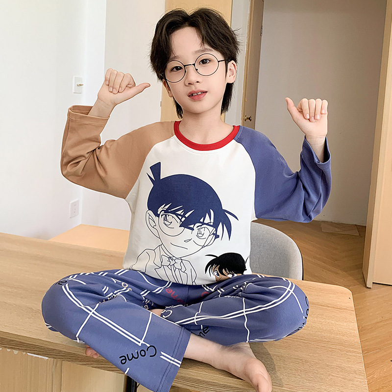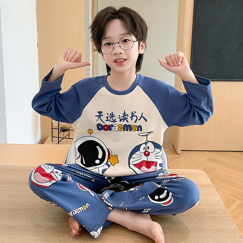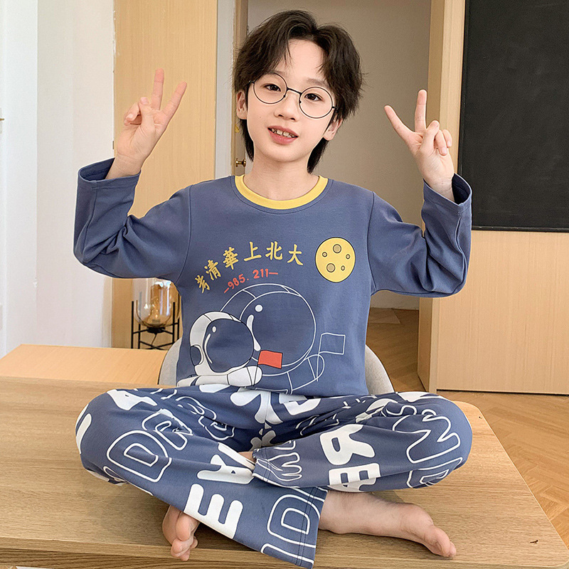 소년 잠옷 가을 2024 새로운 순수 면 긴 소매 어린이 봄과 가을 얇은 소년 중 큰 어린이 청소년 세트스토어 가기