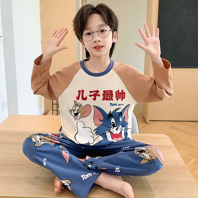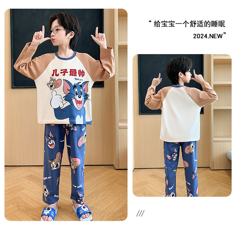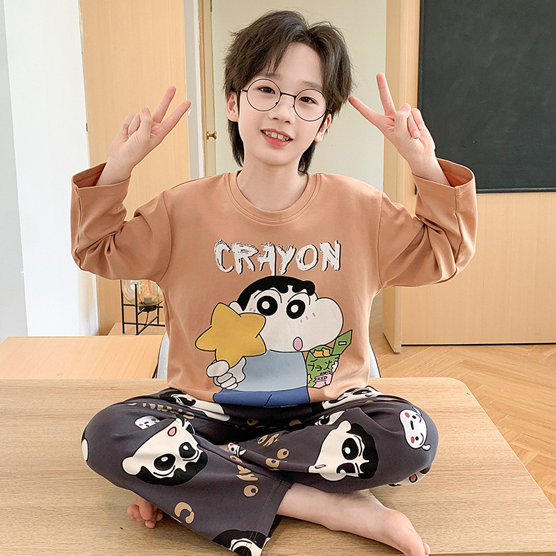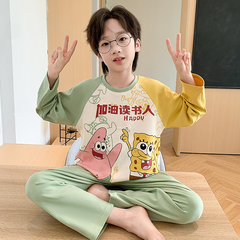 소년 잠옷 가을 2024 새로운 순수 면 긴 소매 어린이 봄과 가을 얇은 소년 중 큰 어린이 청소년 세트