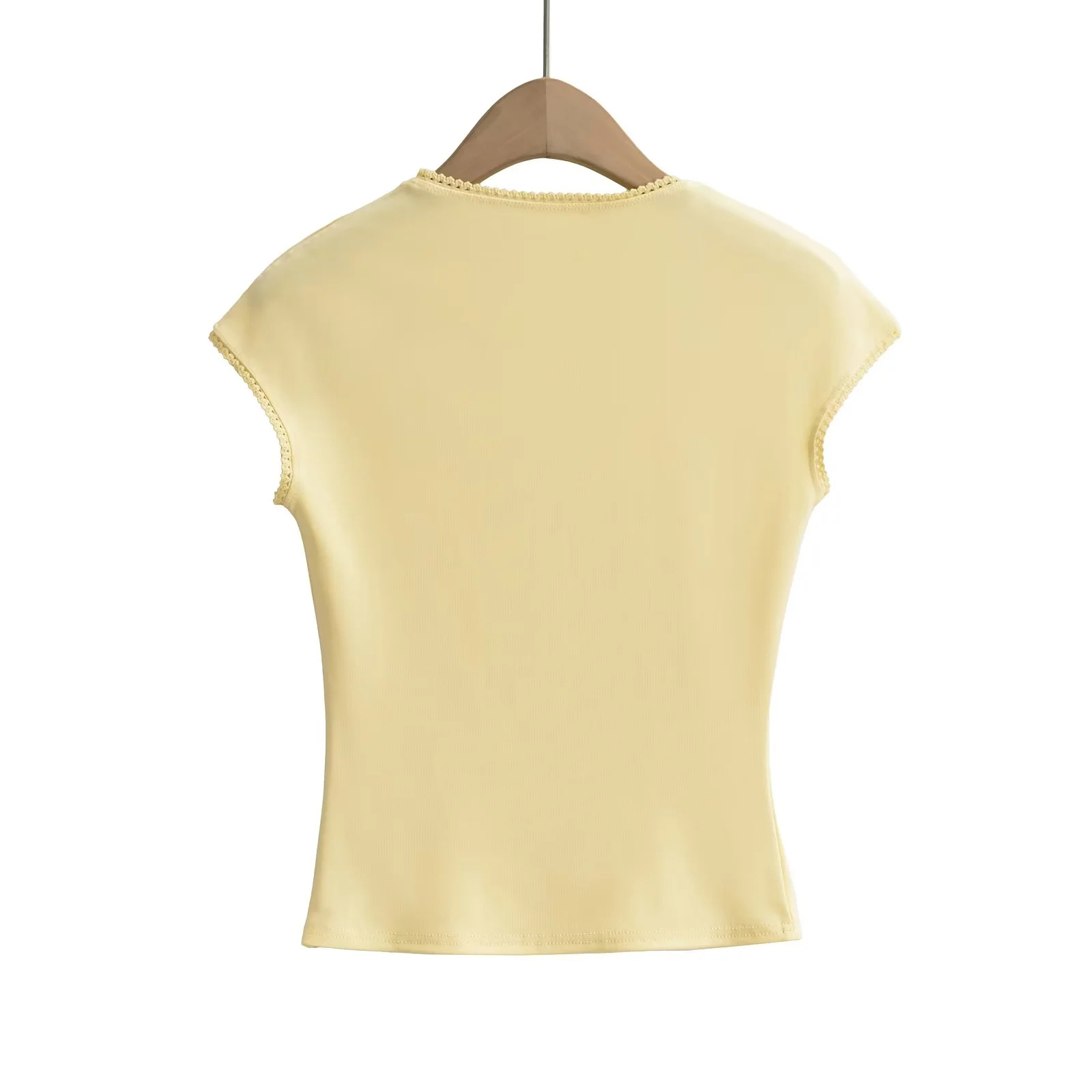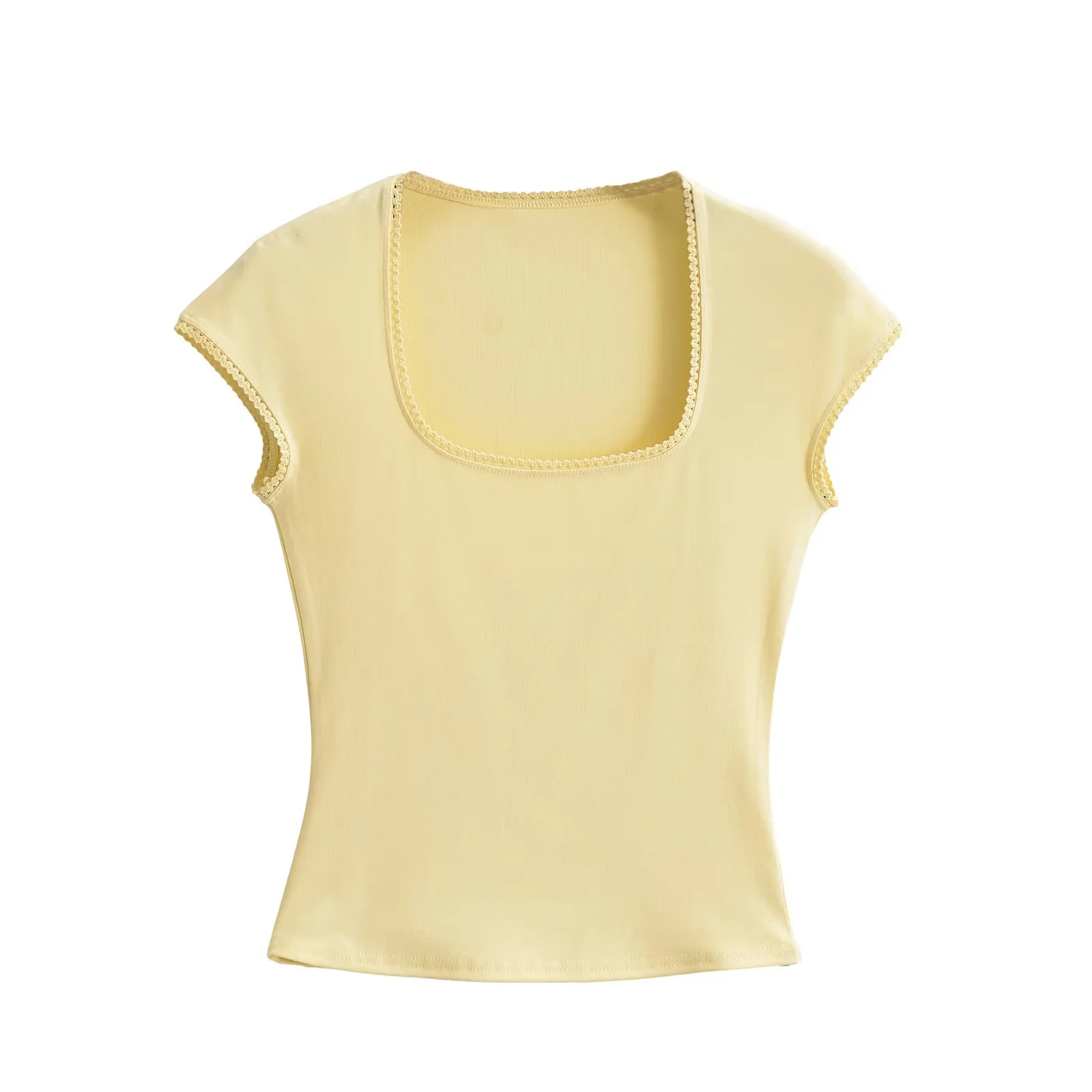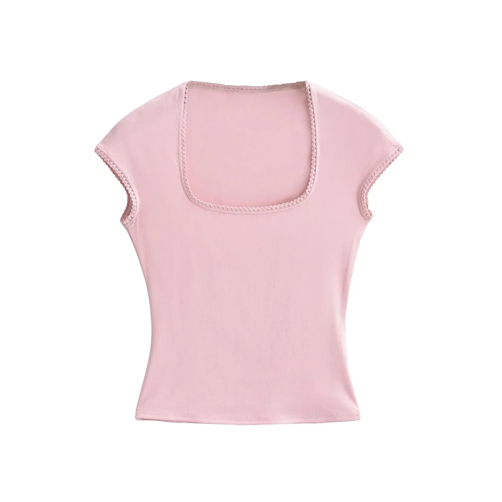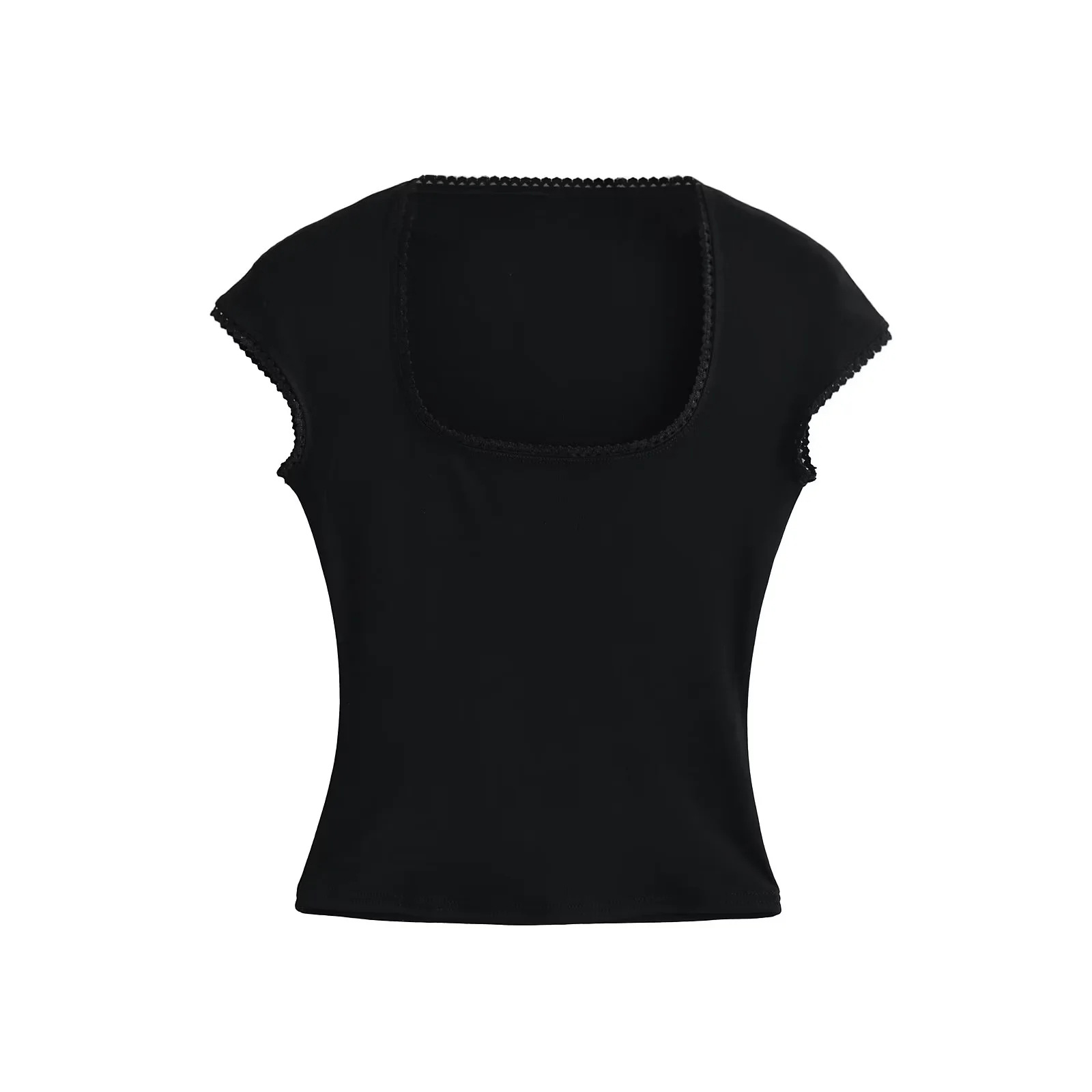 순수한 욕망 스타일 레이스 칼라 본 U 칼라 반팔 티셔츠 여성 여름 달콤한 스파이스 소녀 활 발레 스타일 타이트 탑