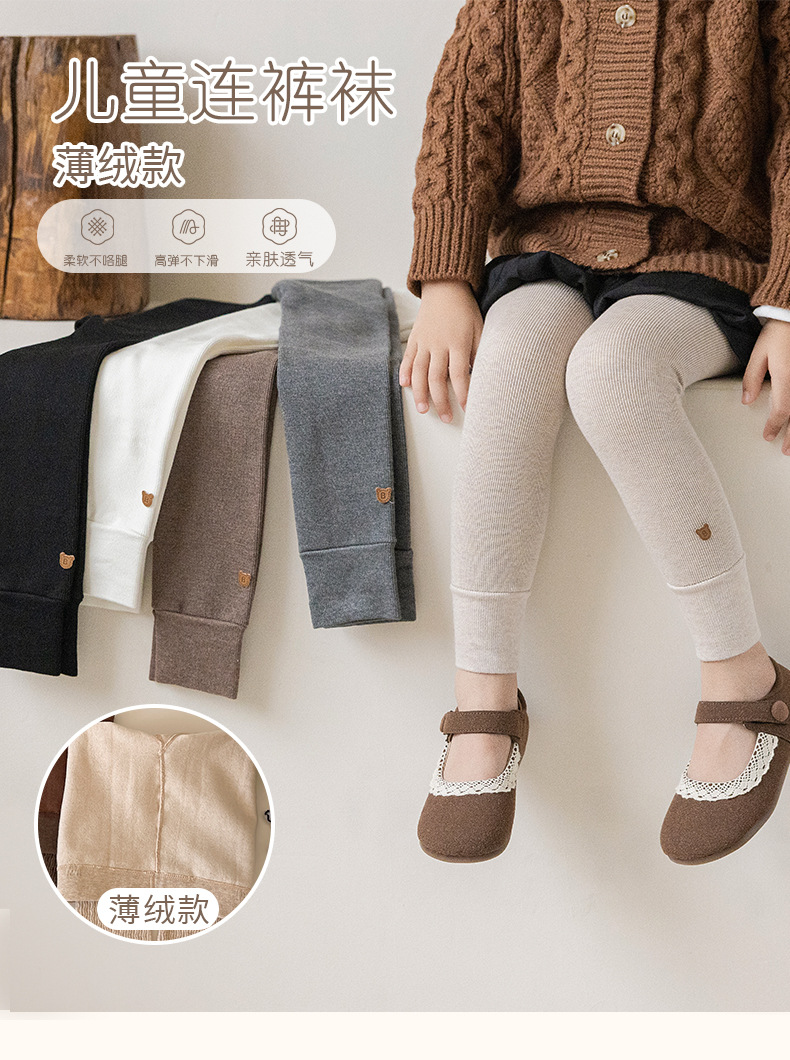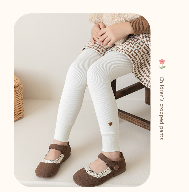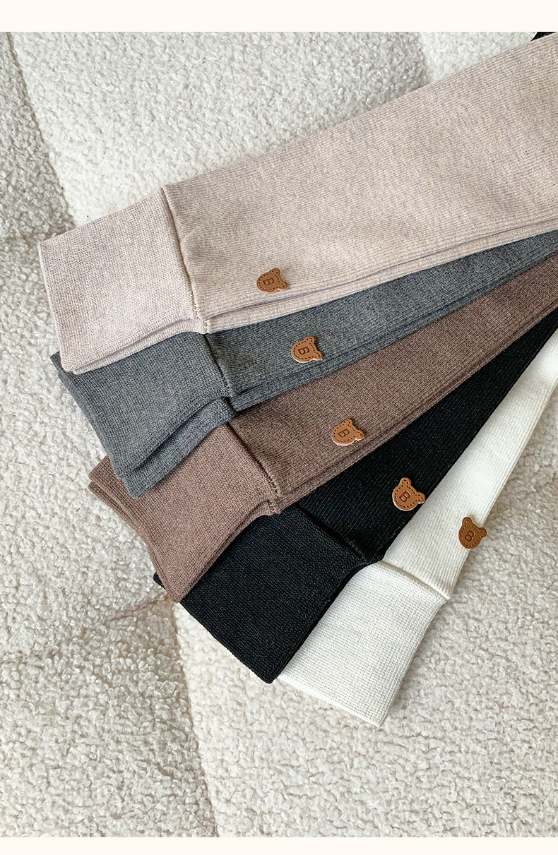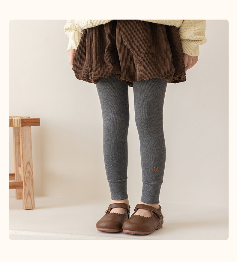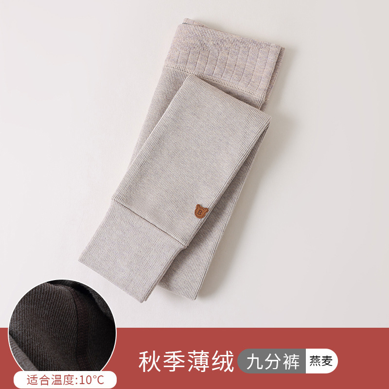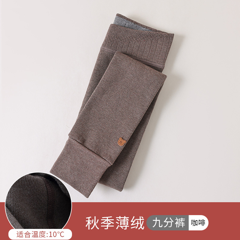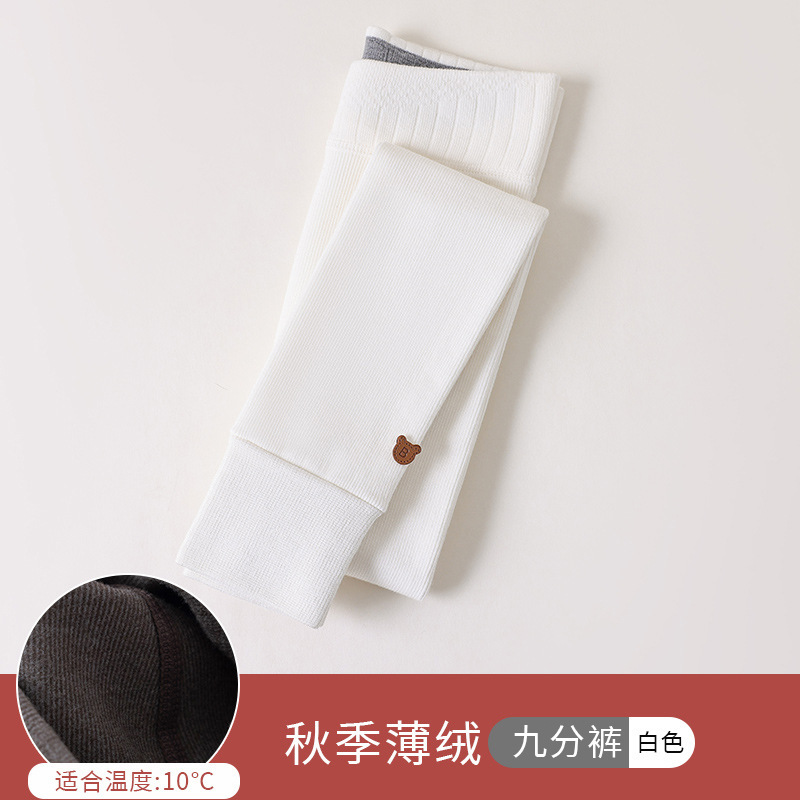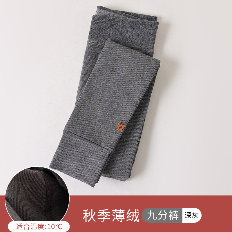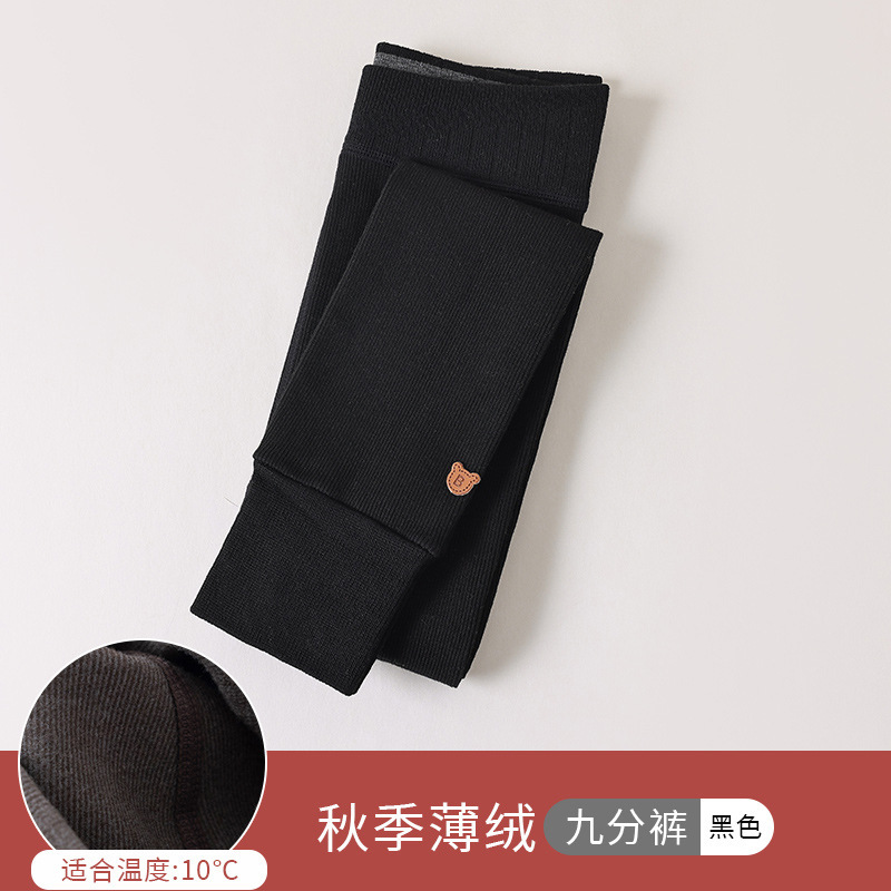竖条薄绒九分小熊打底裤
