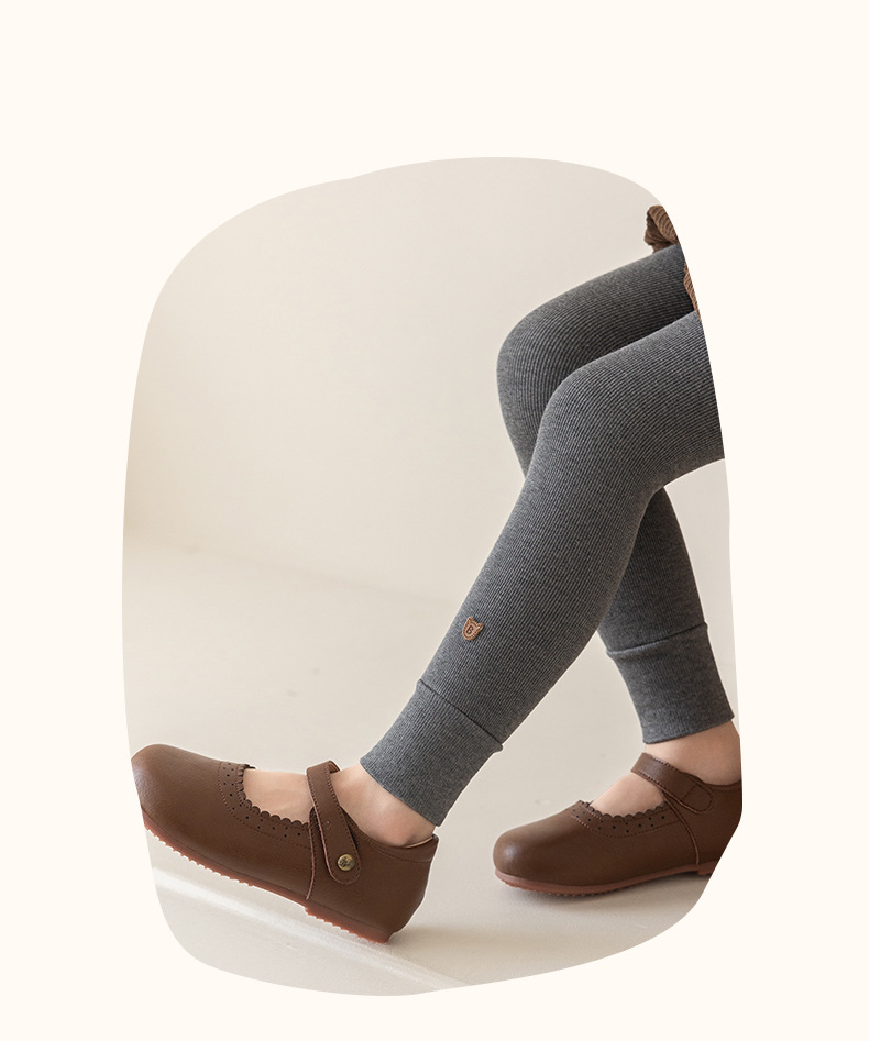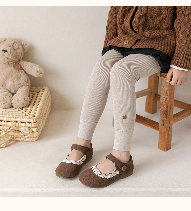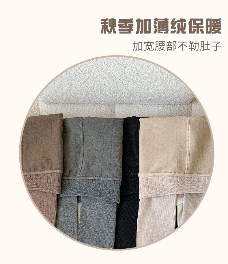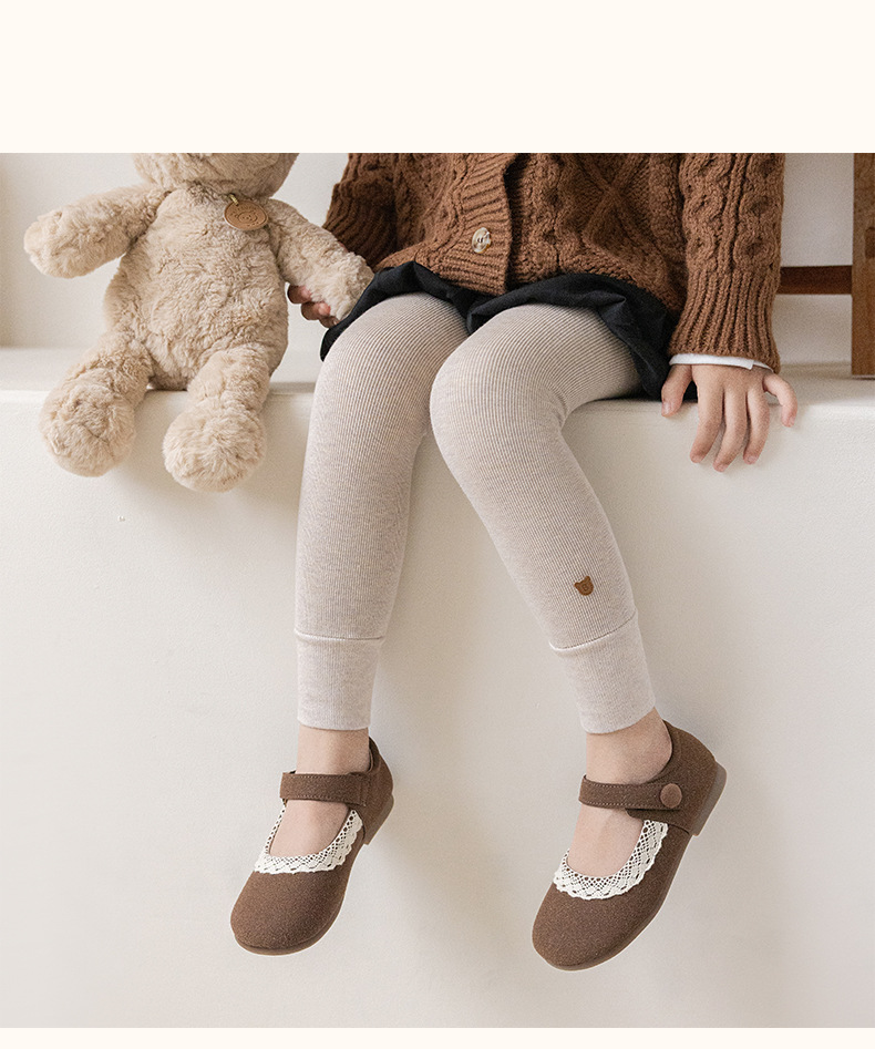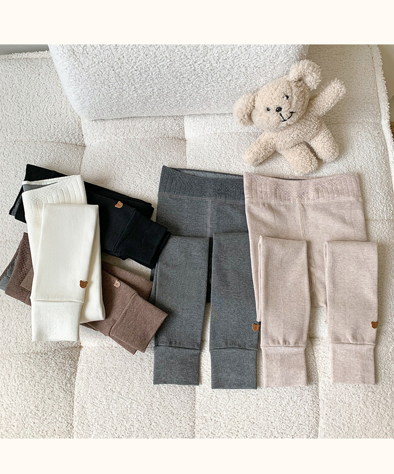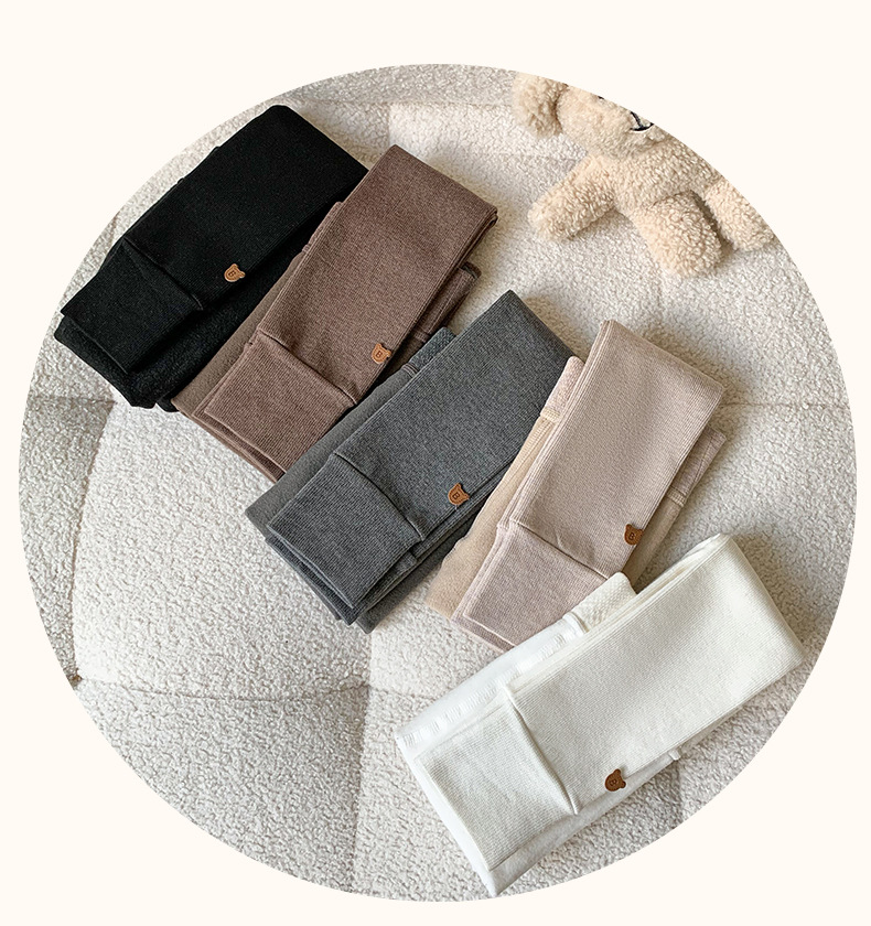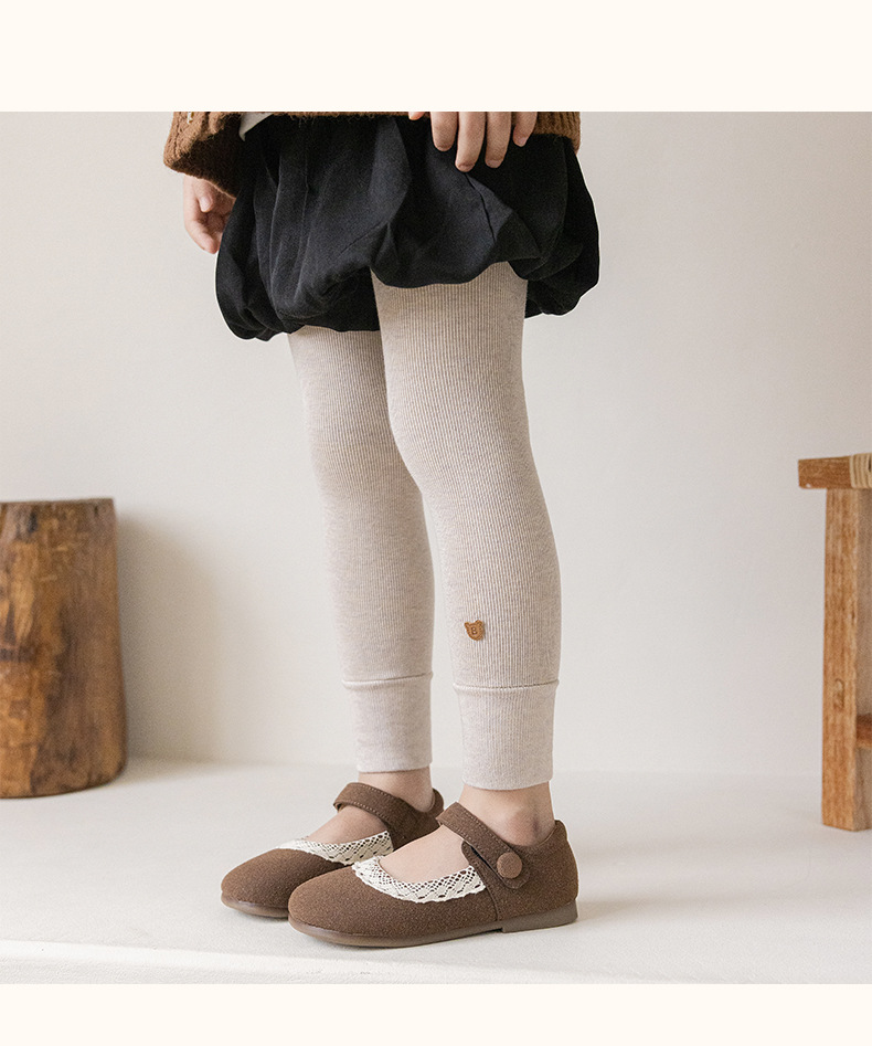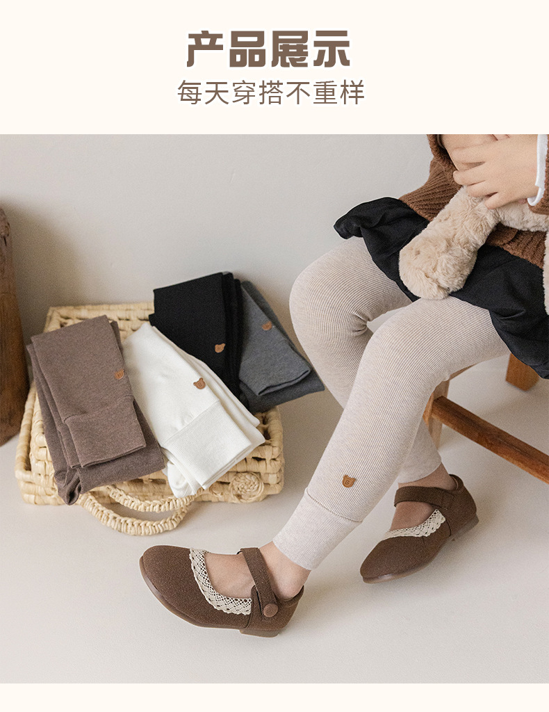 竖条薄绒九分小熊打底裤