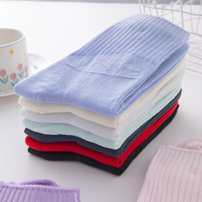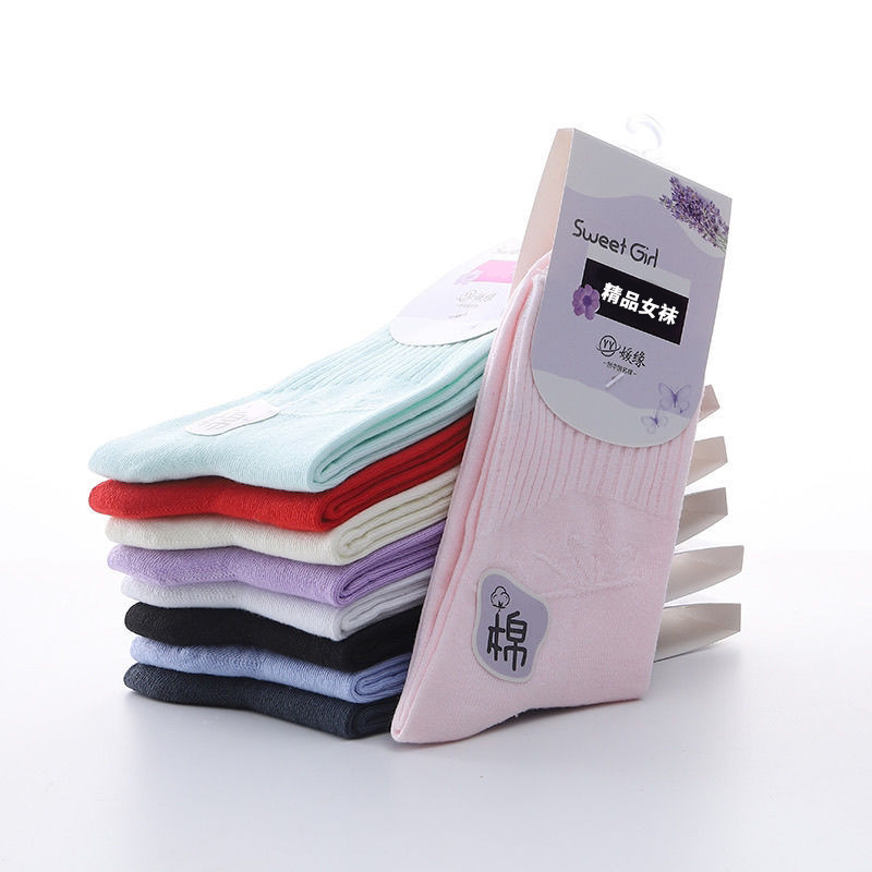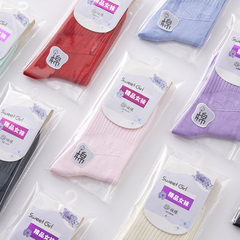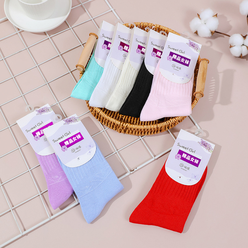 여성용 양말, 개별 포장, 가을 겨울 종아리 중간 양말, 노점 선물, 여성용 양말, 단색 여성용 면 양말