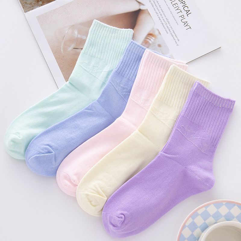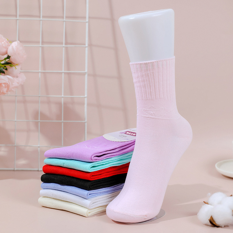 여성용 양말, 개별 포장, 가을 겨울 종아리 중간 양말, 노점 선물, 여성용 양말, 단색 여성용 면 양말스토어 가기
