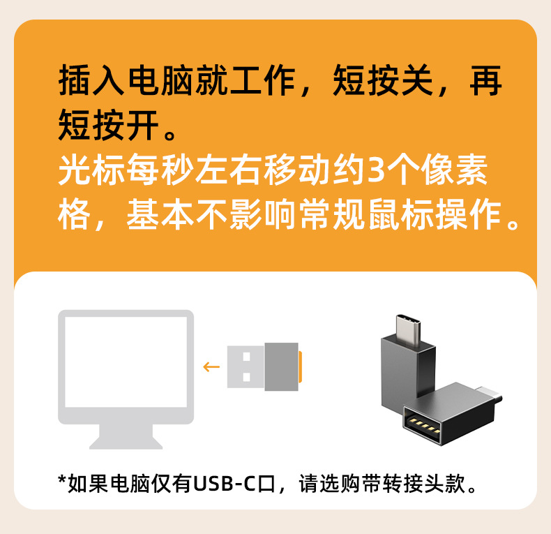 스위치 버튼 가상 마우스 지터 커서 웨이크 업 컴퓨터 안티 슬립 블랙 스크린 마우스 Jiggler스토어 가기