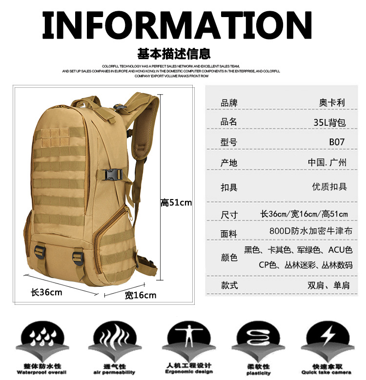 등산 가방 3p 배낭 전문 야외 스포츠 하이킹 가방 공장 직접 35L 군사 위장 전술 배낭스토어 가기