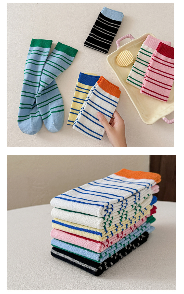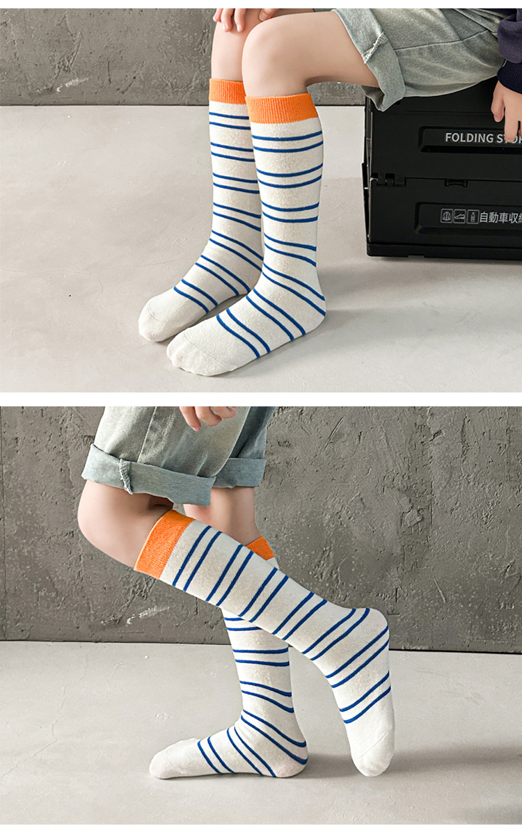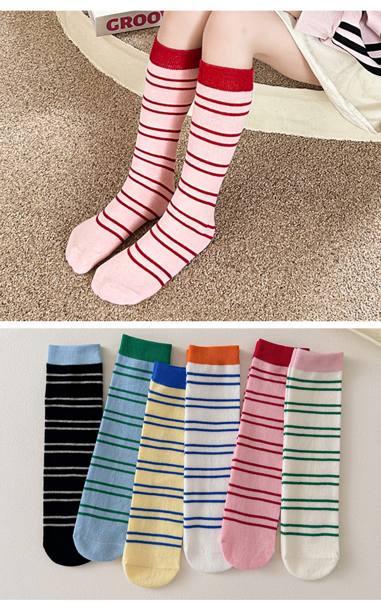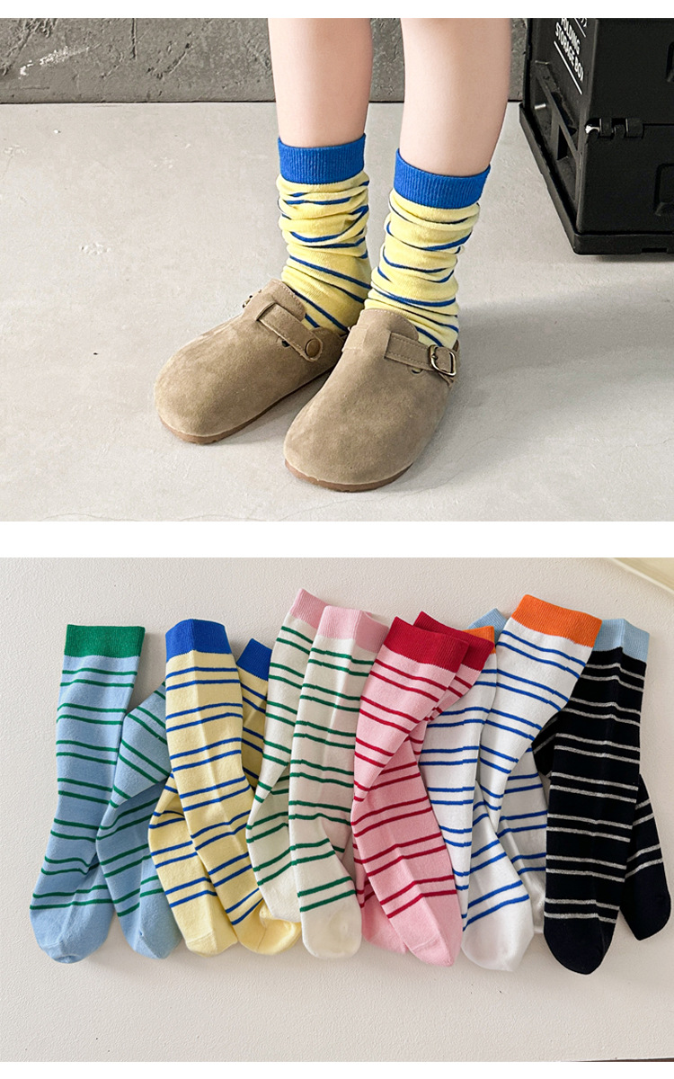 어린이 양말 가을과 겨울 도파민 줄무늬 스타킹 한국판 남학생과 여학생의 튜브 파일 양말 학생 다리 양말 조수스토어 가기