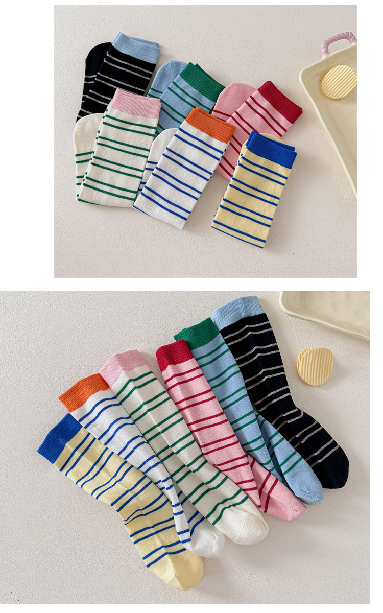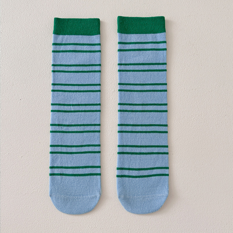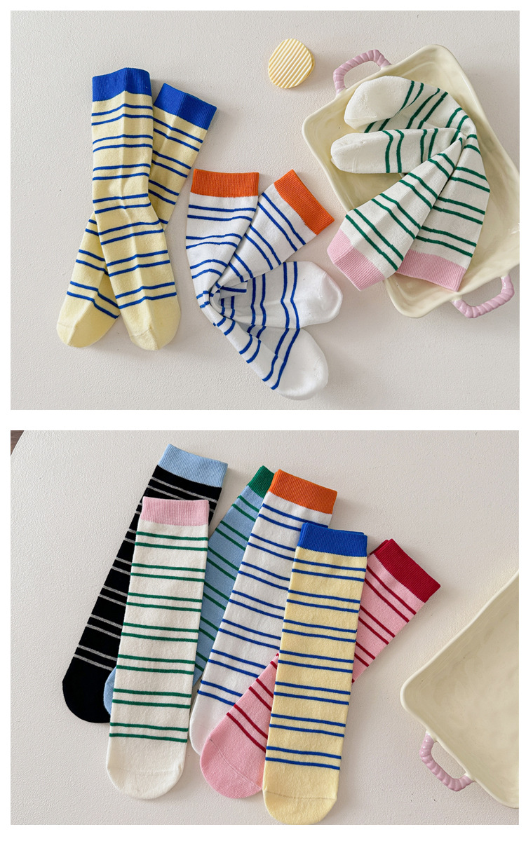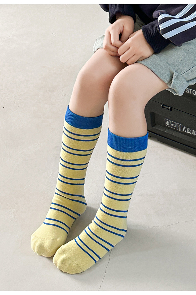 어린이 양말 가을과 겨울 도파민 줄무늬 스타킹 한국판 남학생과 여학생의 튜브 파일 양말 학생 다리 양말 조수스토어 가기