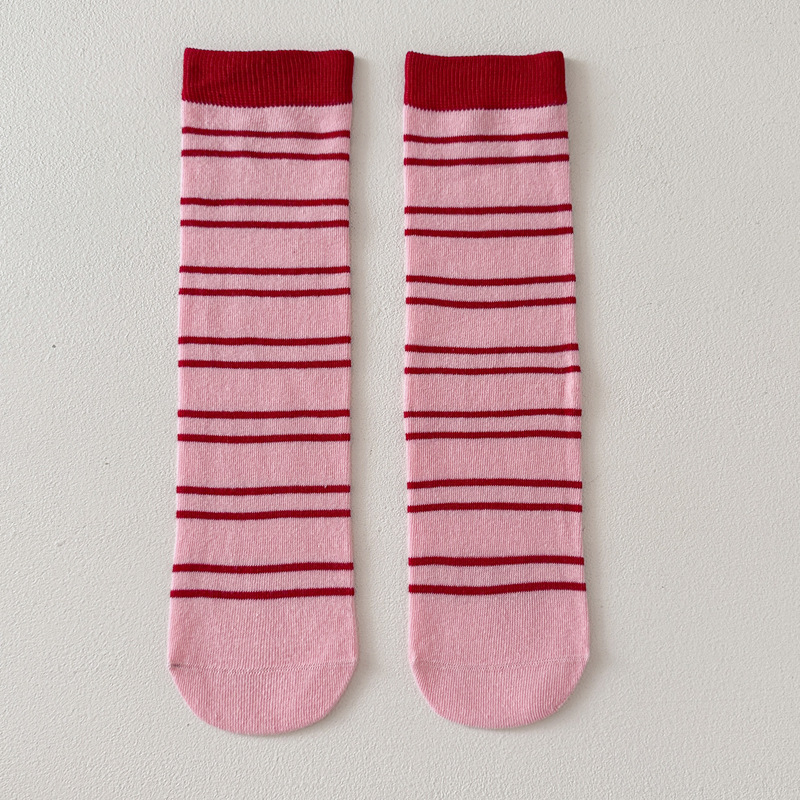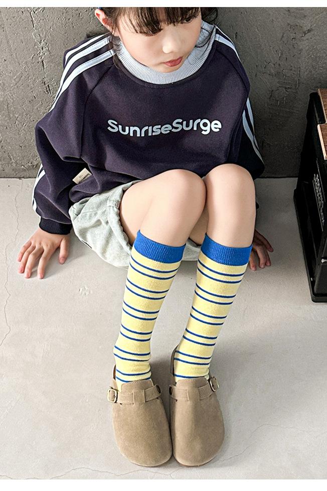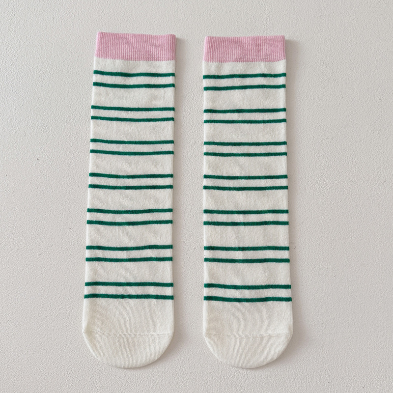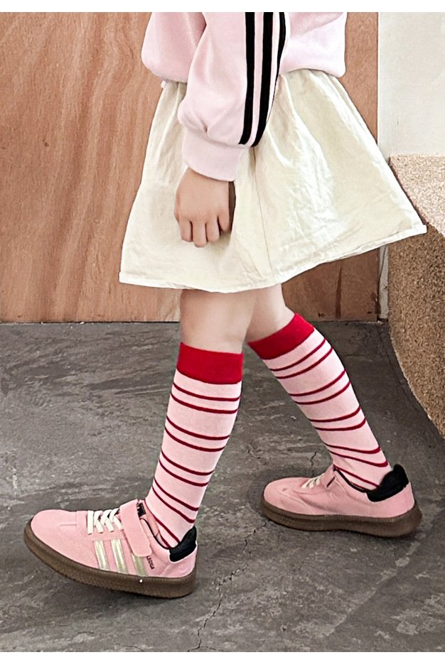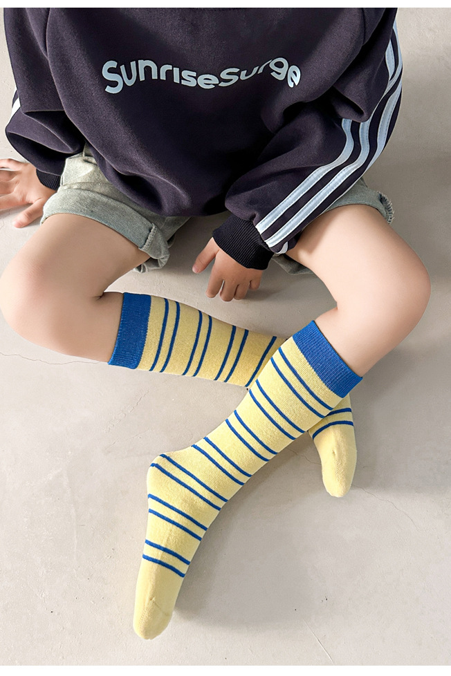어린이 양말 가을과 겨울 도파민 줄무늬 스타킹 한국판 남학생과 여학생의 튜브 파일 양말 학생 다리 양말 조수