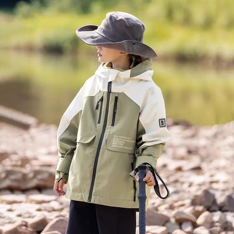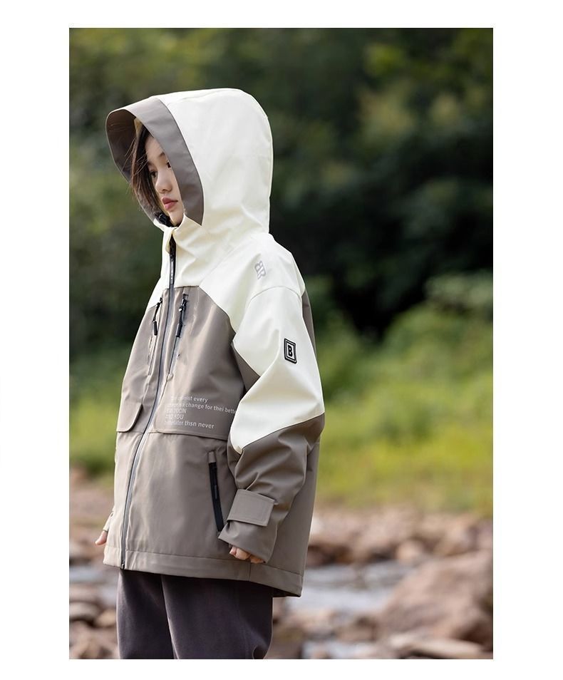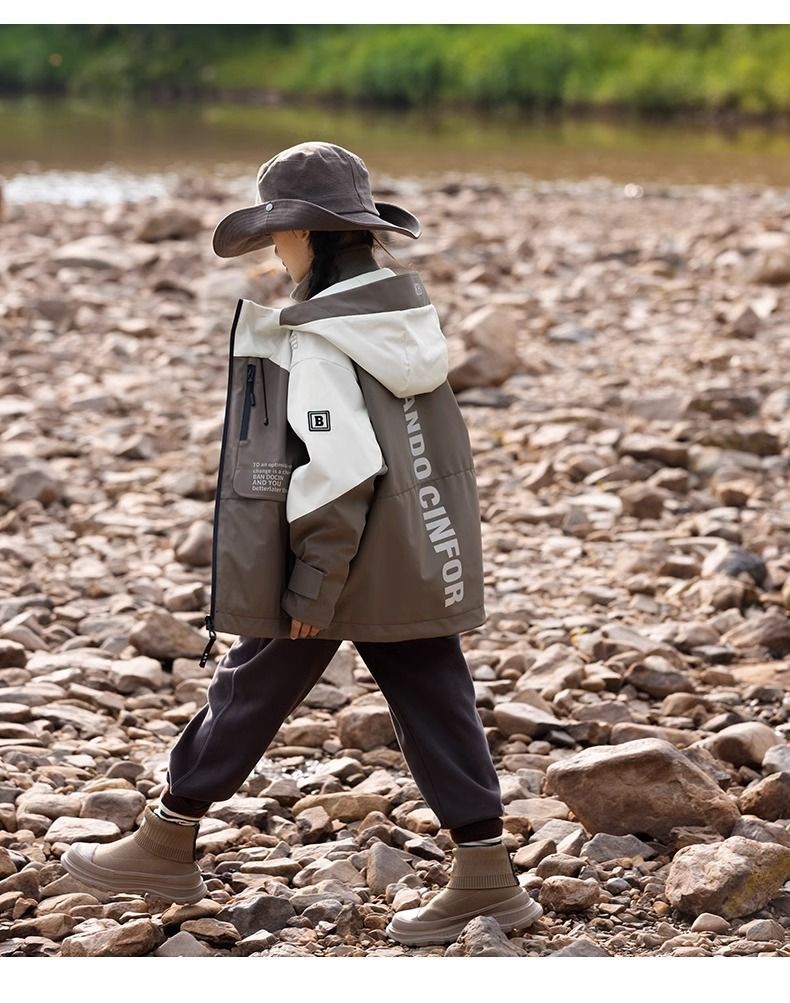 가을과 겨울 한국 스타일 소년 자켓 2024 새로운 지퍼 후드 자켓 빅 보이 자켓 유행 재킷