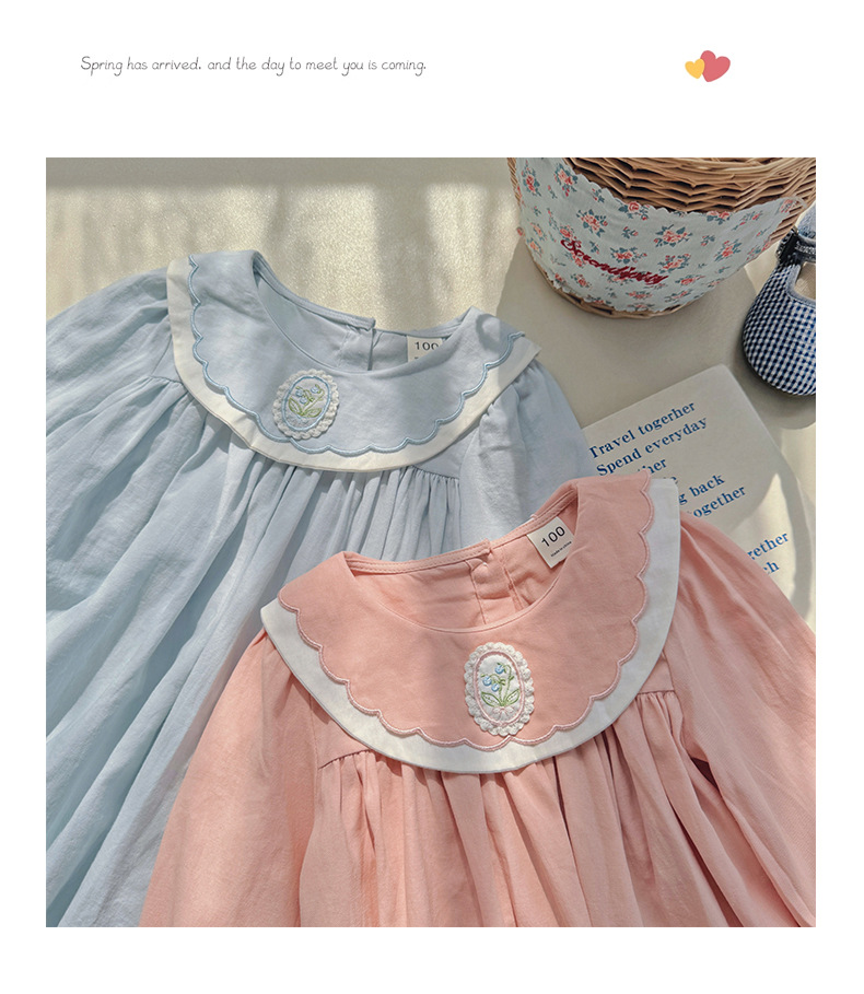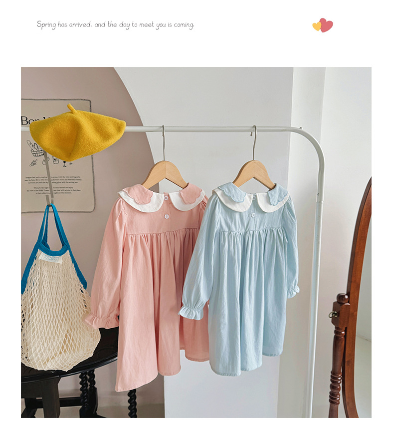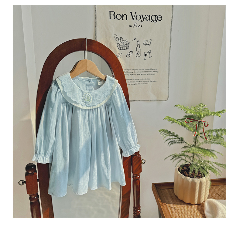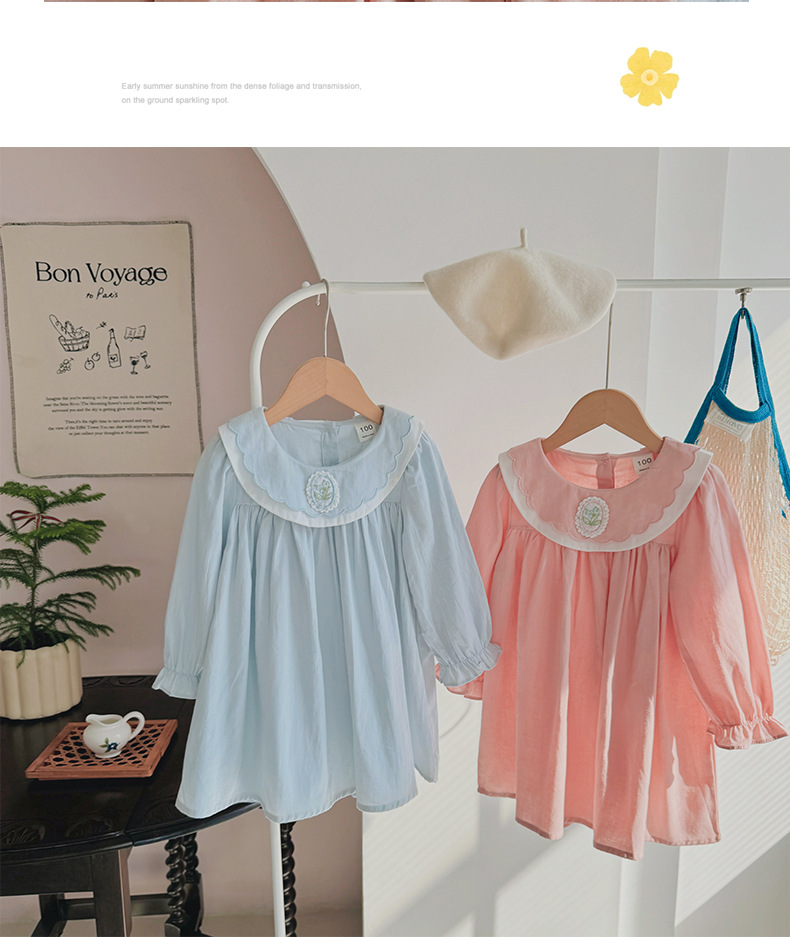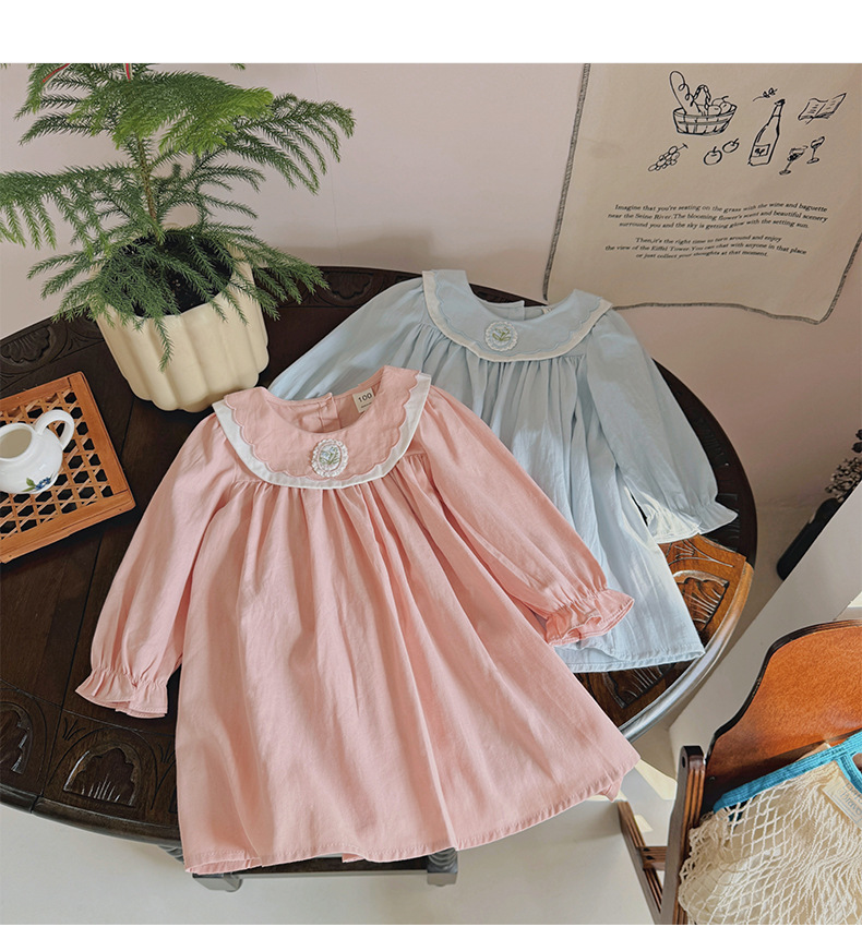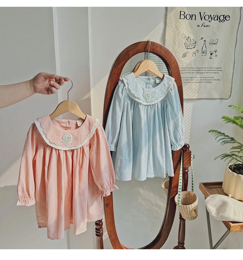 한국 아동복 더블 칼라 자수 소녀 원피스 2024 가을 달콤한 어린이 공주 원피스스토어 가기