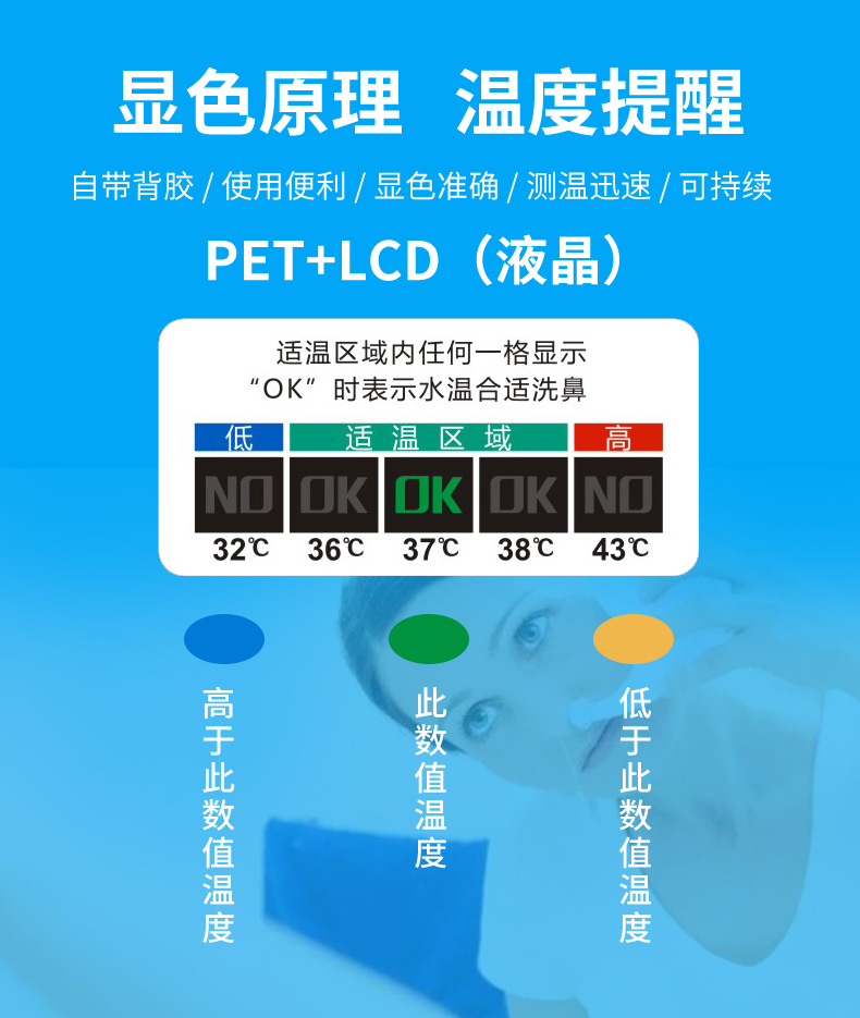 수온 페이스트 생리 식염수 비강 세척 온도 페이스트 온도계는 비강 세척 소금 액정 페이스트의 온도를 측정합니다.