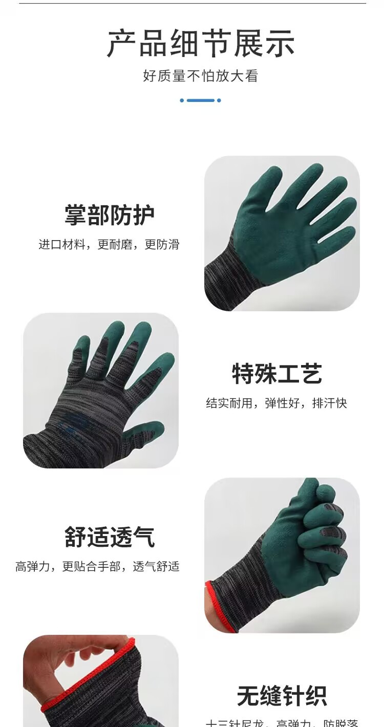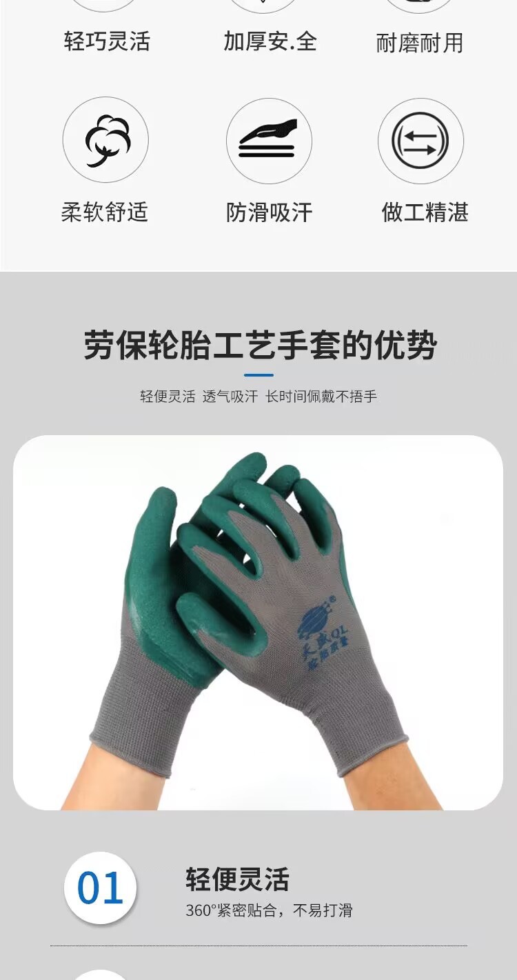 Tiansheng 강한 타이어 고무 노동 장갑 미끄럼 방지 내마모성 통기성 편안한 기계 제조 공장 노동 장갑스토어 가기