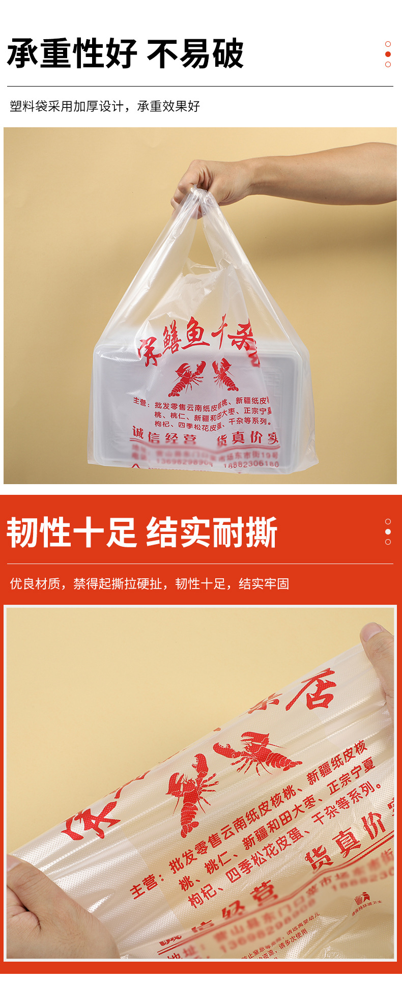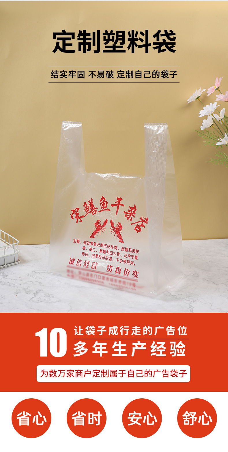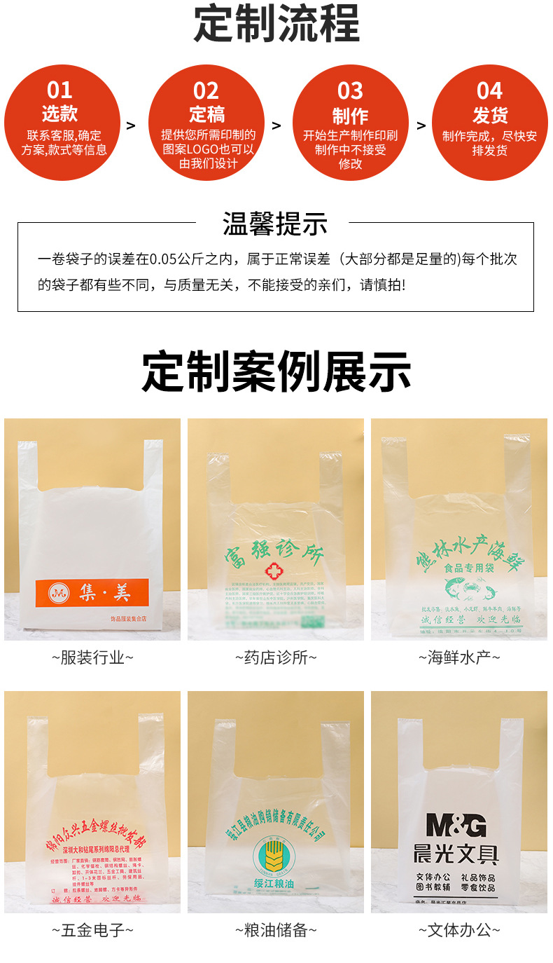 매장 맞춤형 플라스틱 핸드백, 슈퍼마켓 포장 조끼 가방, 명확한 인쇄, 무료 디자인, 다양한 스타일 및 사양