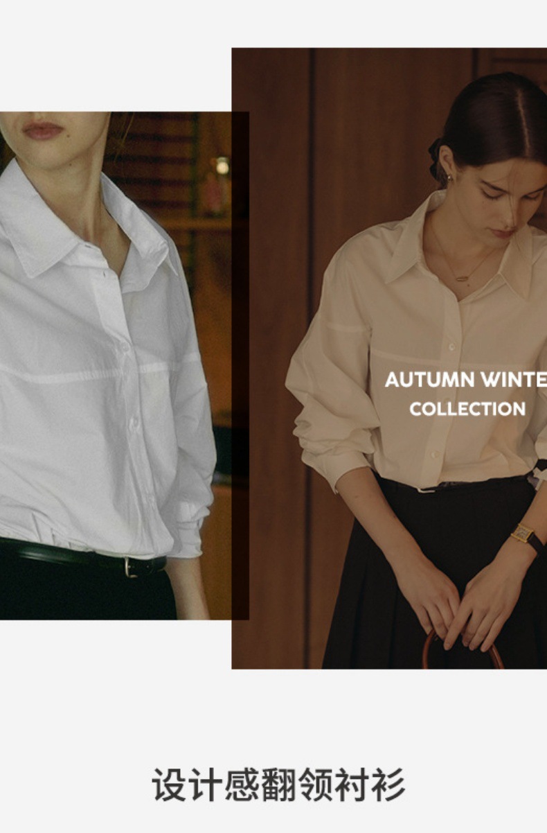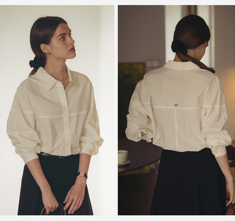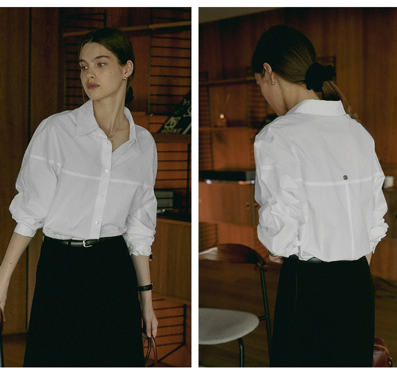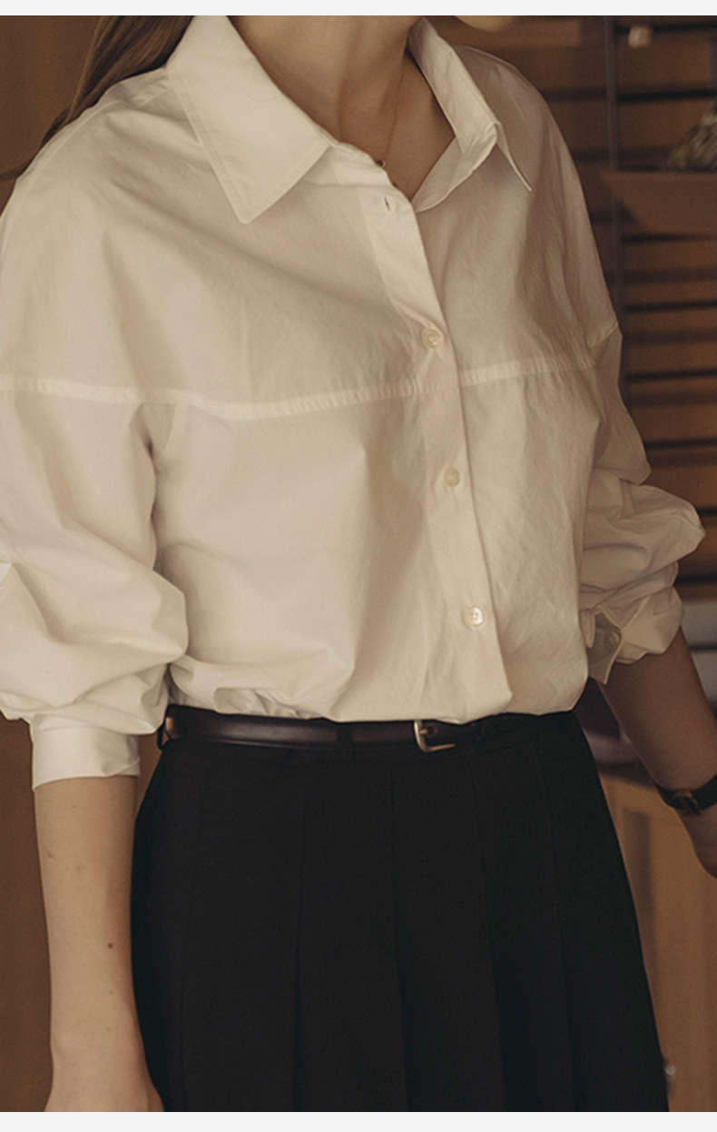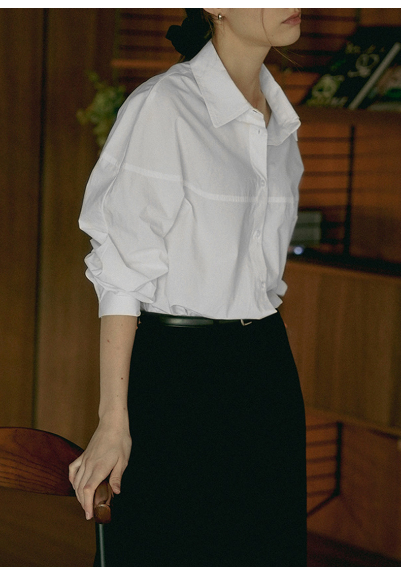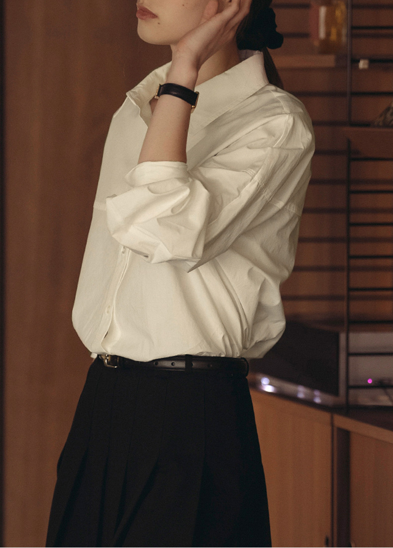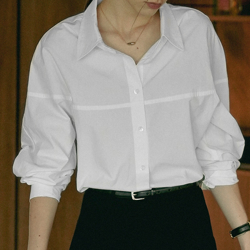 【재고정리】순면 긴팔 셔츠, 출퇴근용, 순면 여성복, 디자인감 있는 라인 컷팅, 라펠 셔츠 여성용스토어 가기