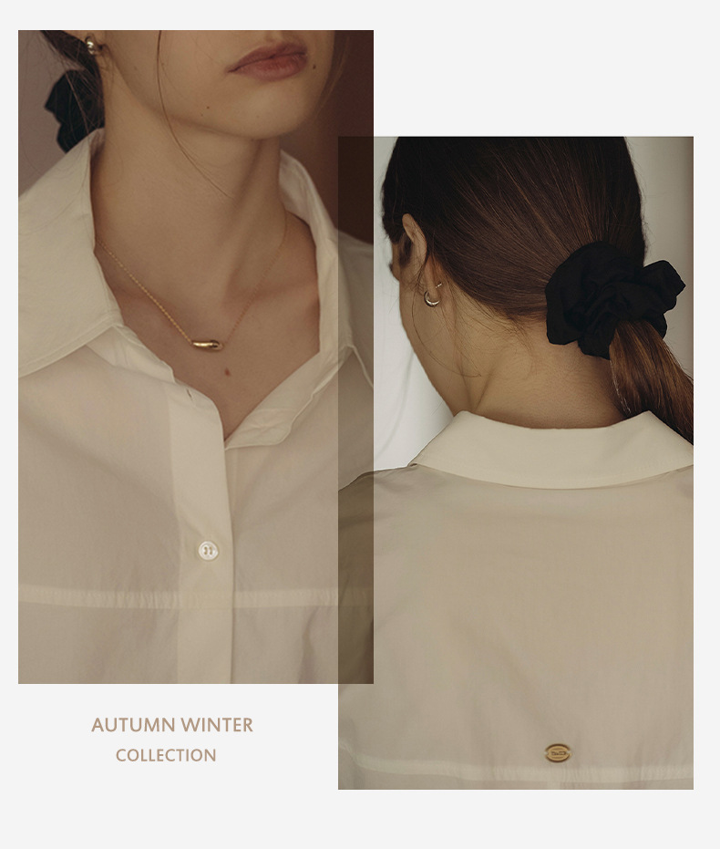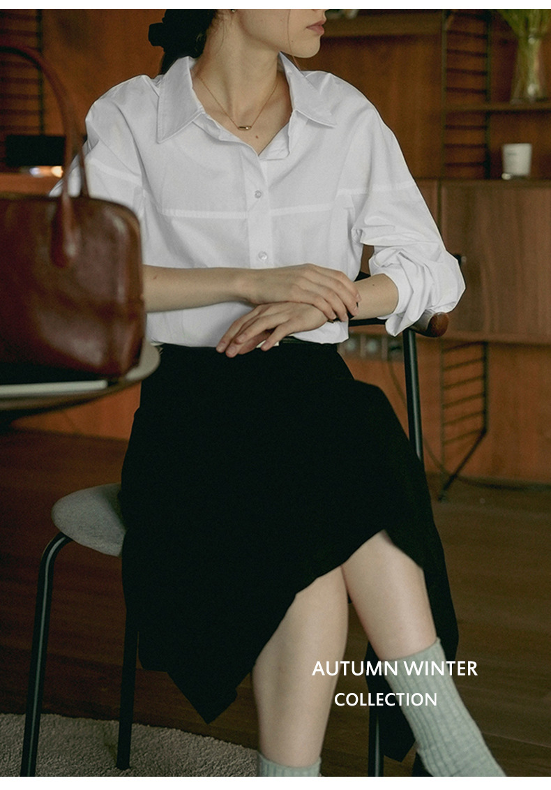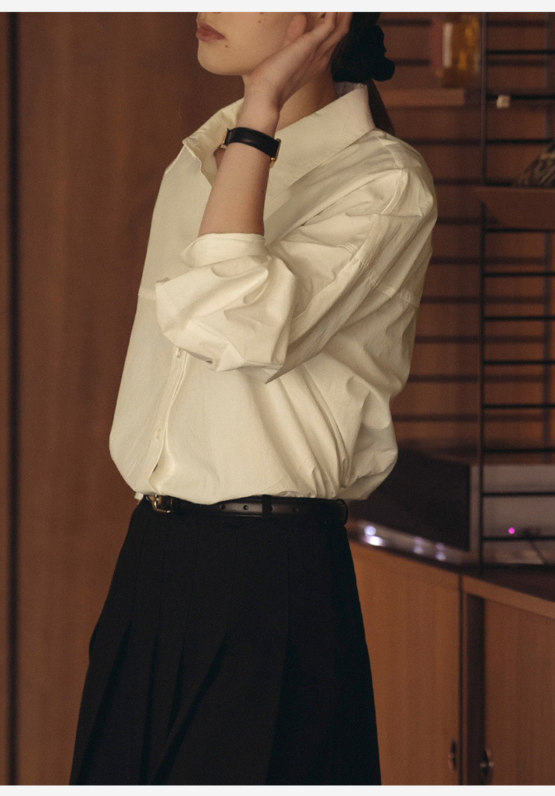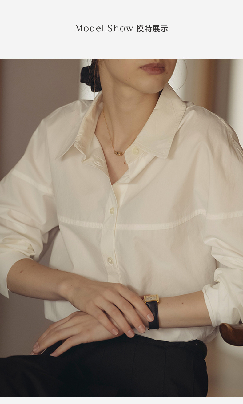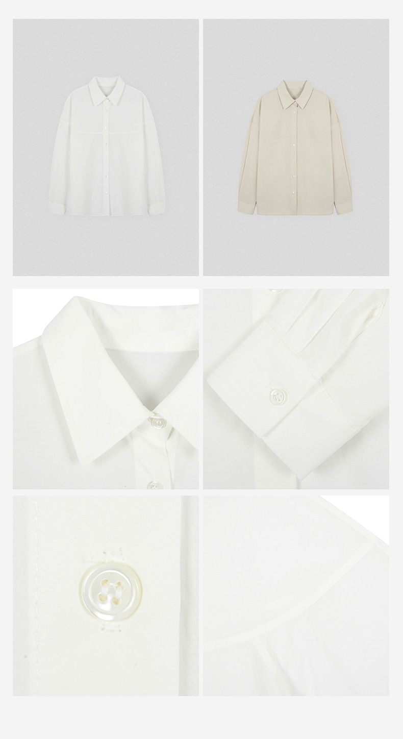 【재고정리】순면 긴팔 셔츠, 출퇴근용, 순면 여성복, 디자인감 있는 라인 컷팅, 라펠 셔츠 여성용스토어 가기