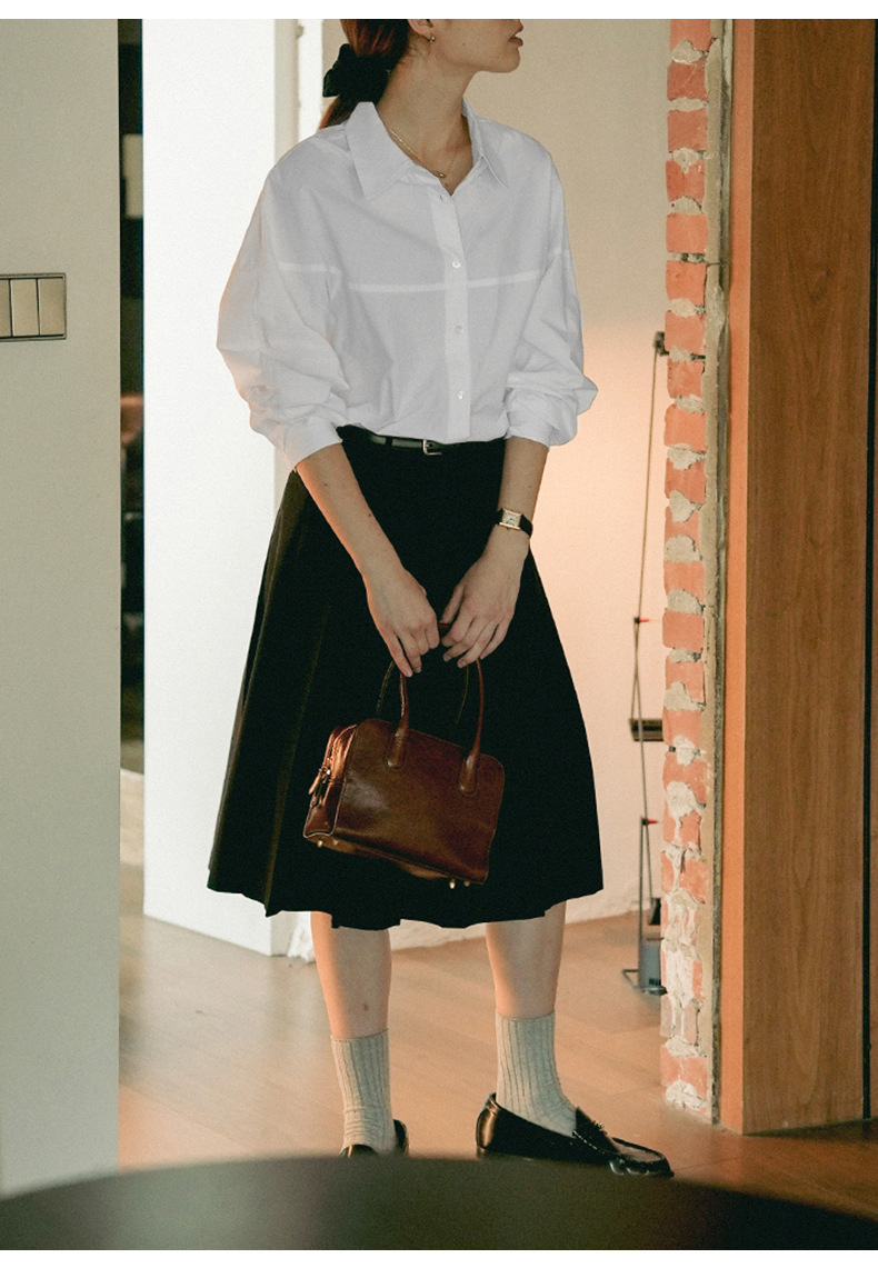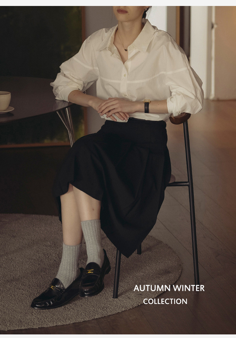 【재고정리】순면 긴팔 셔츠, 출퇴근용, 순면 여성복, 디자인감 있는 라인 컷팅, 라펠 셔츠 여성용