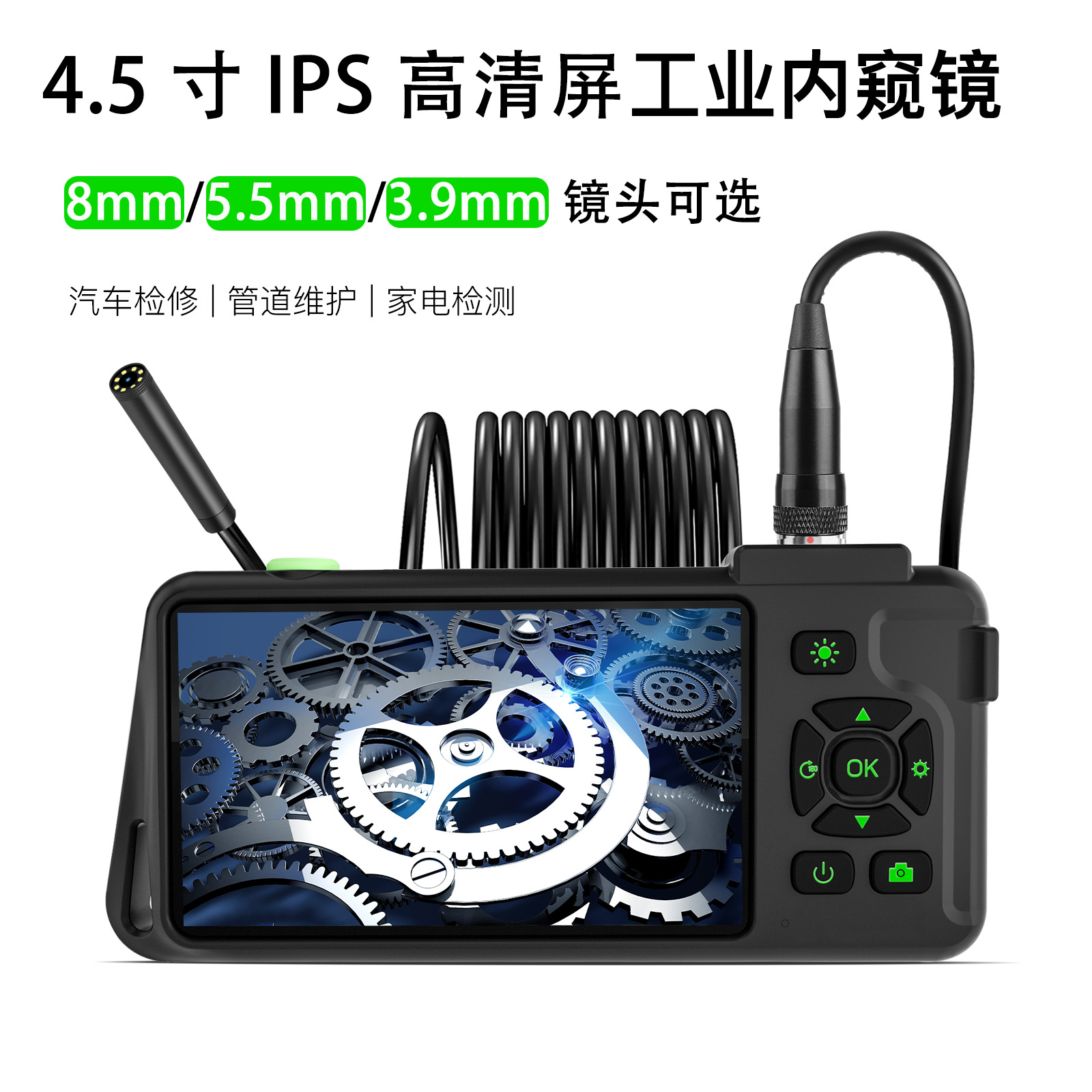 4.5 인치 IPS 화면 HD 8mm 내시경 자동차 파이프 라인 휴대용 산업 내시경을 위한 새로운 국경 특별