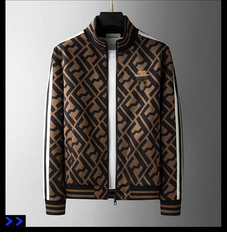 유럽 역 남자 2024 가을 새 알파벳 자카드 스탠드 칼라 카디건 스웨터 남성용 트렌디 브랜드 캐주얼 자켓스토어 가기