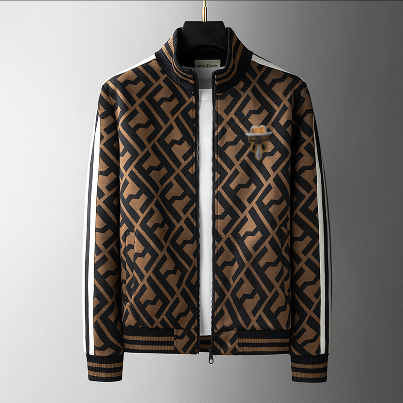 유럽 역 남자 2024 가을 새 알파벳 자카드 스탠드 칼라 카디건 스웨터 남성용 트렌디 브랜드 캐주얼 자켓