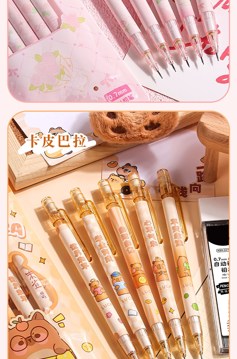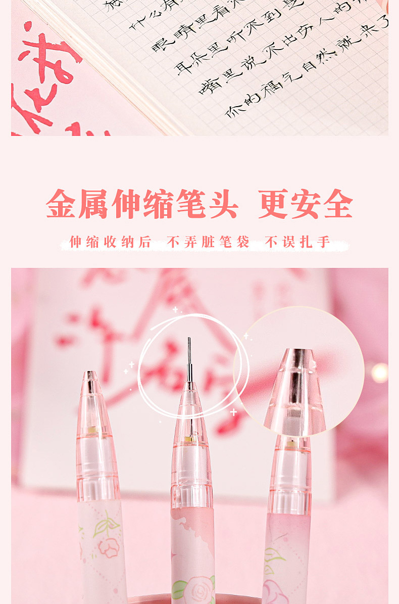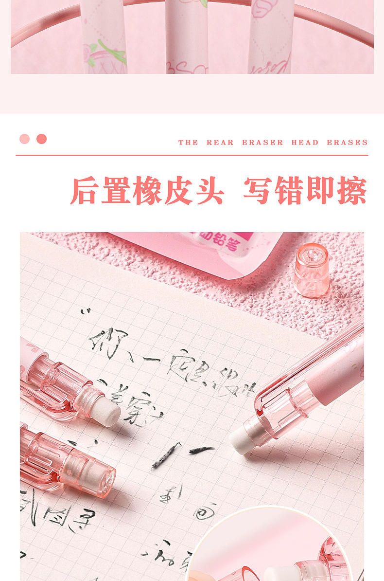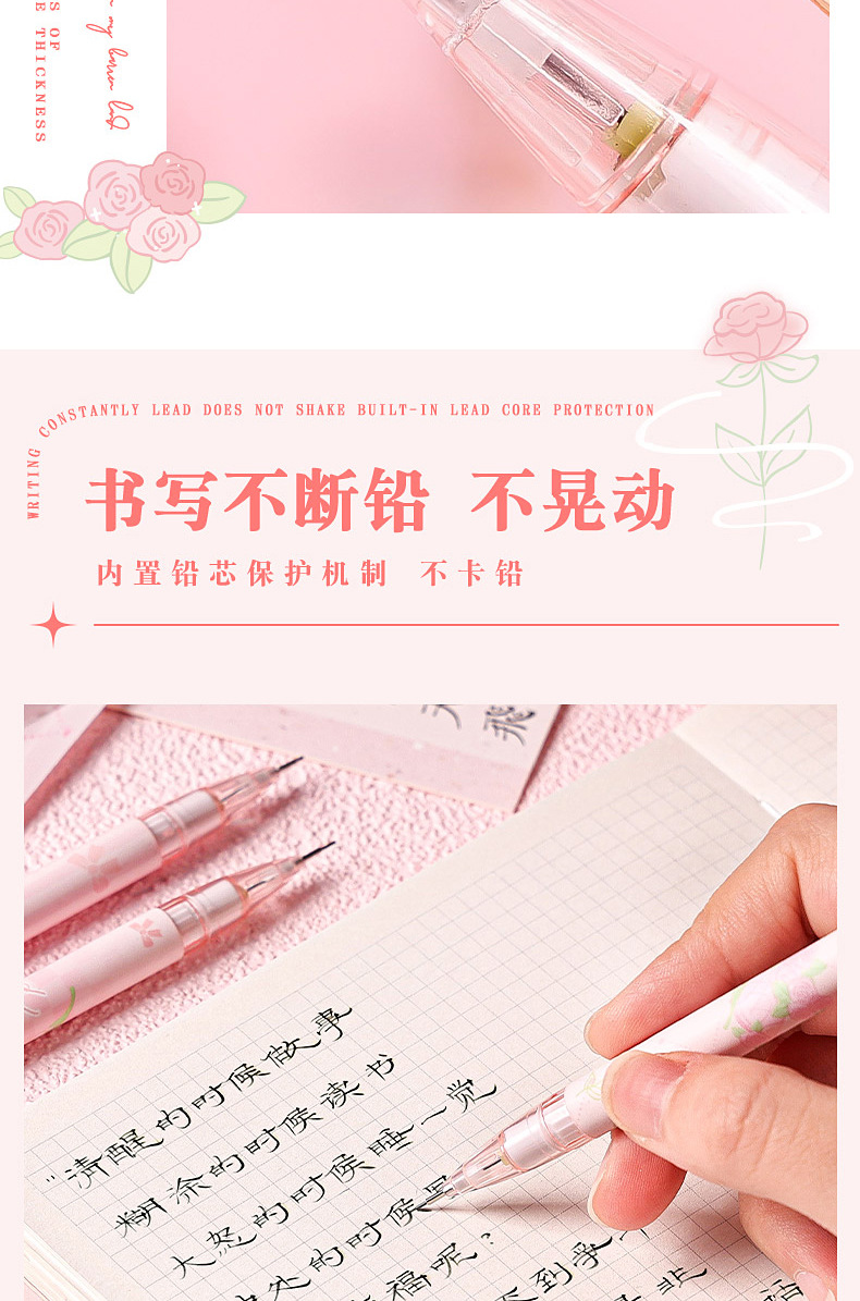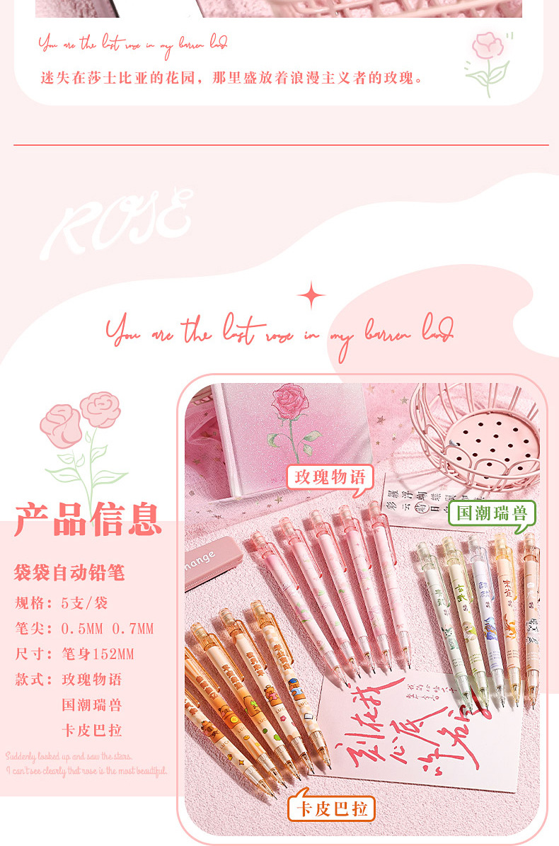 로즈 스토리 가방 초등 학생을위한 0.5 자동 연필 연속 핵심 활동 연필 귀여운 소녀 자동 펜