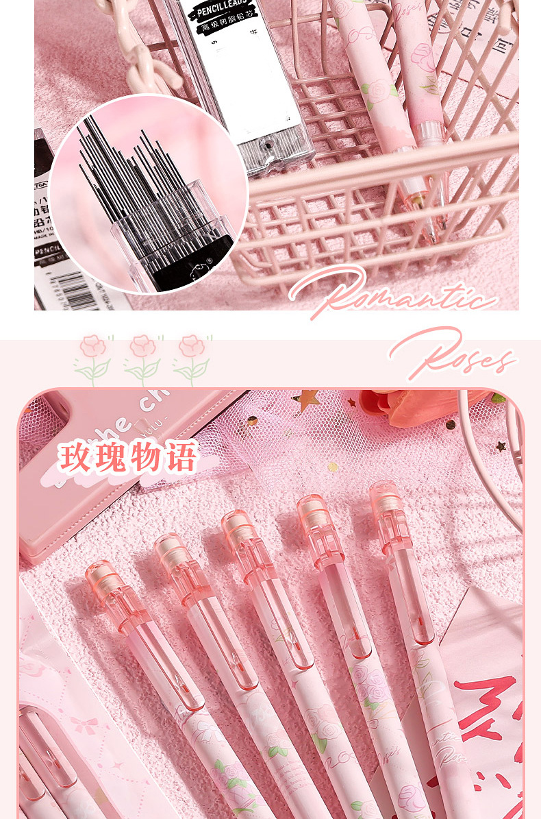 로즈 스토리 가방 초등 학생을위한 0.5 자동 연필 연속 핵심 활동 연필 귀여운 소녀 자동 펜스토어 가기