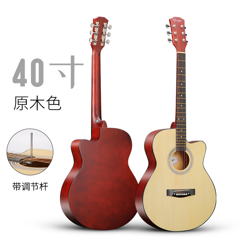 초보자 40 인치 어쿠스틱 기타 로그 컬러 풀 바스우드 포크 기타 초보자 민속 기타 남성과 여성 학생스토어 가기